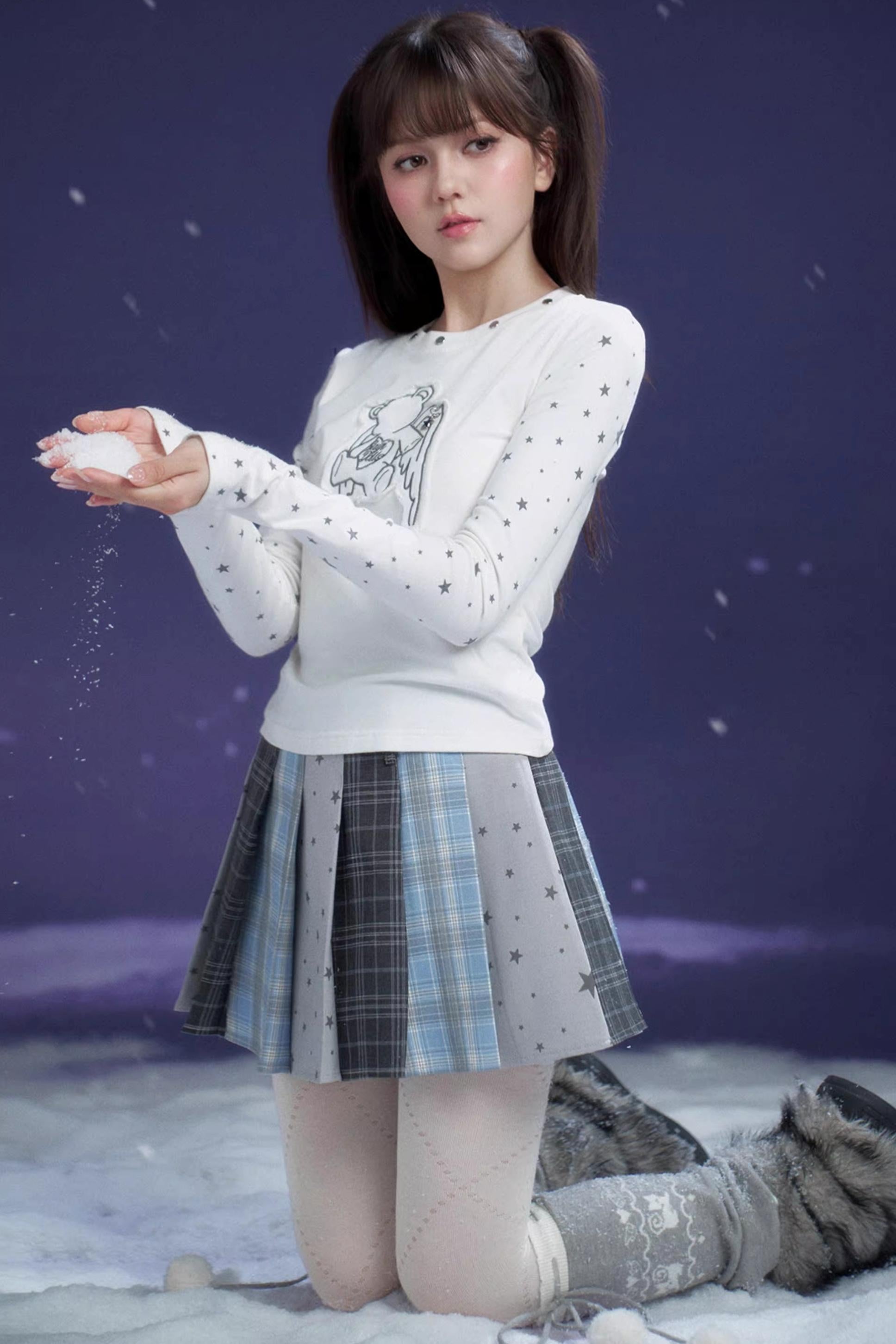 Blue-Gray Pleated Skirt