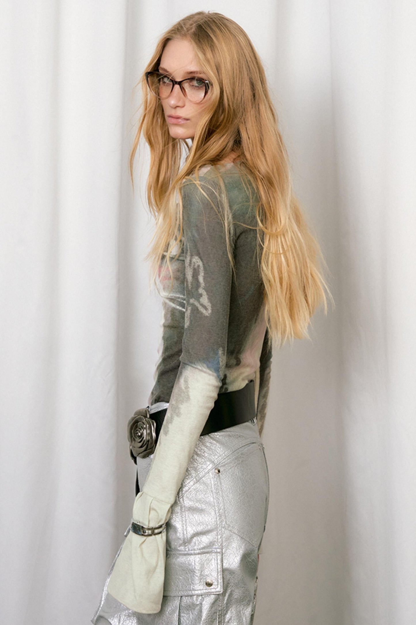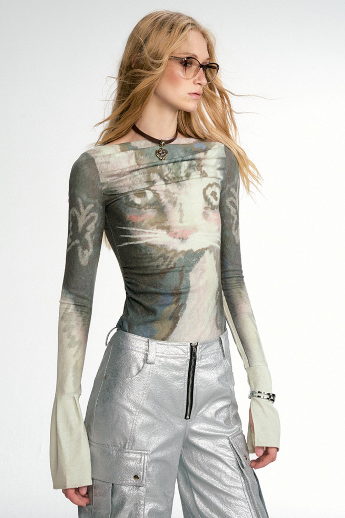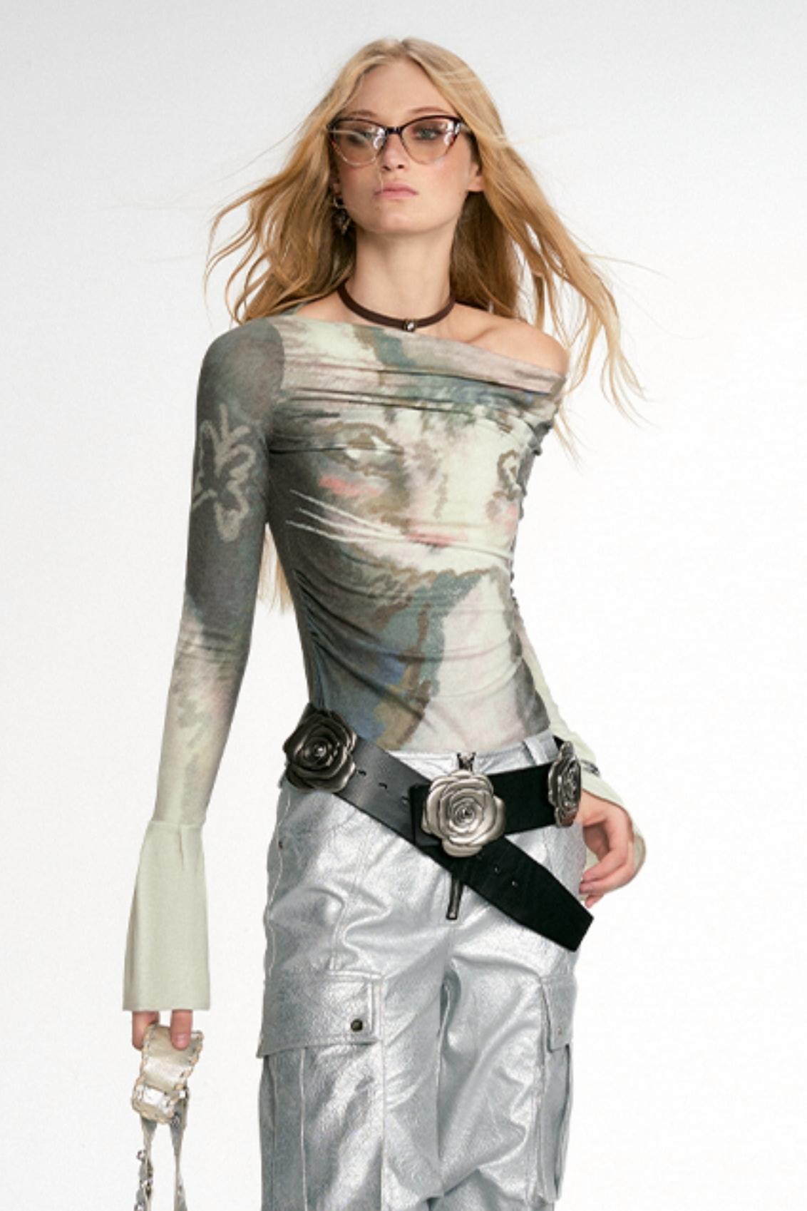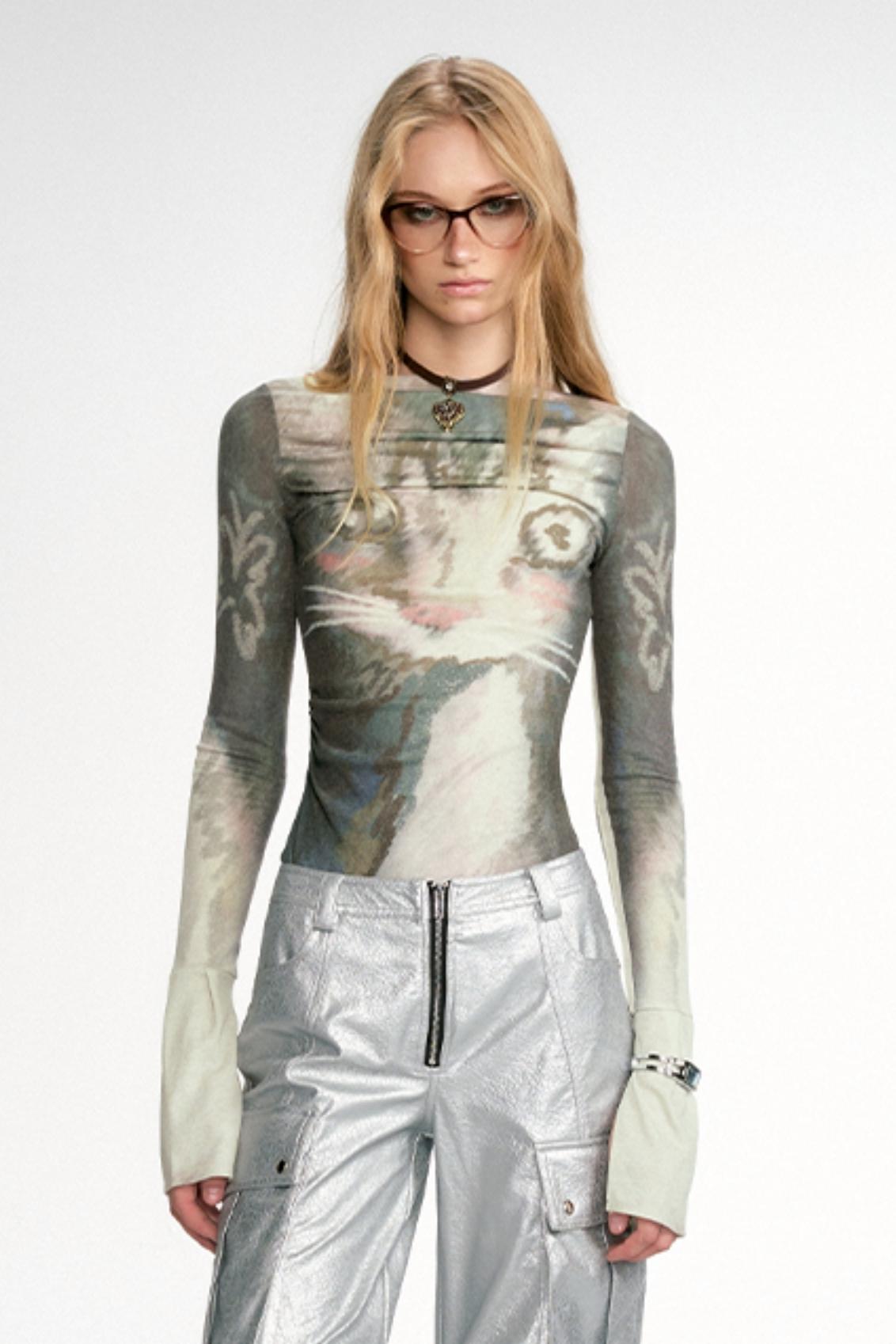 Boat Neck Graffiti Pattern Slim Top