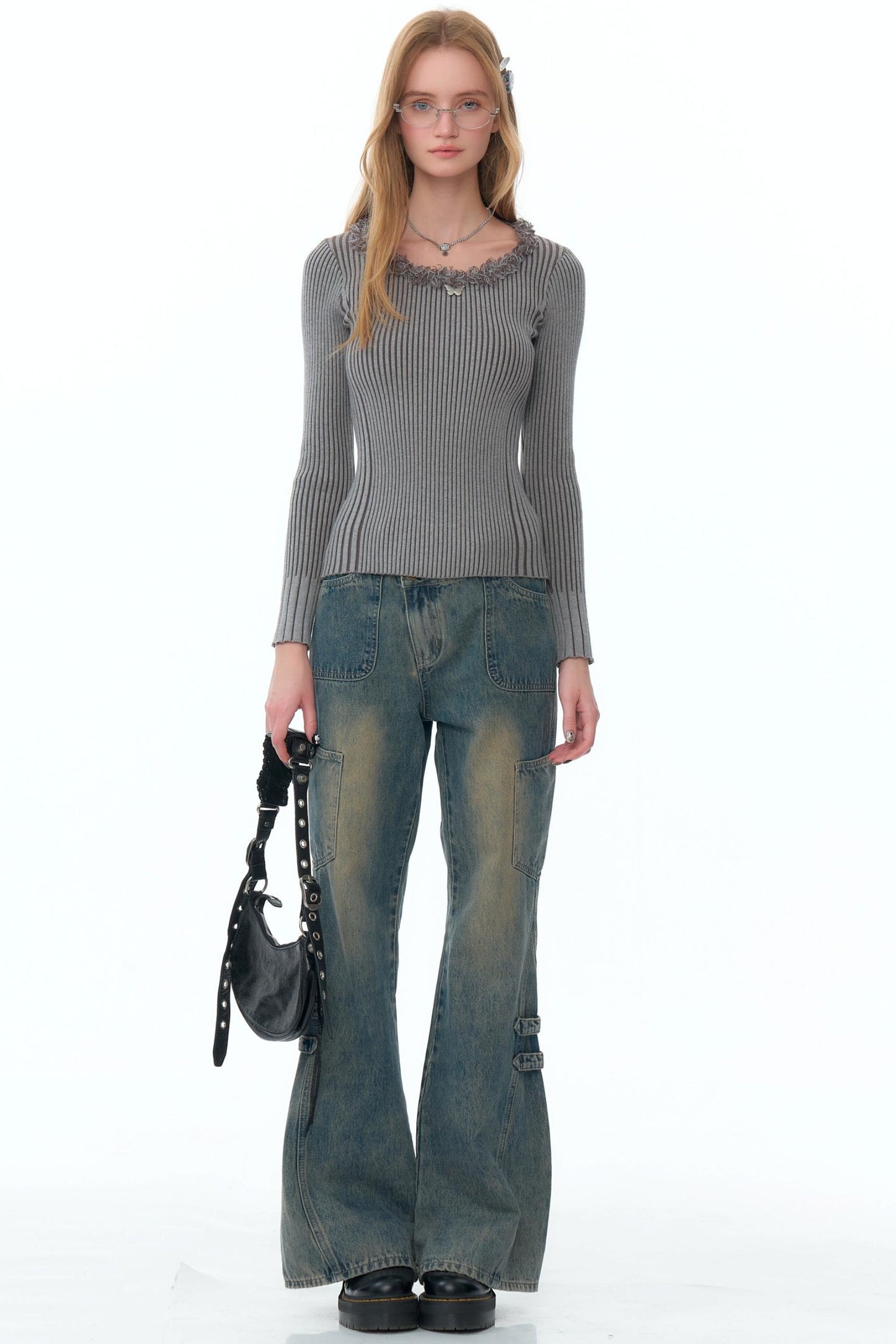 Butterfly Design Slim Knitted Shirt