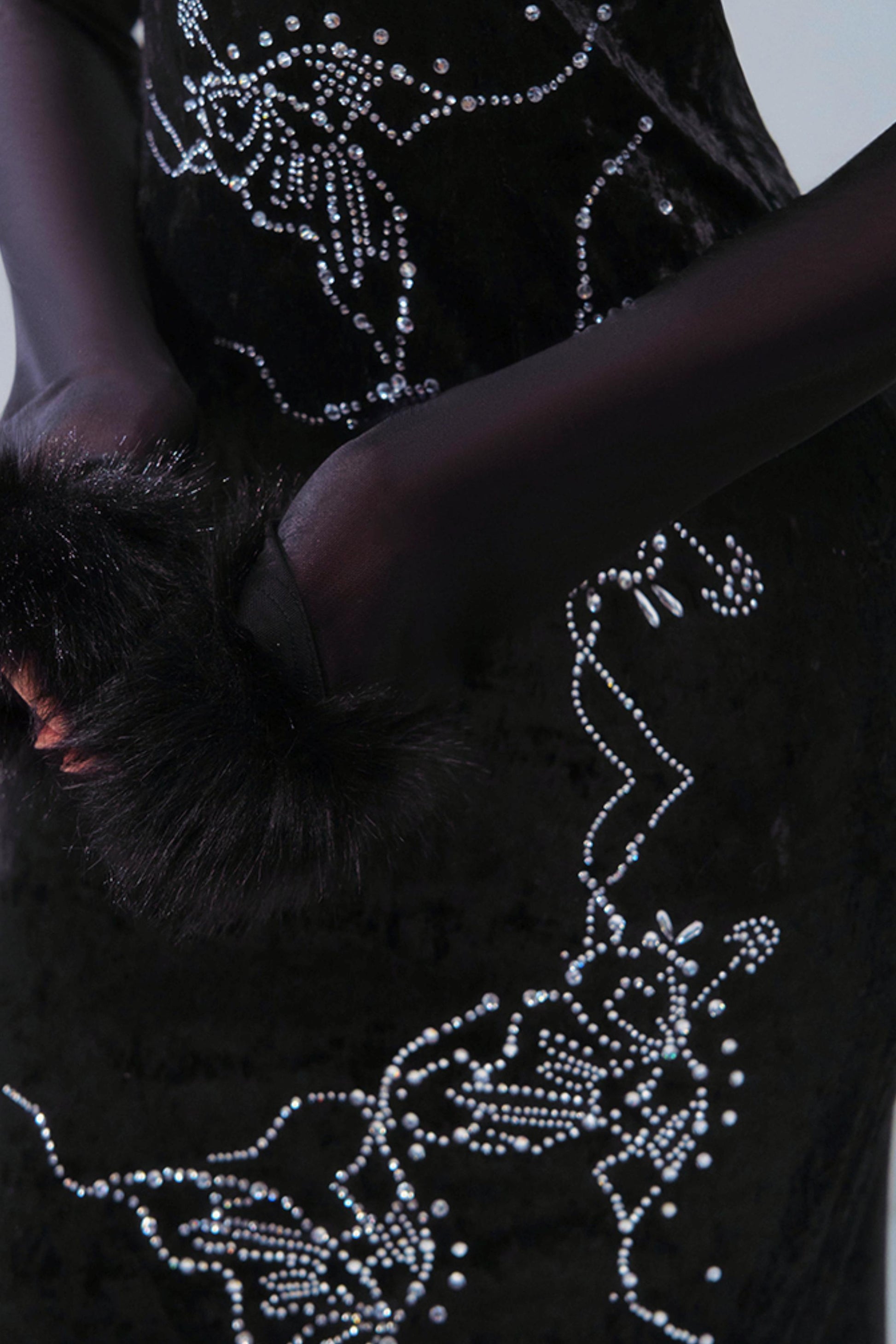 Butterfly Rhinestone Velvet Dress
