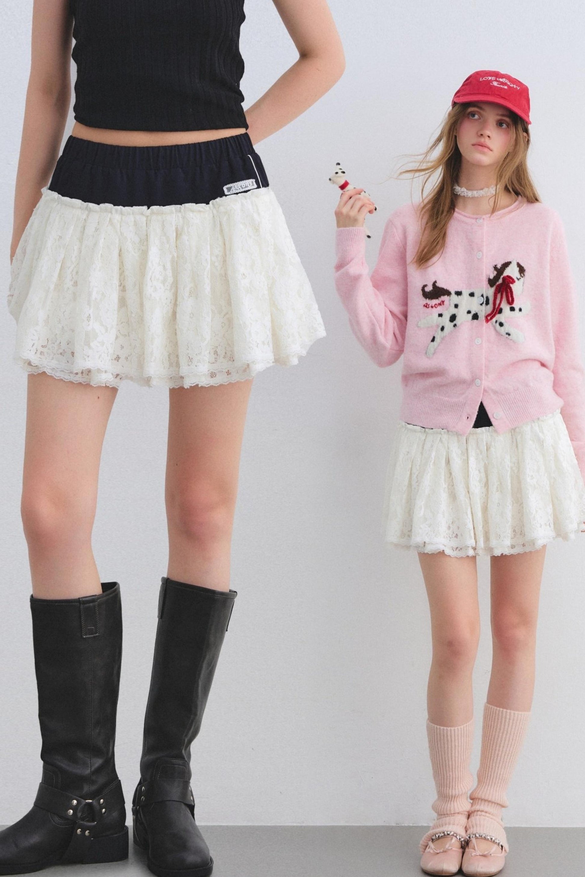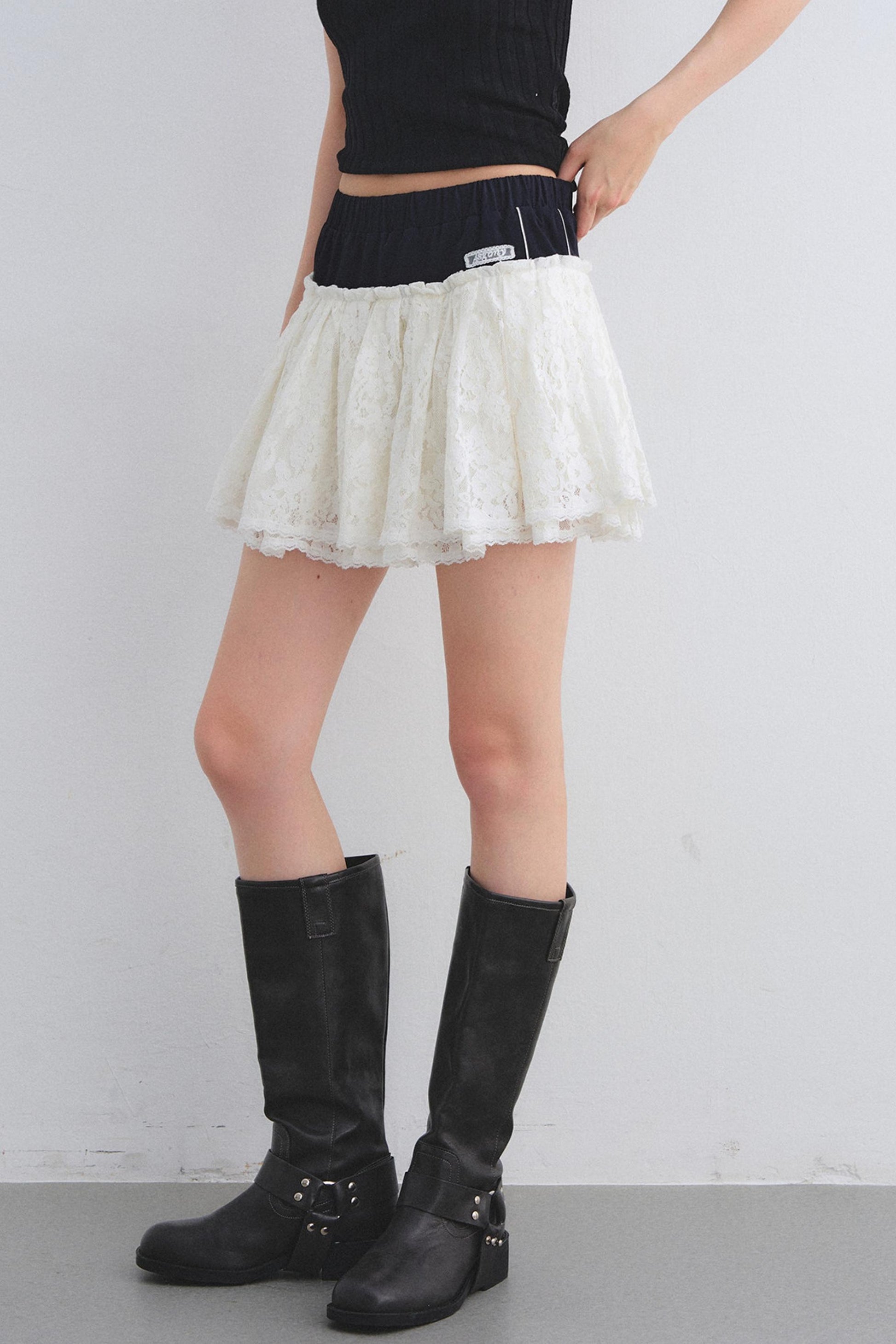 Color-Block Lace Tiered Skirt
