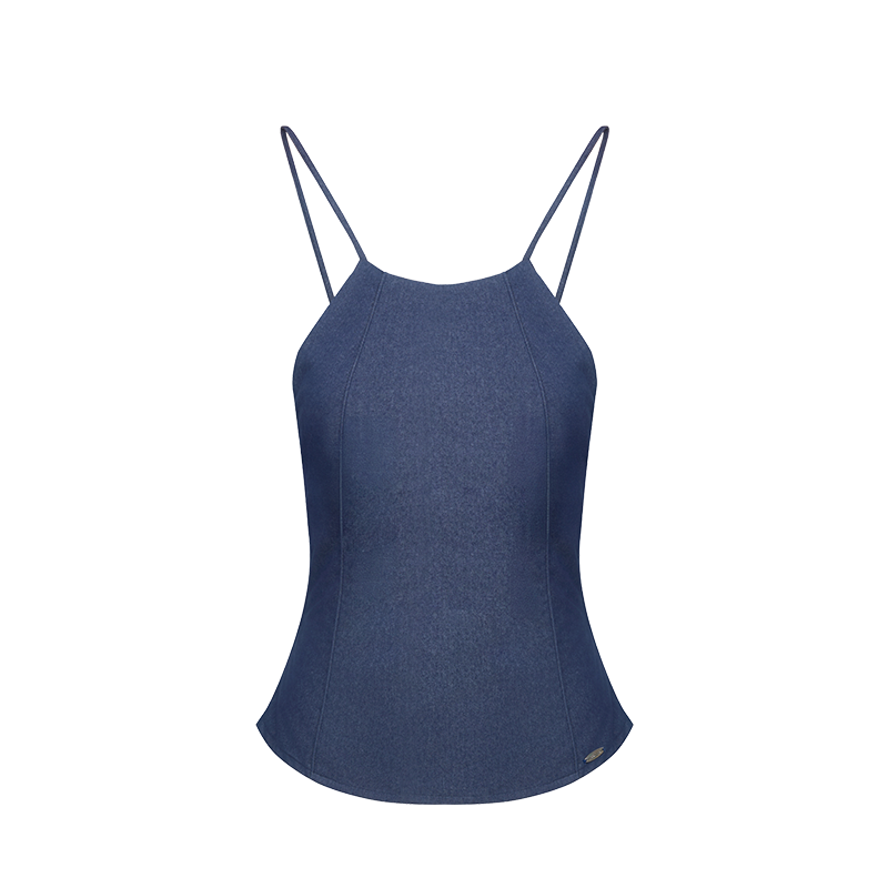 Cow Blue Pleated Denim Wide-Leg Pants Set-Up