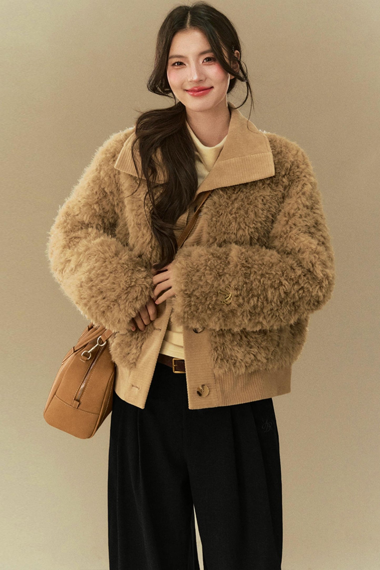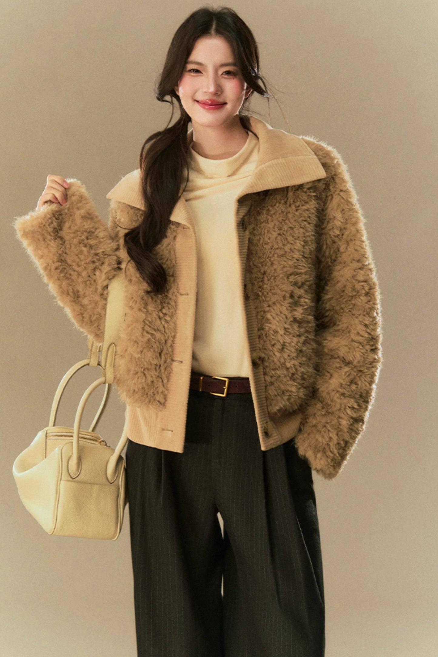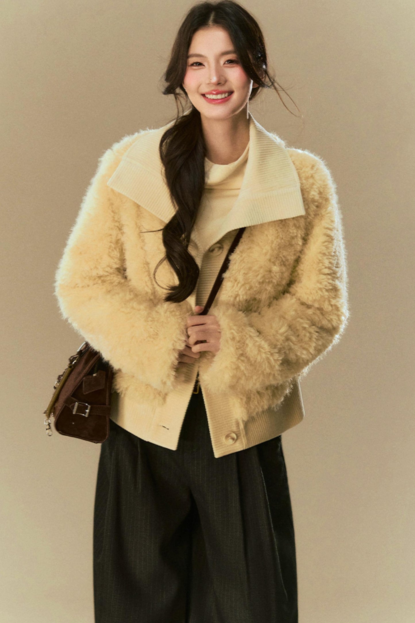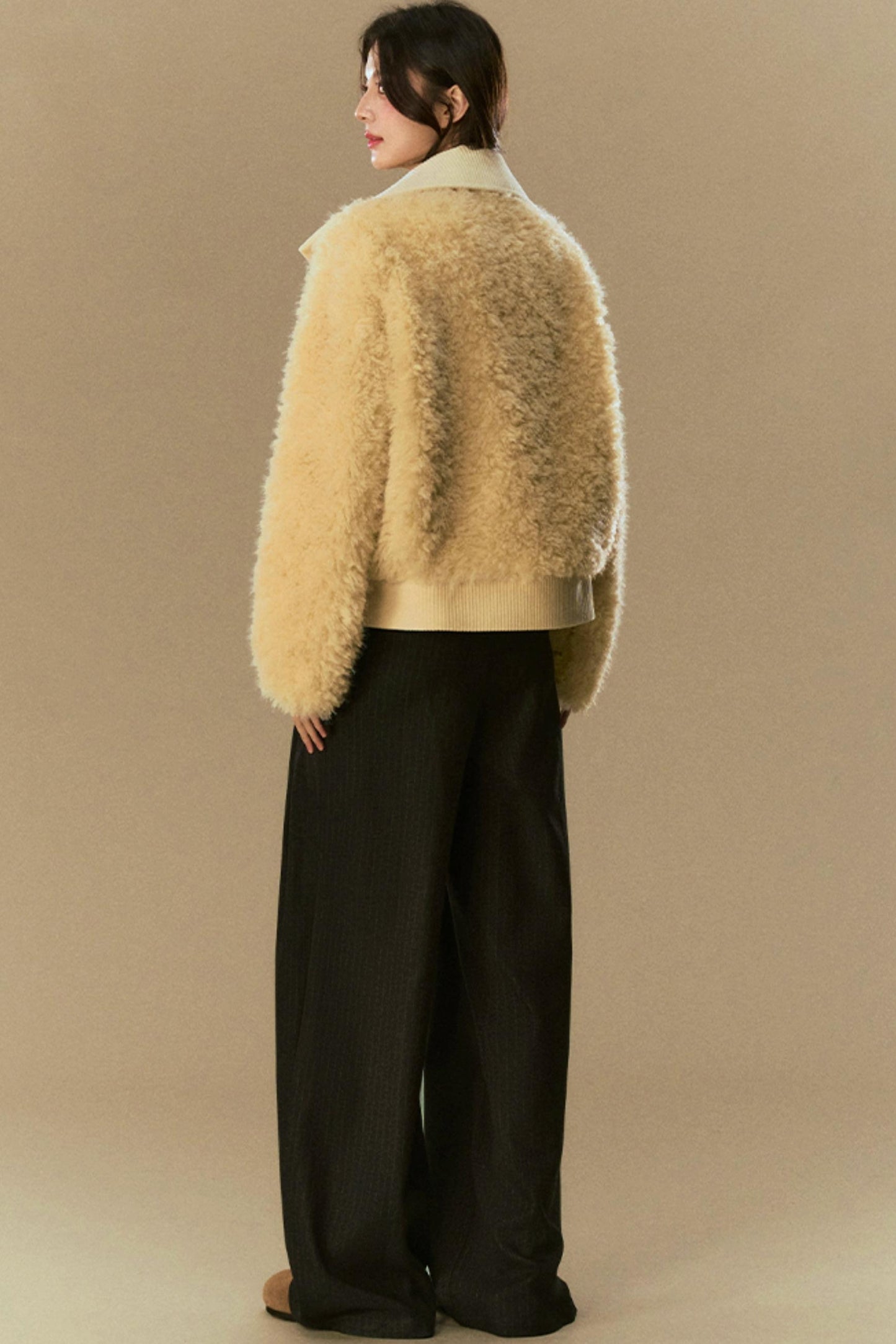Cropped Fur Lapel Jacket