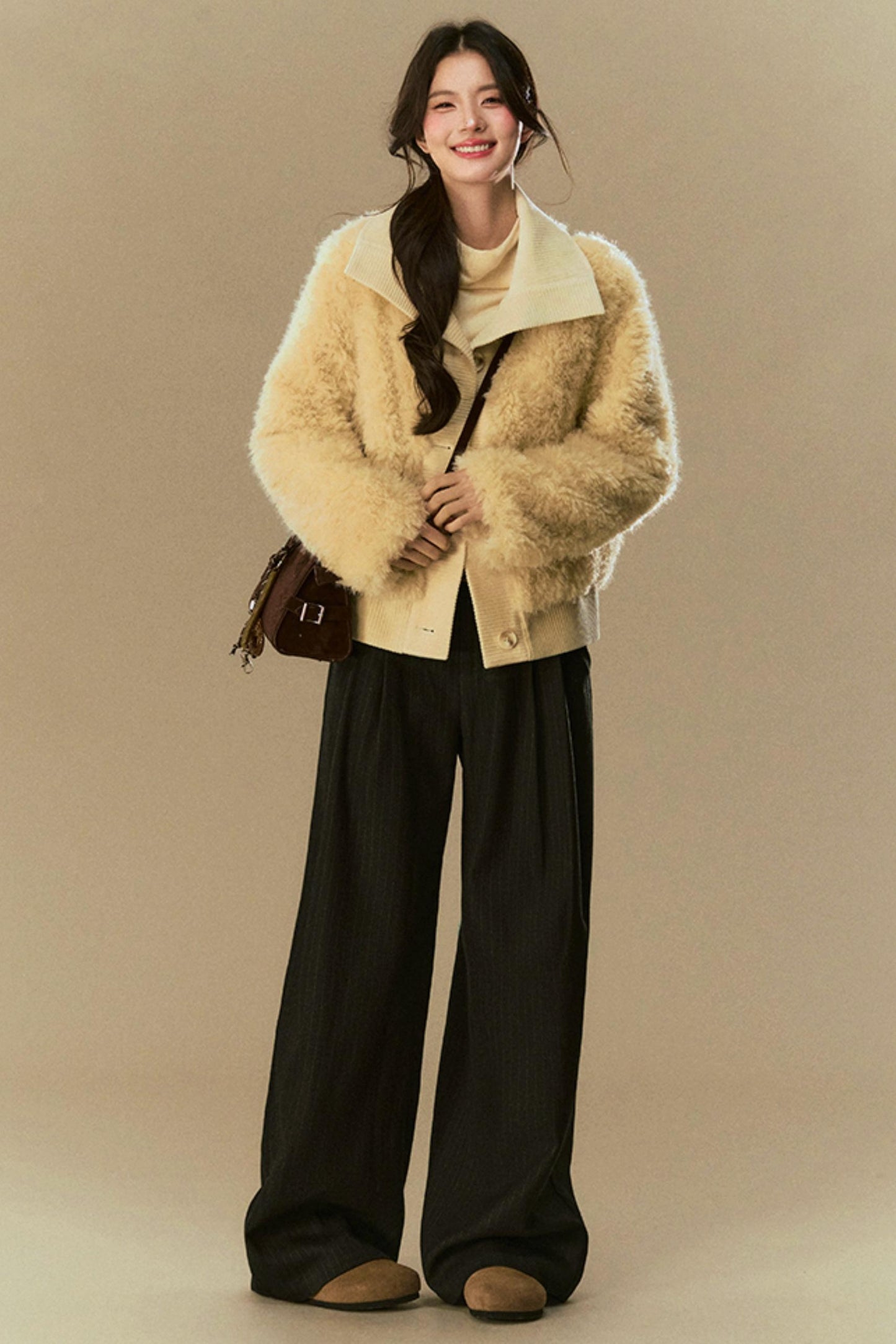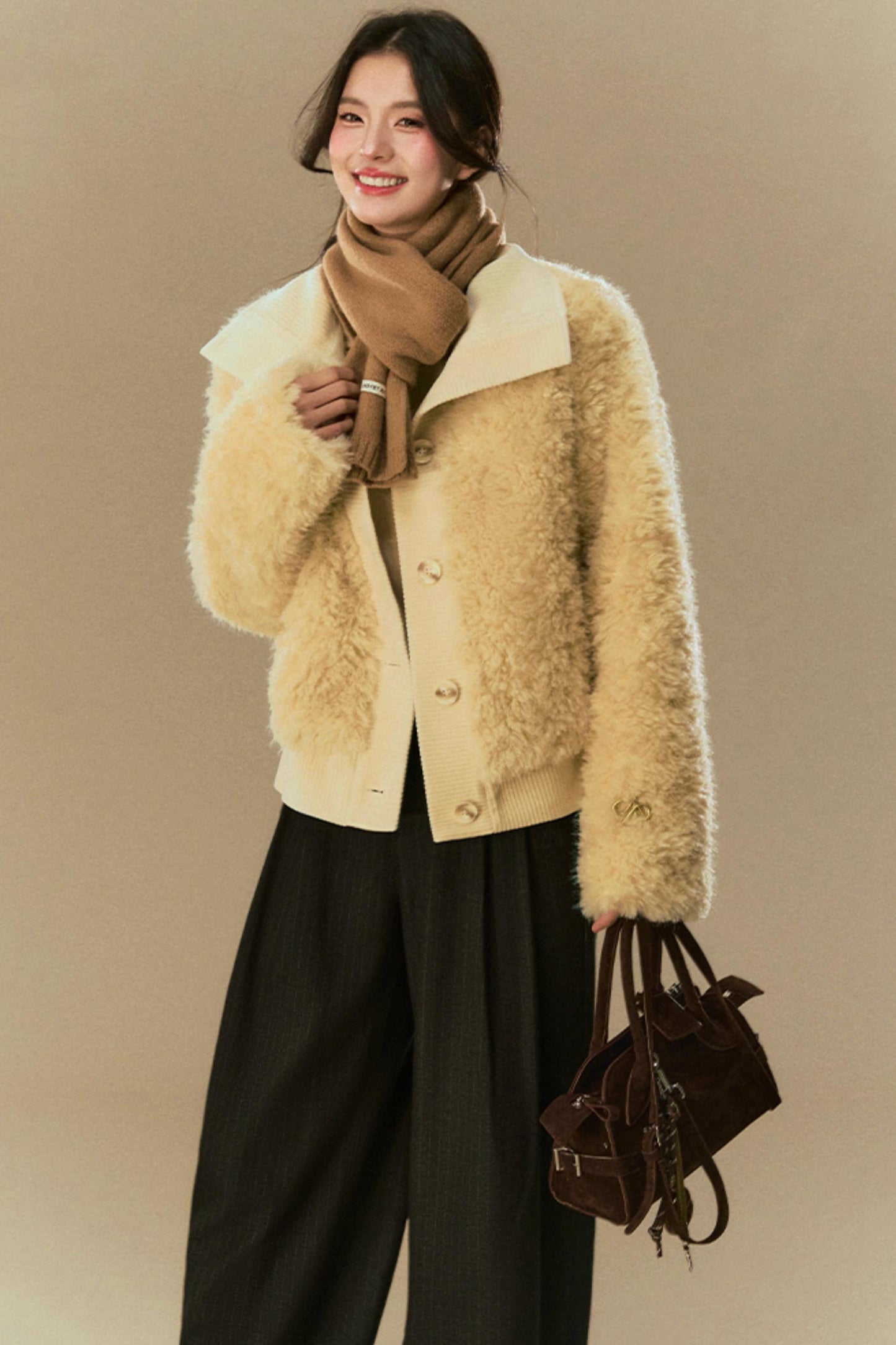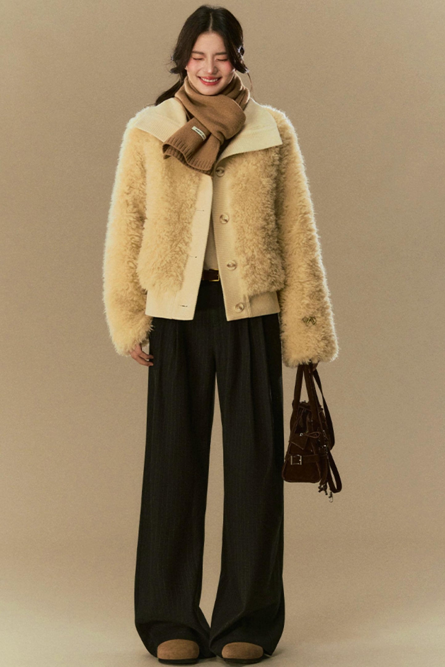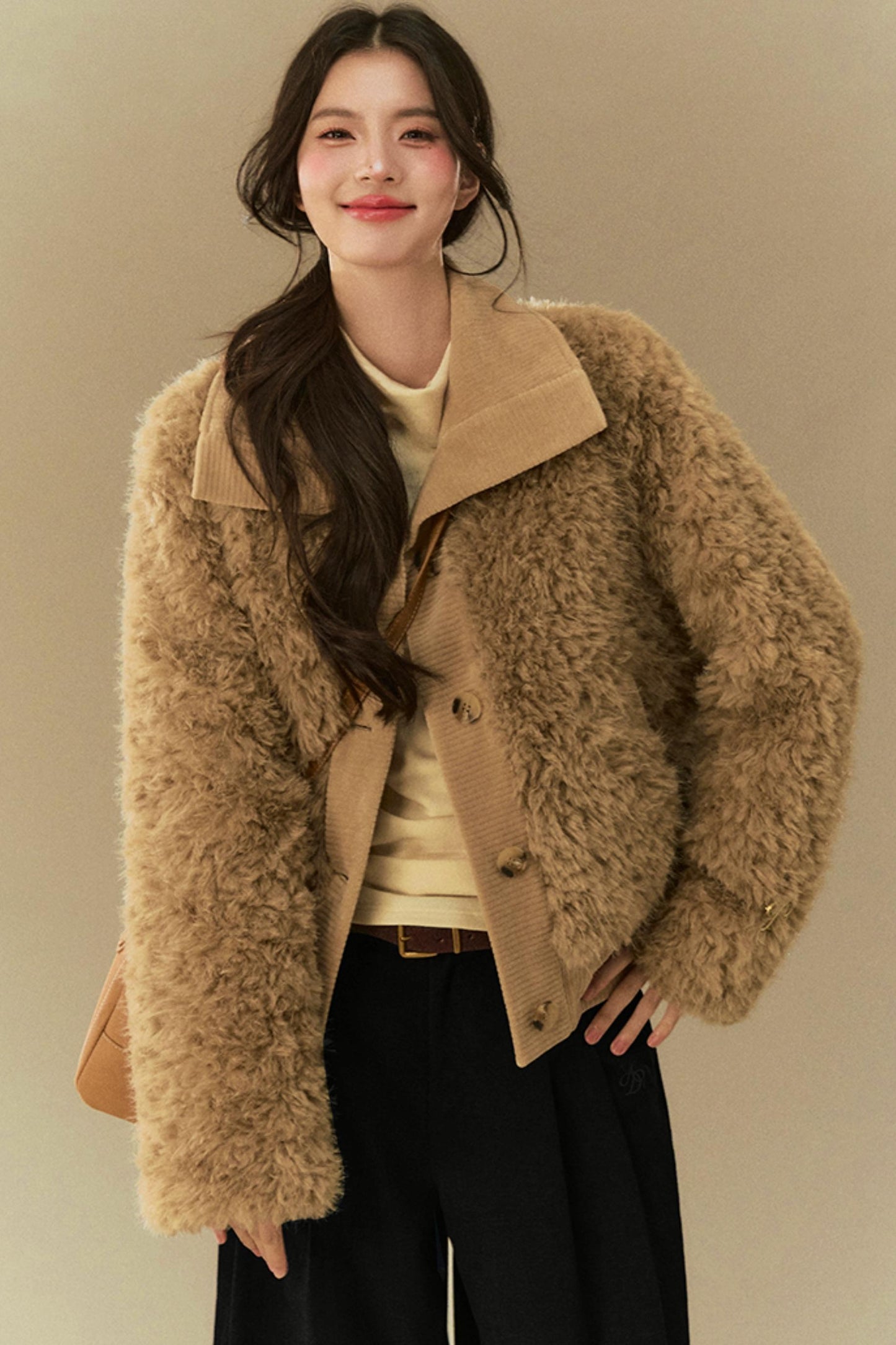 Cropped Fur Lapel Jacket