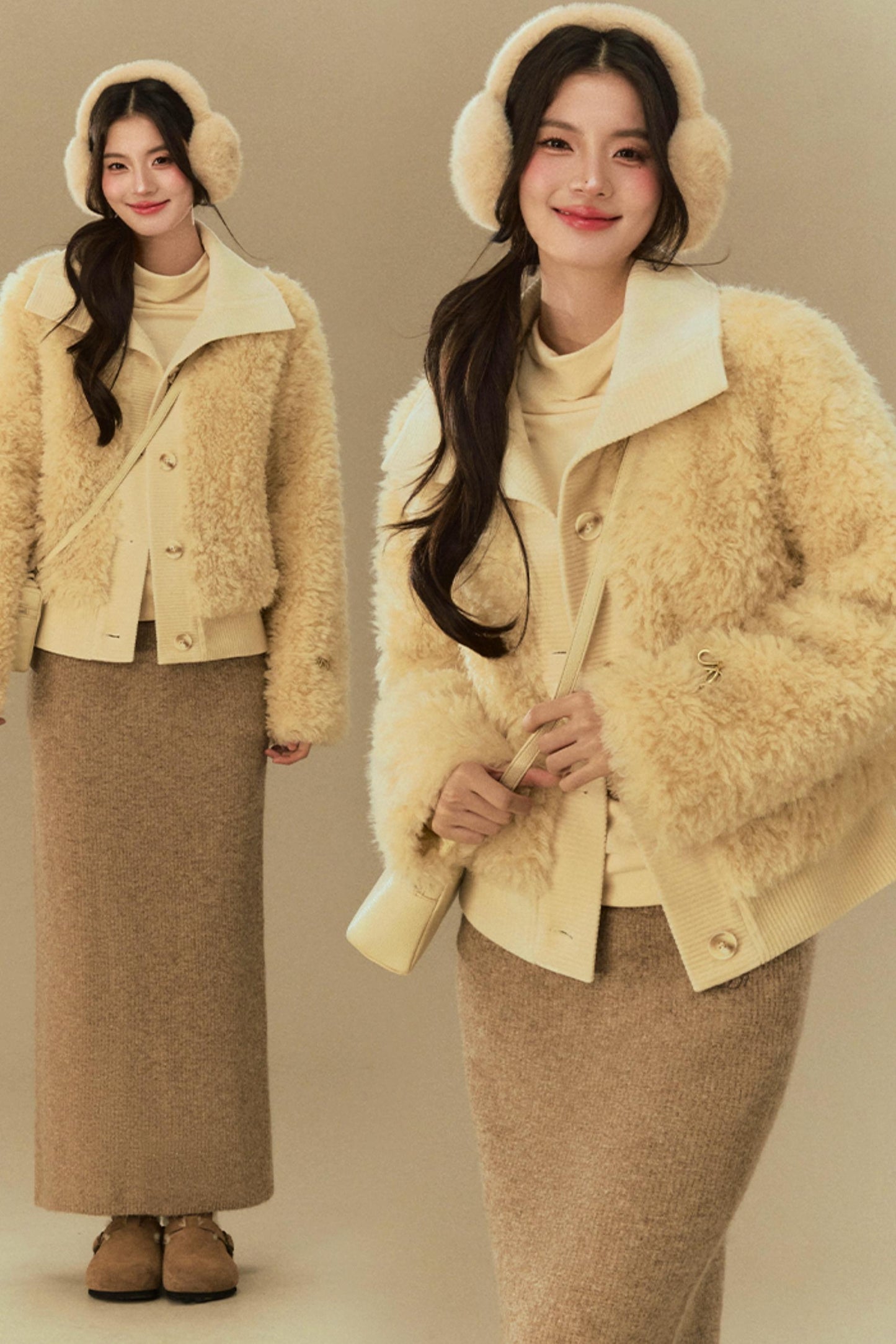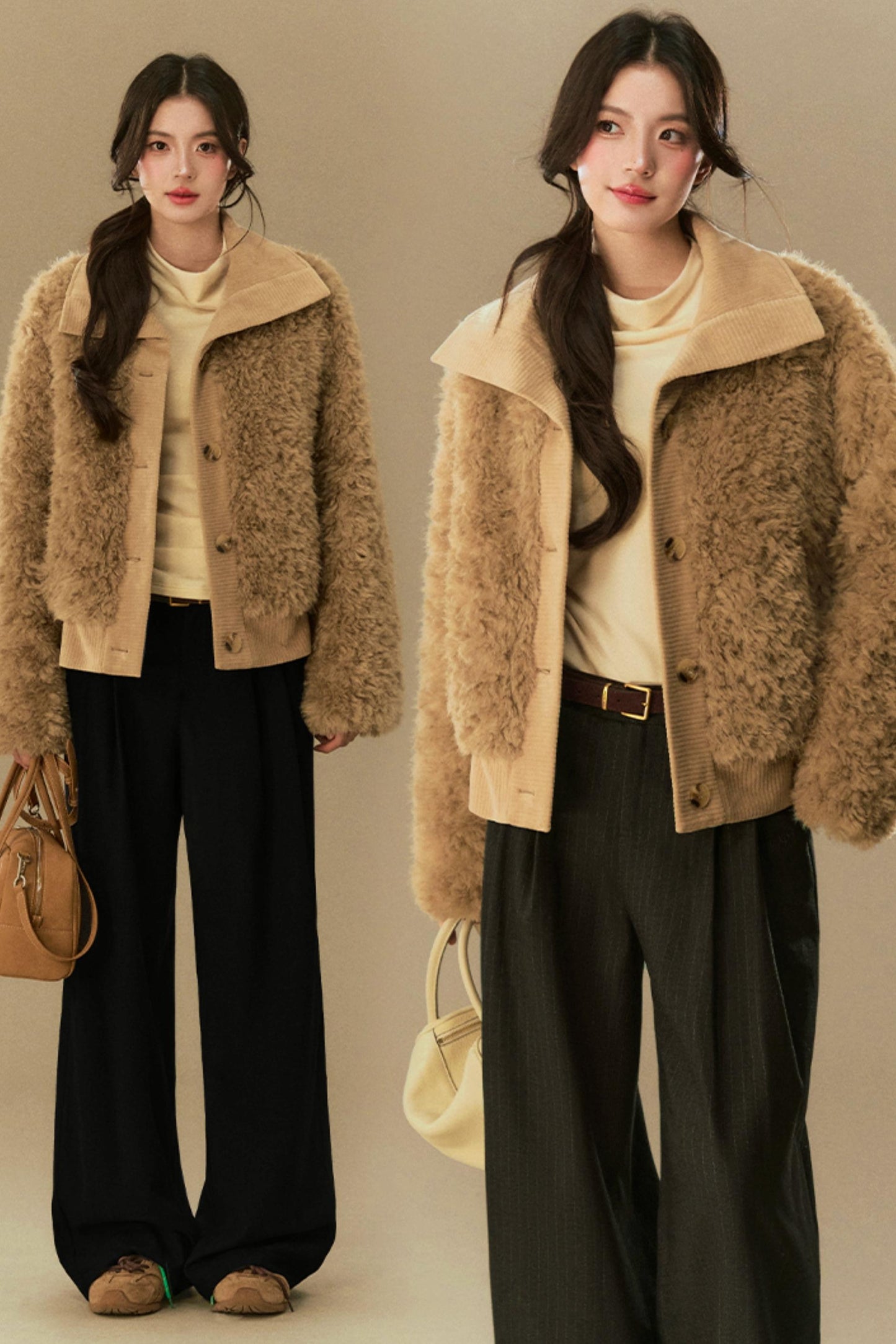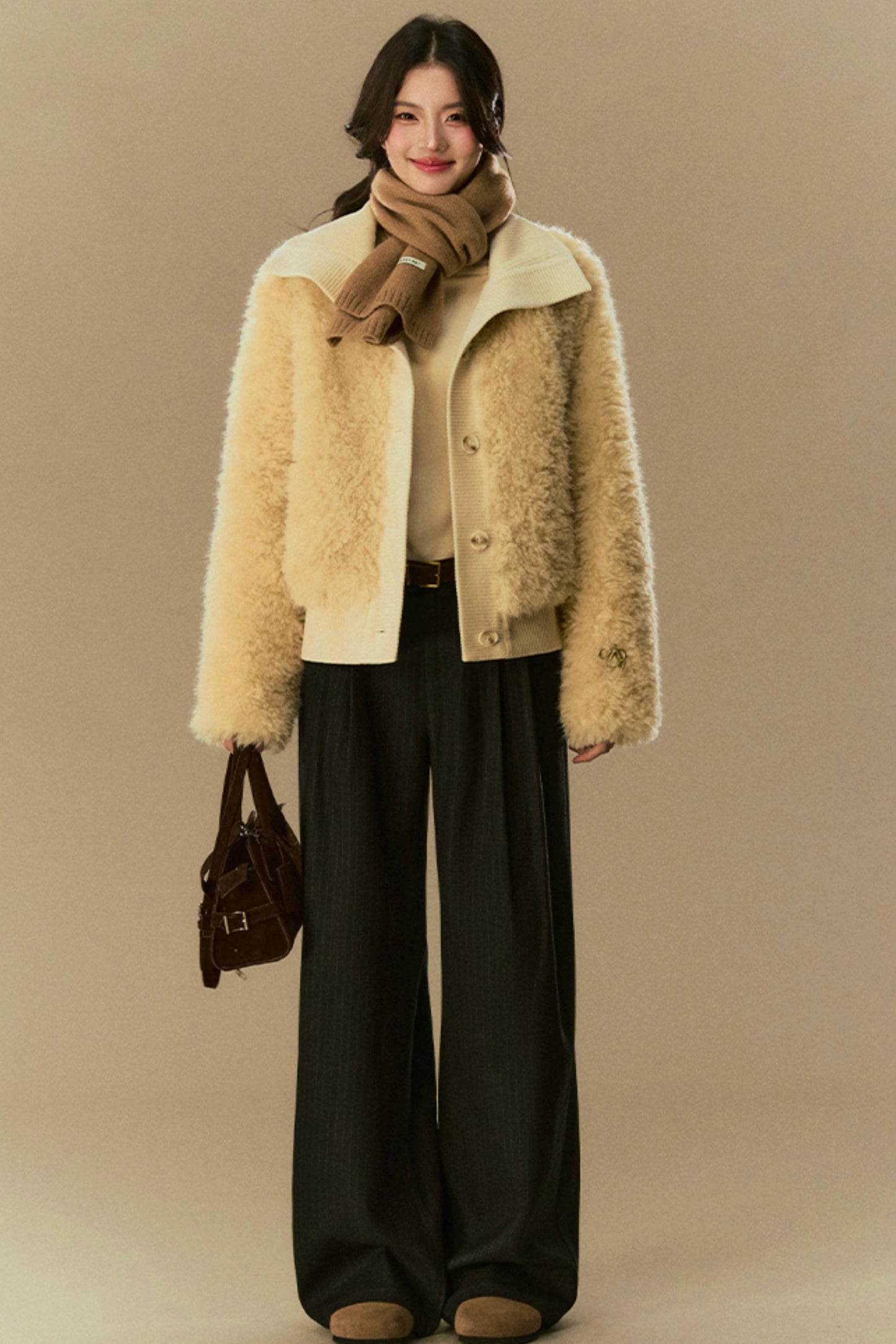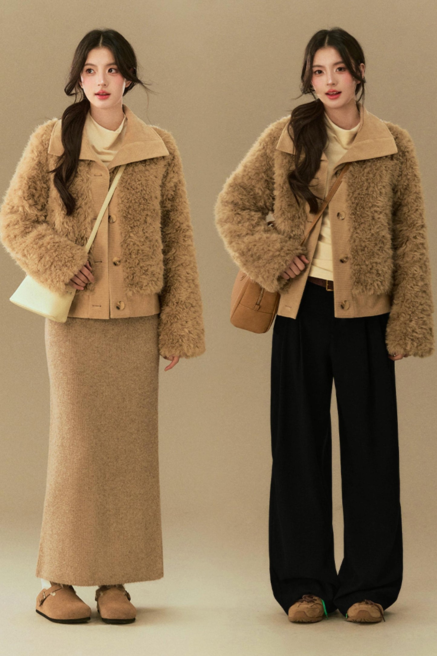 Cropped Fur Lapel Jacket