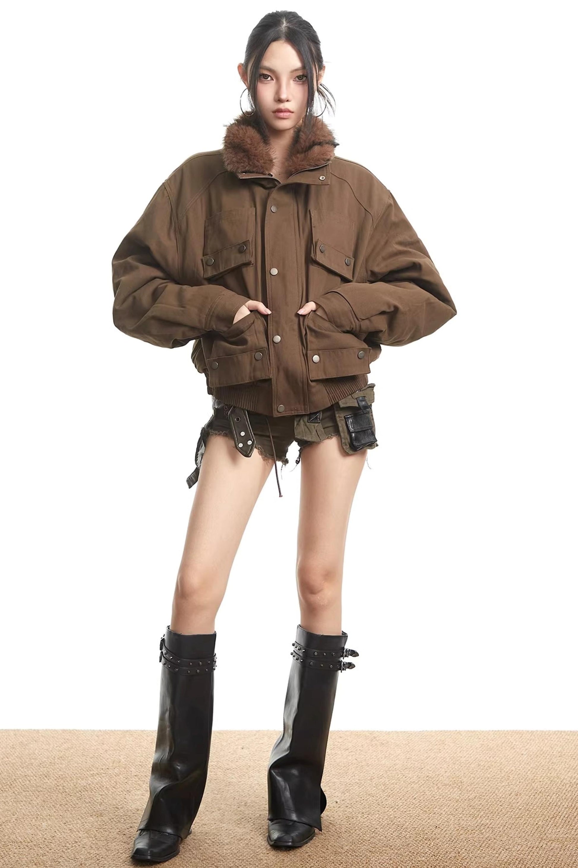 Dark Brown Fur Collar Jacket