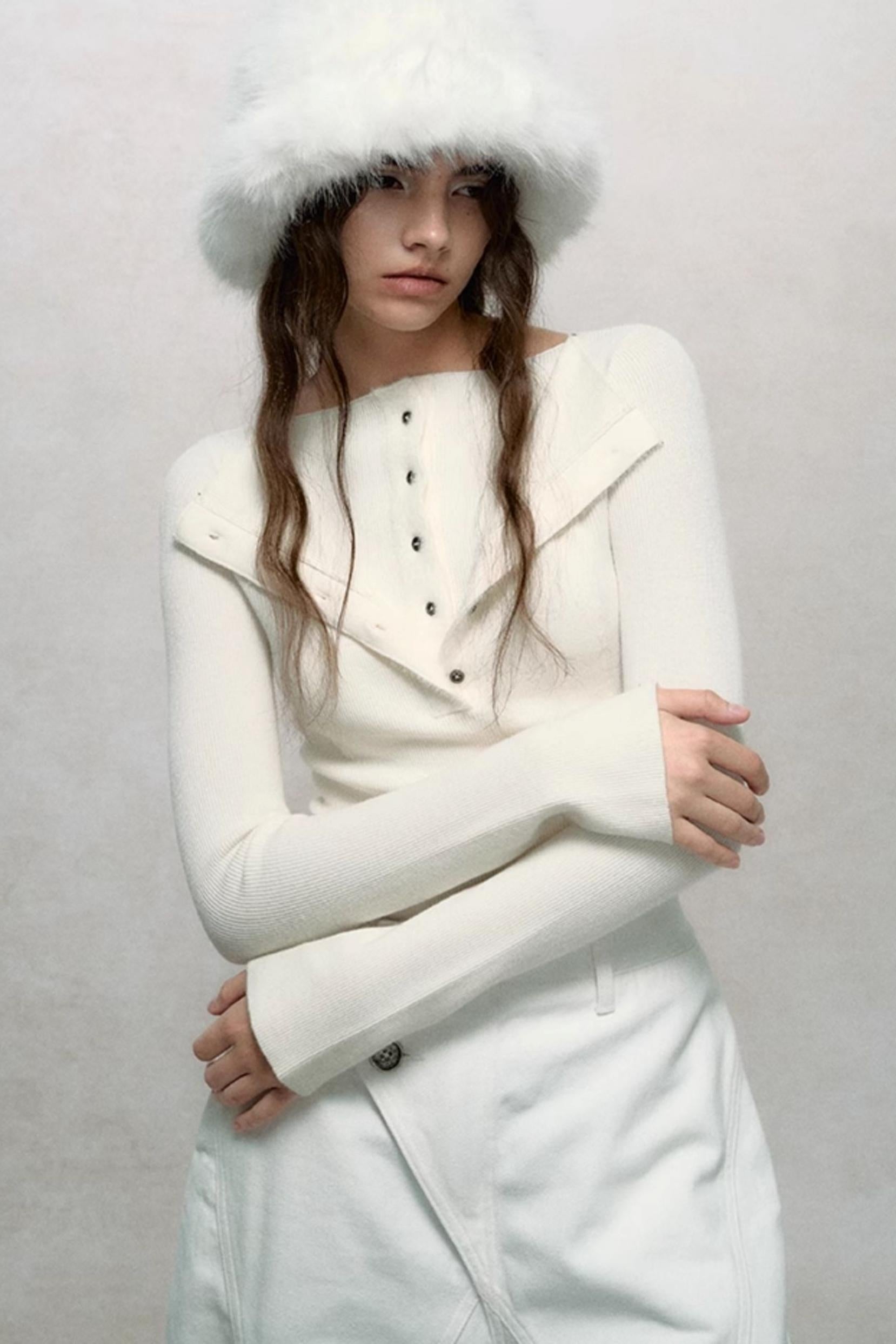 Double-Collar Slim Knit Top