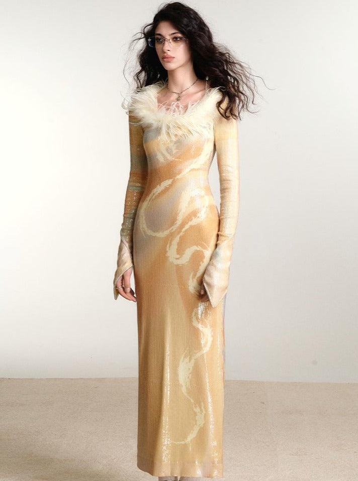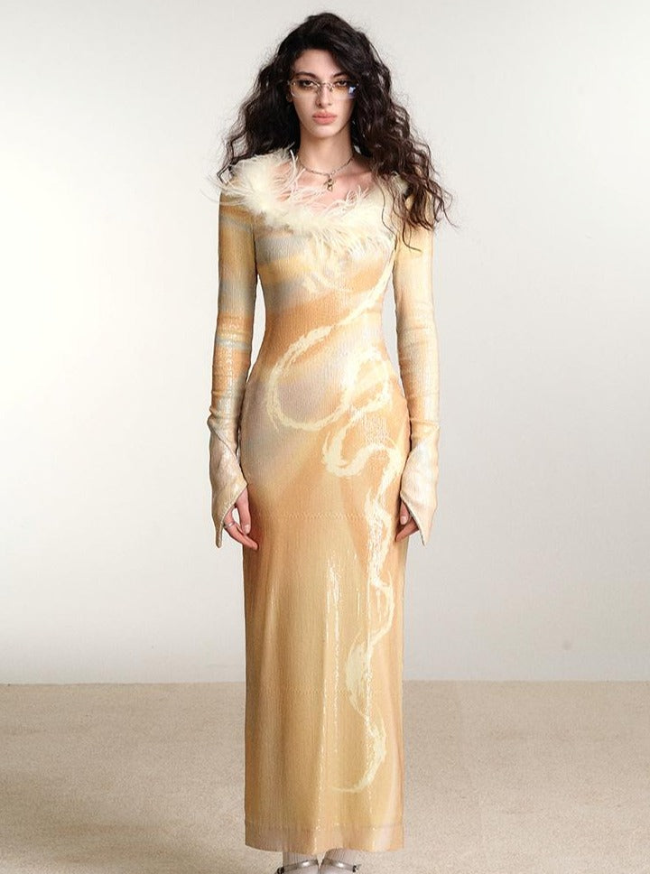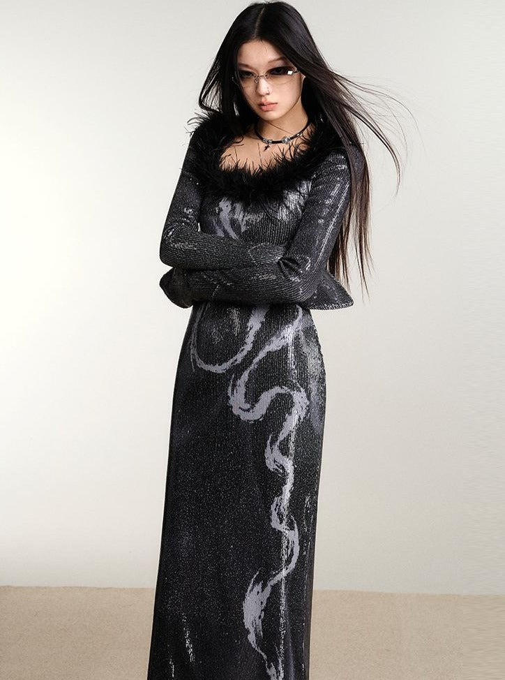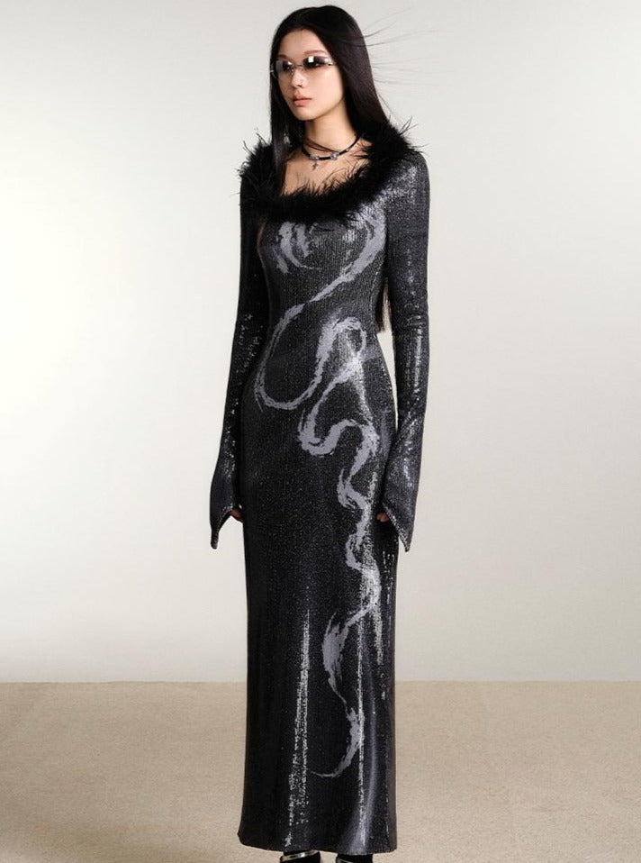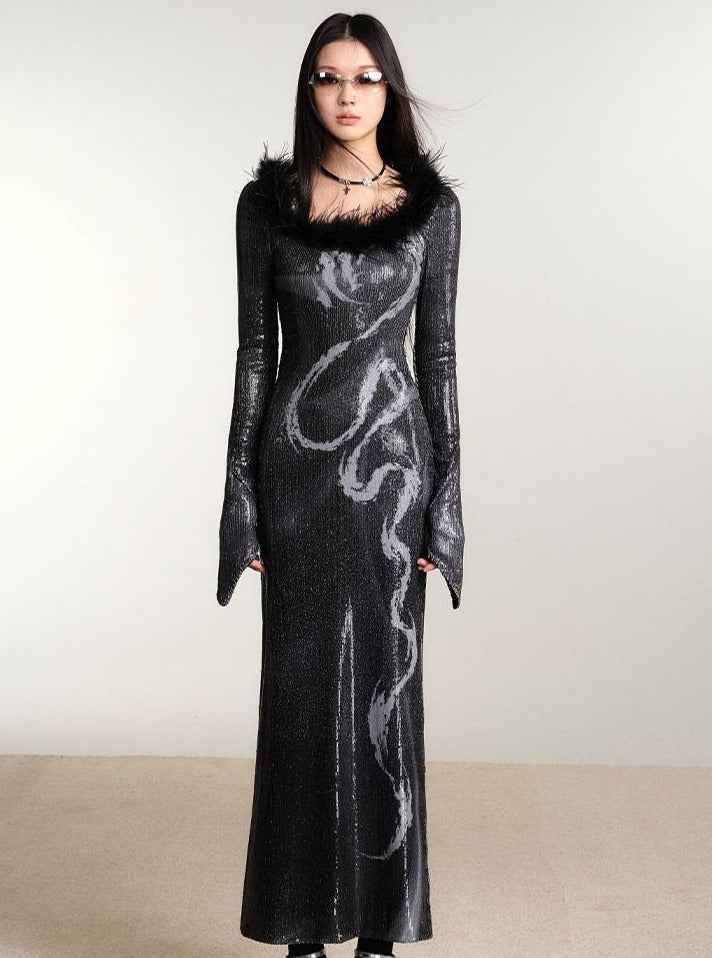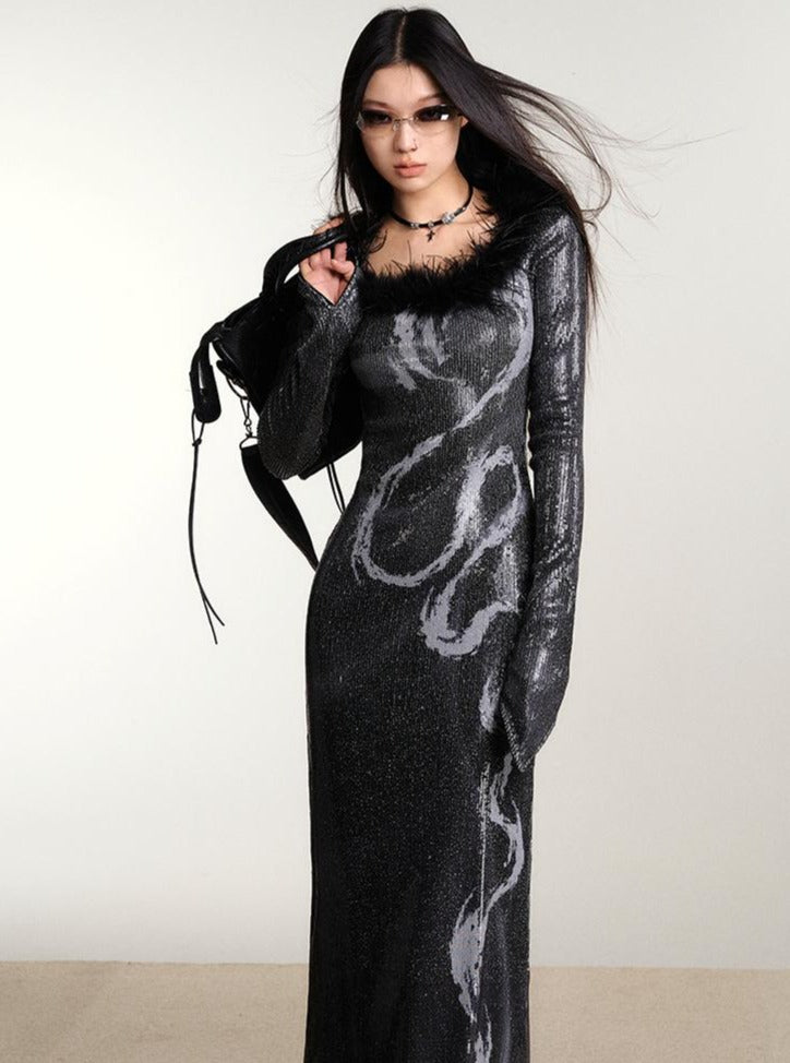 Dragon Print Slim Sequin Dress