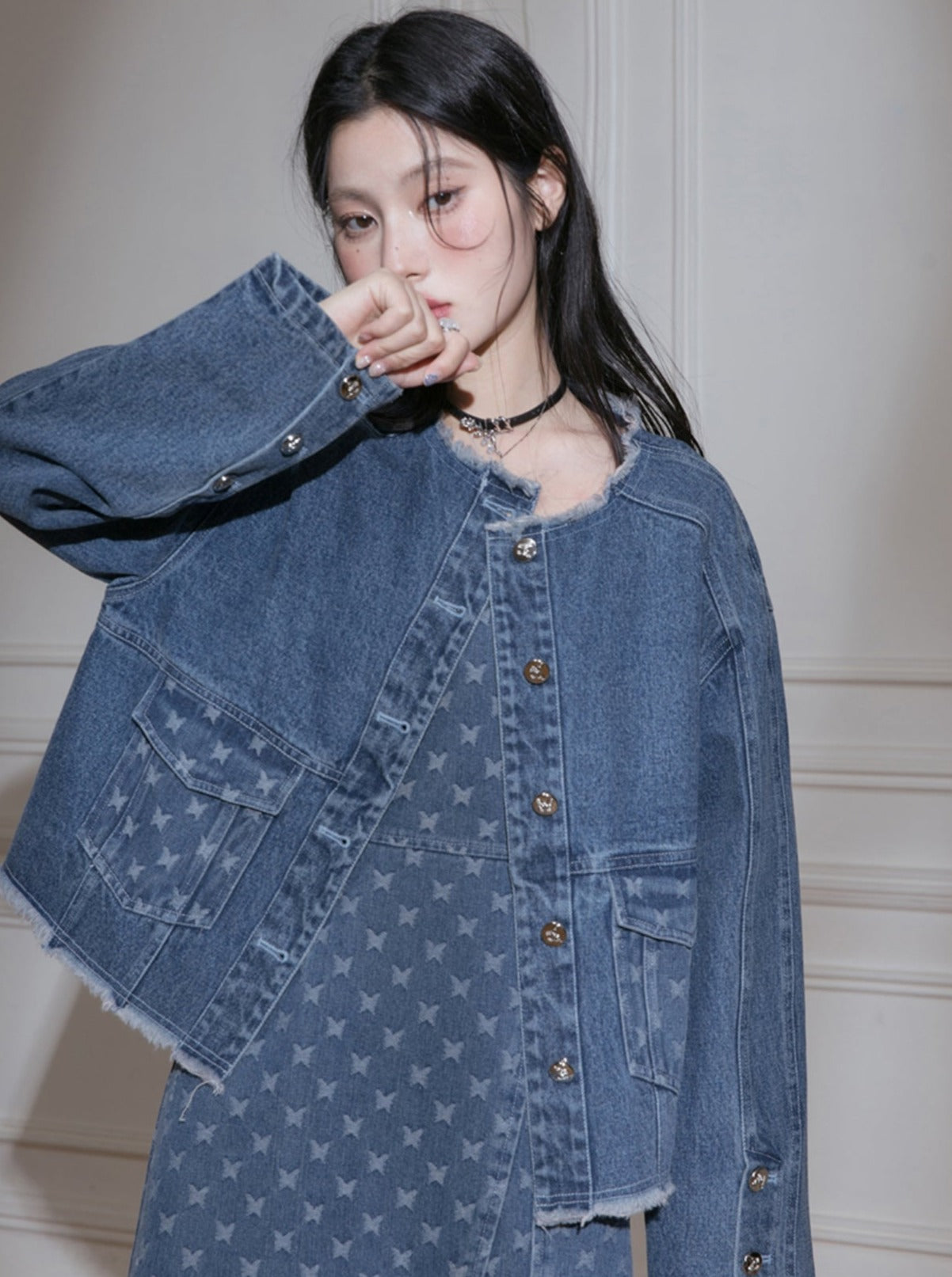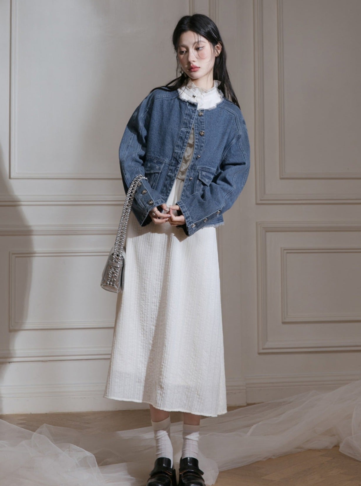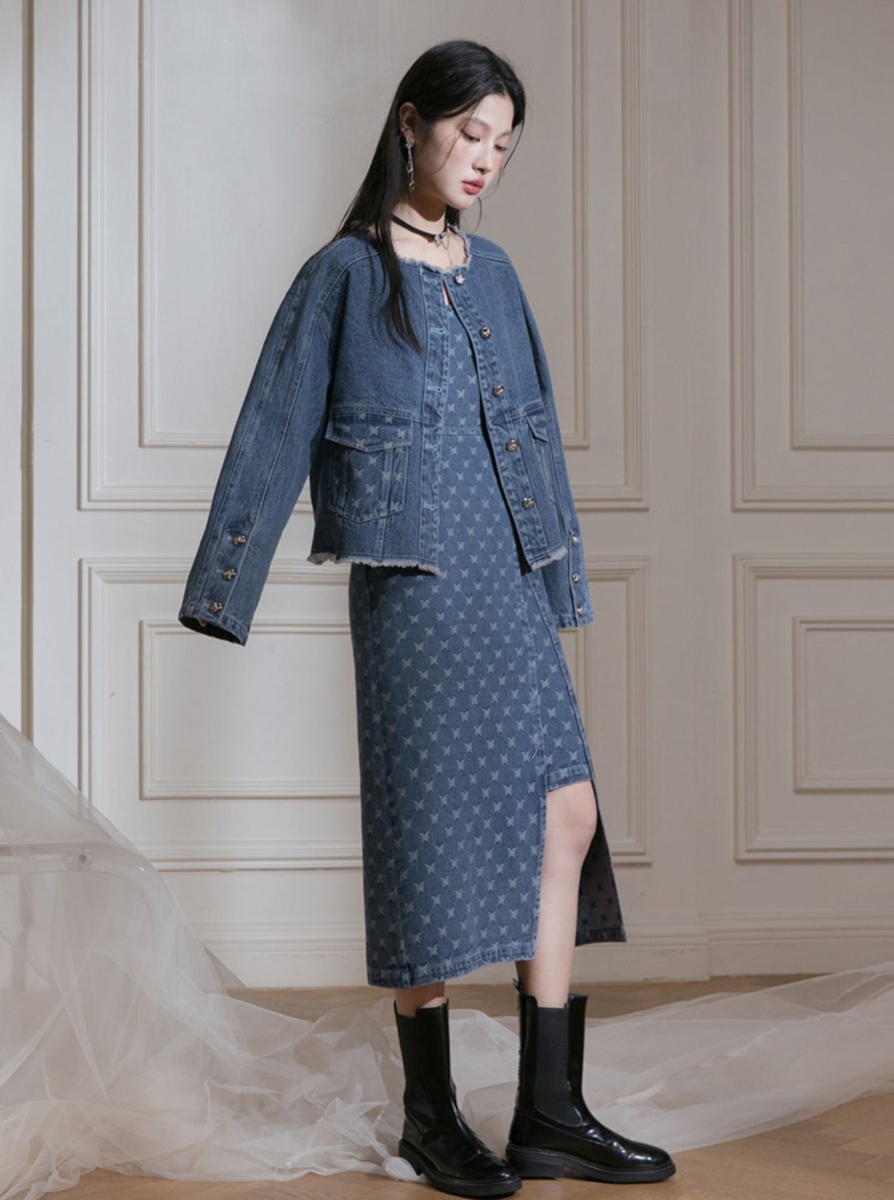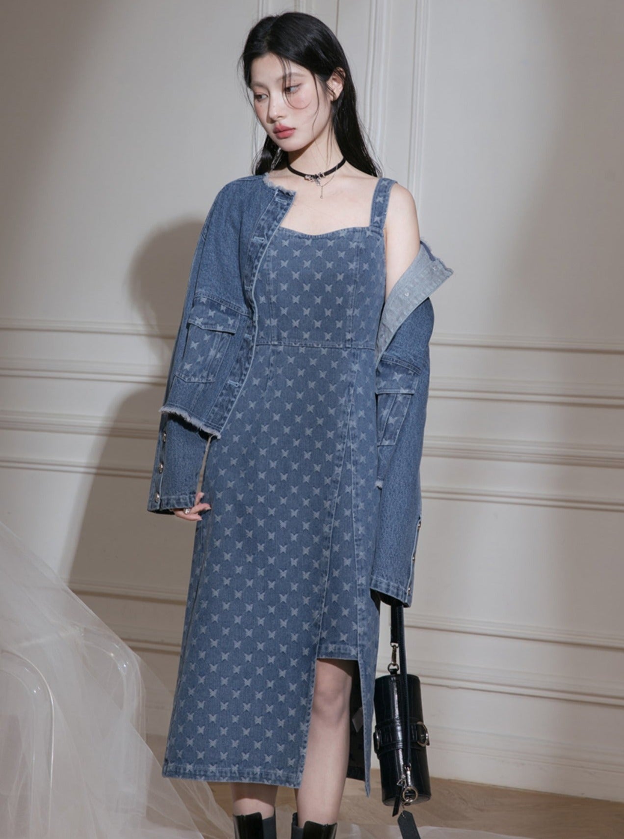 Edged Jacquard Denim Jacket Sundress Set