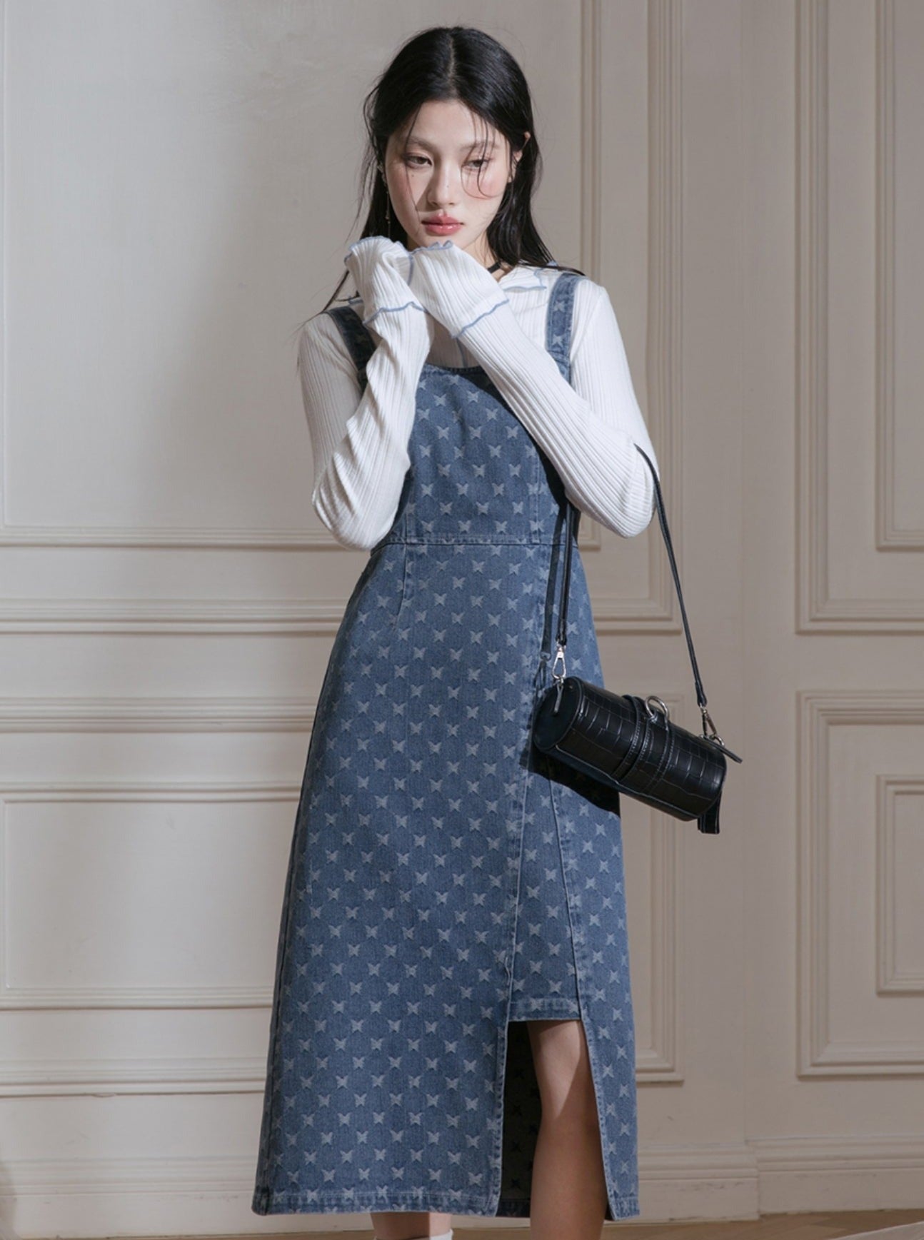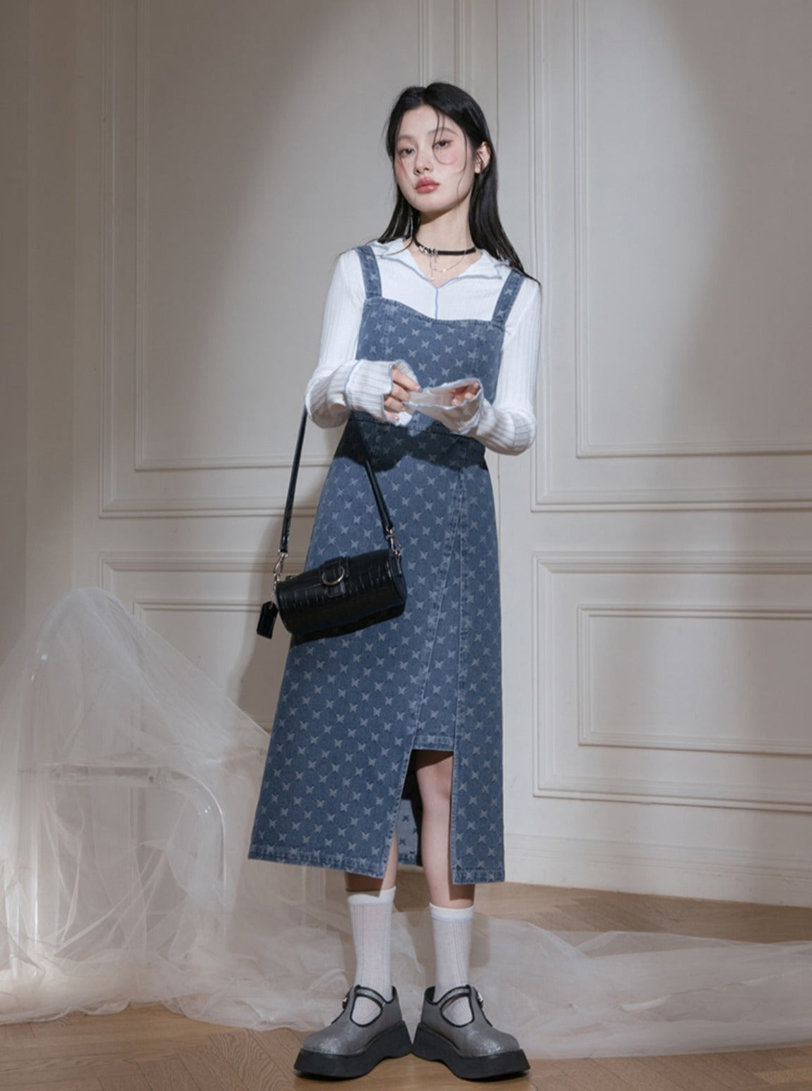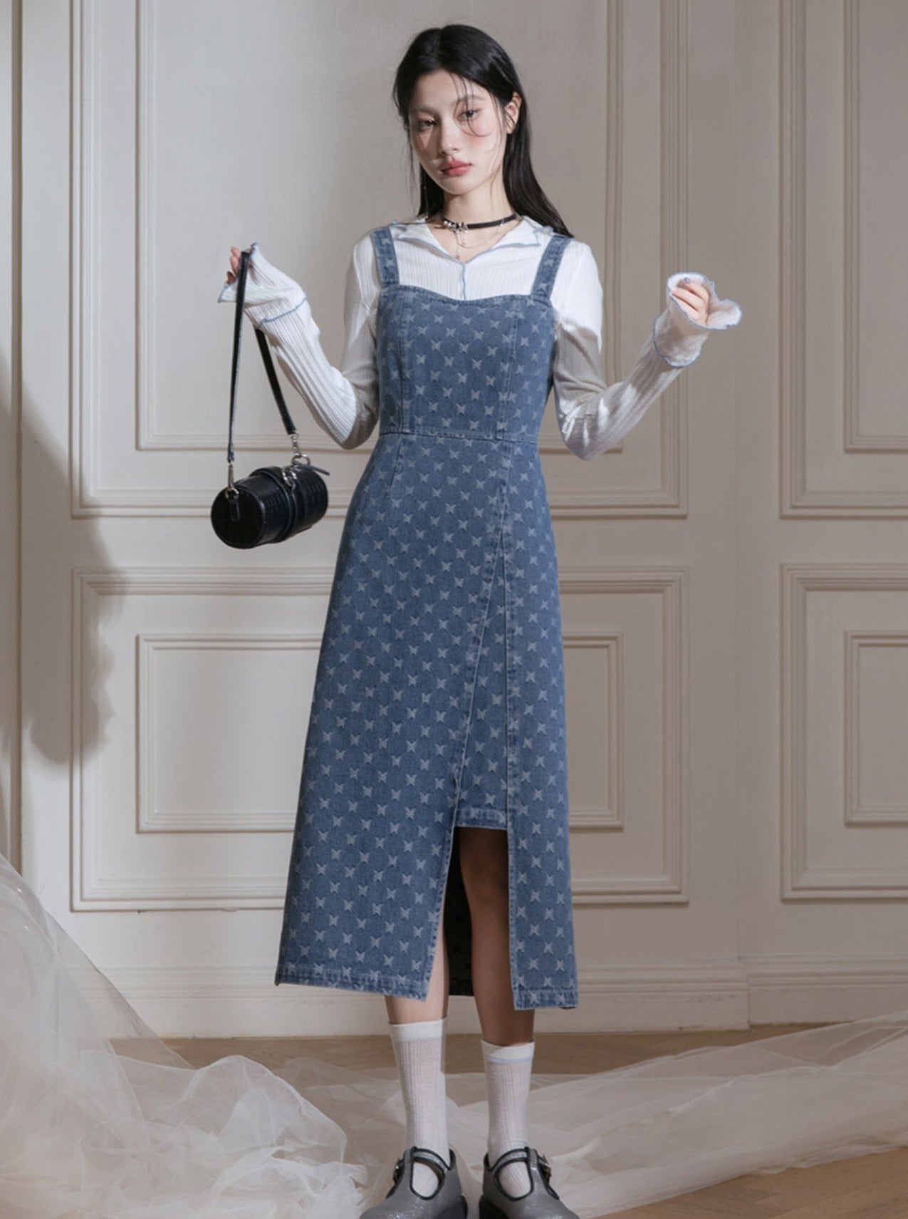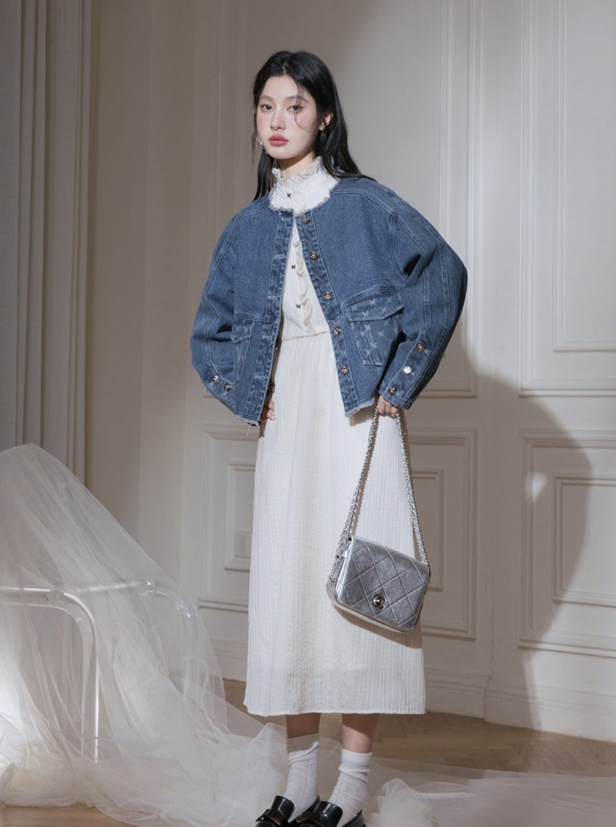 Edged Jacquard Denim Jacket Sundress Set