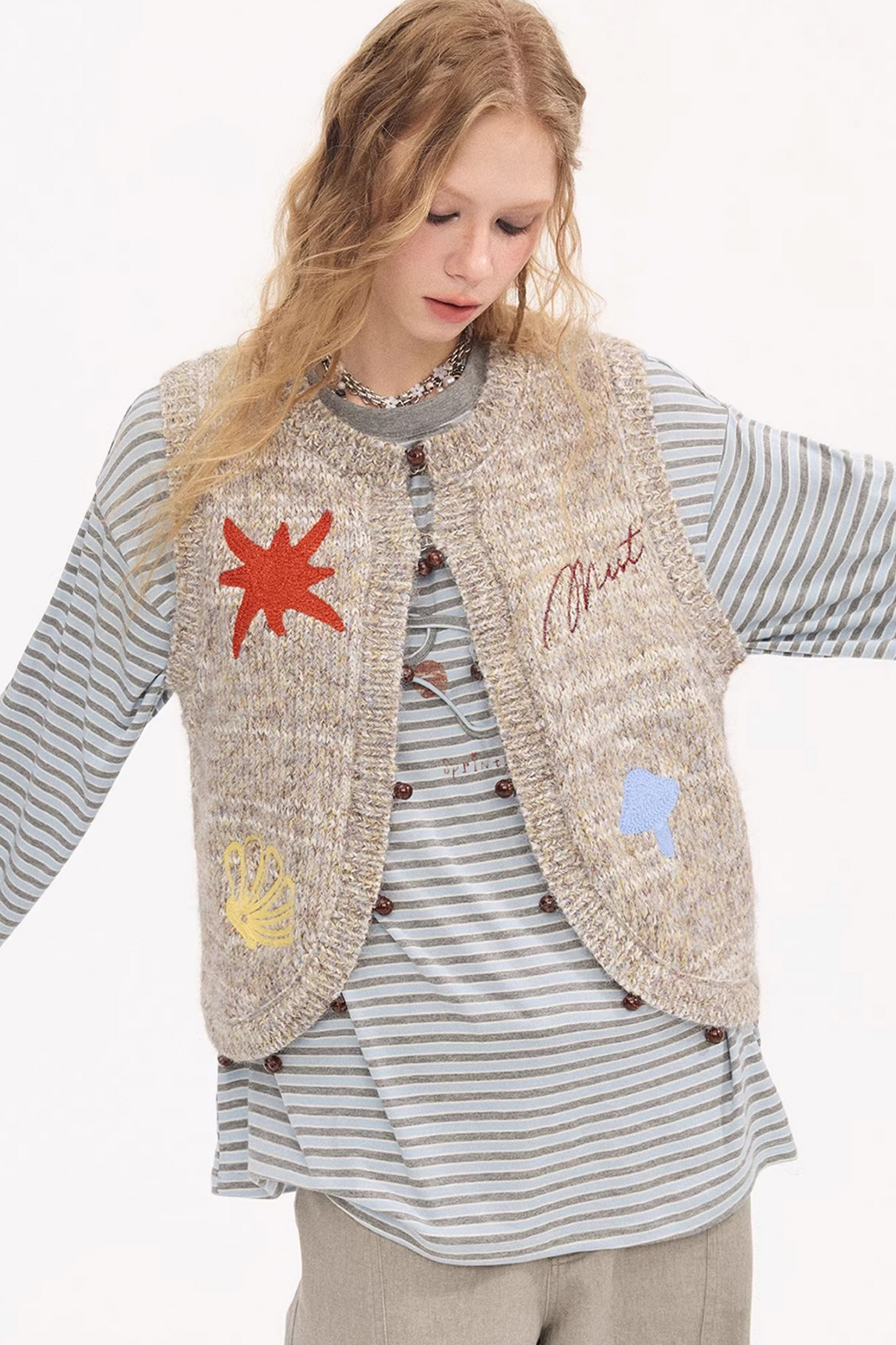 Embroidered Beaded Knitted Vest