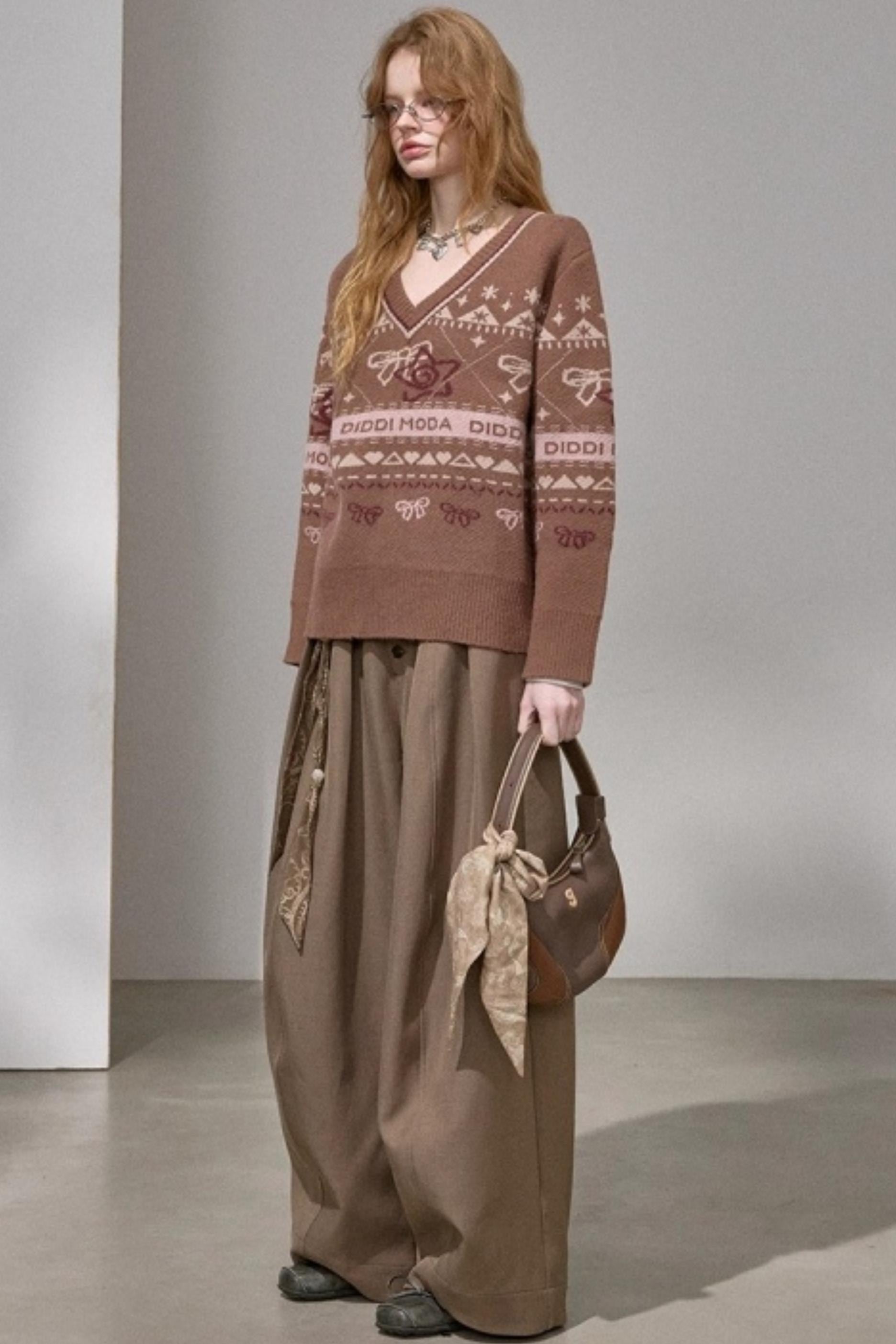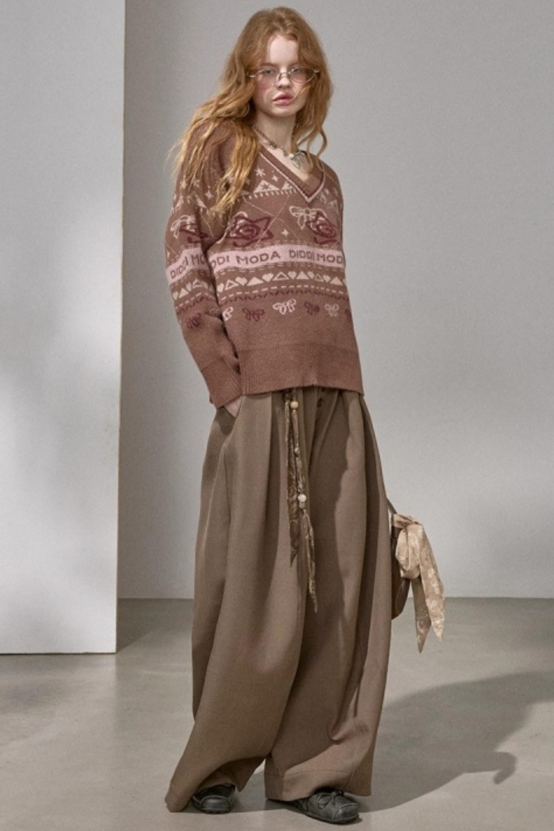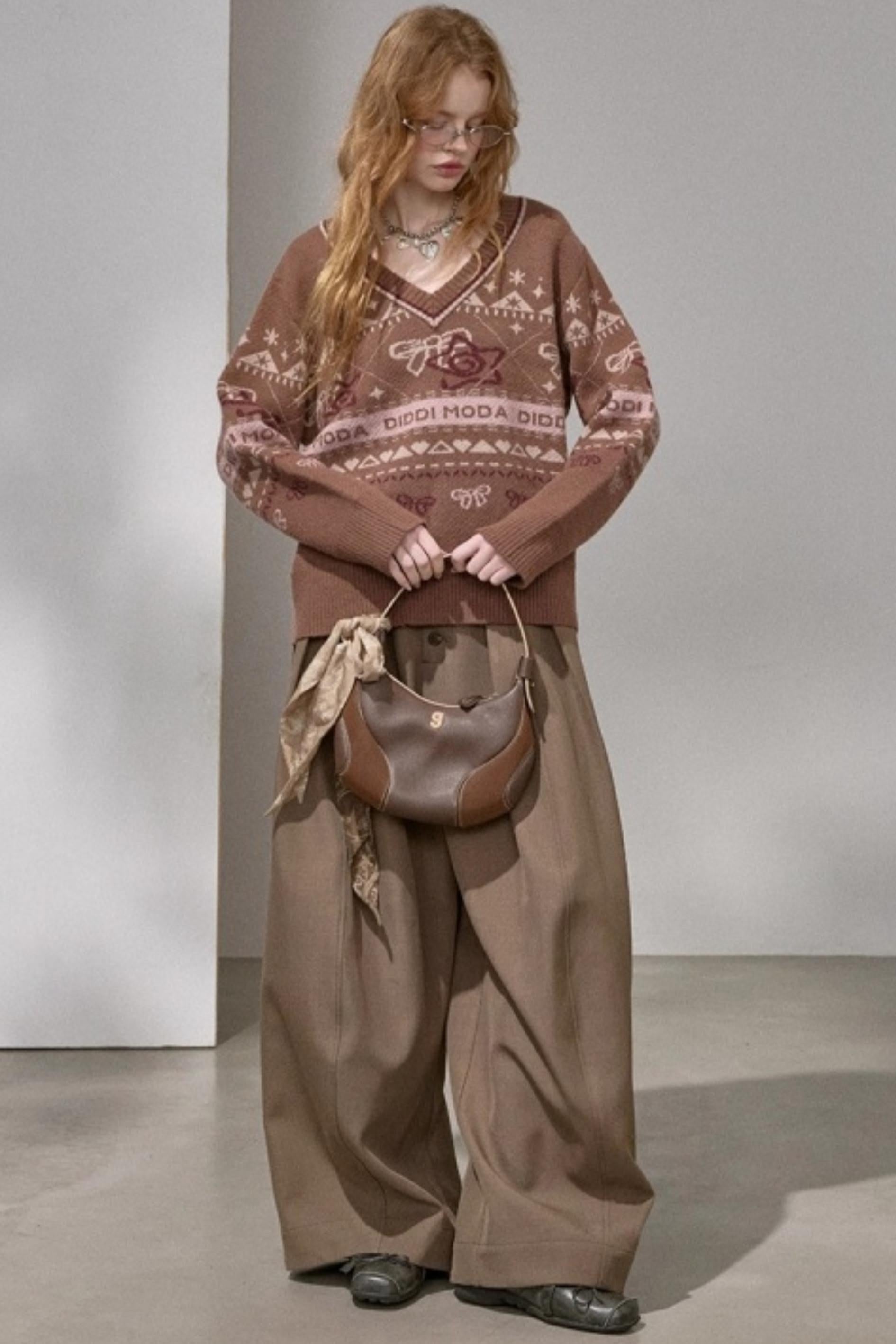 Fair Isle Bow Knit Sweater