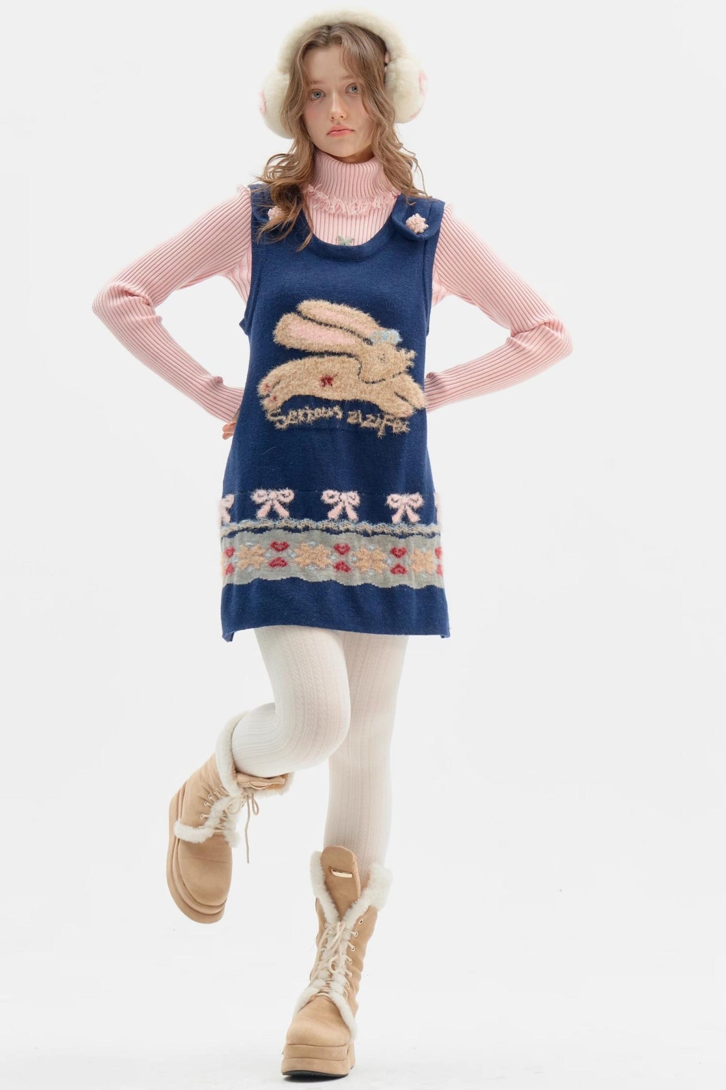 Fair Isle Plush Navy Vest Dress