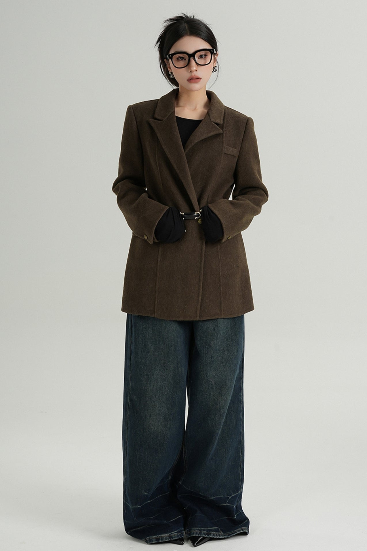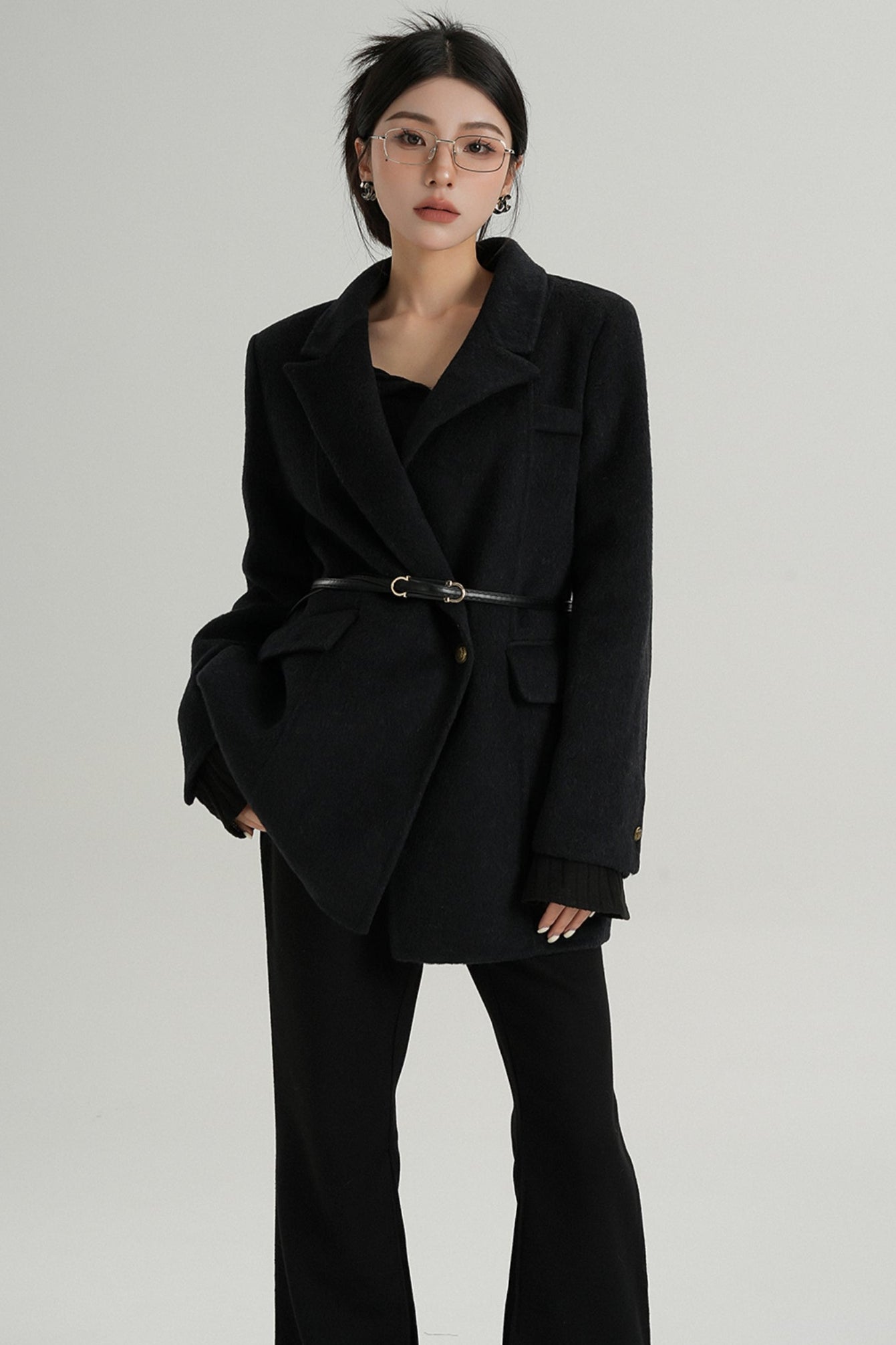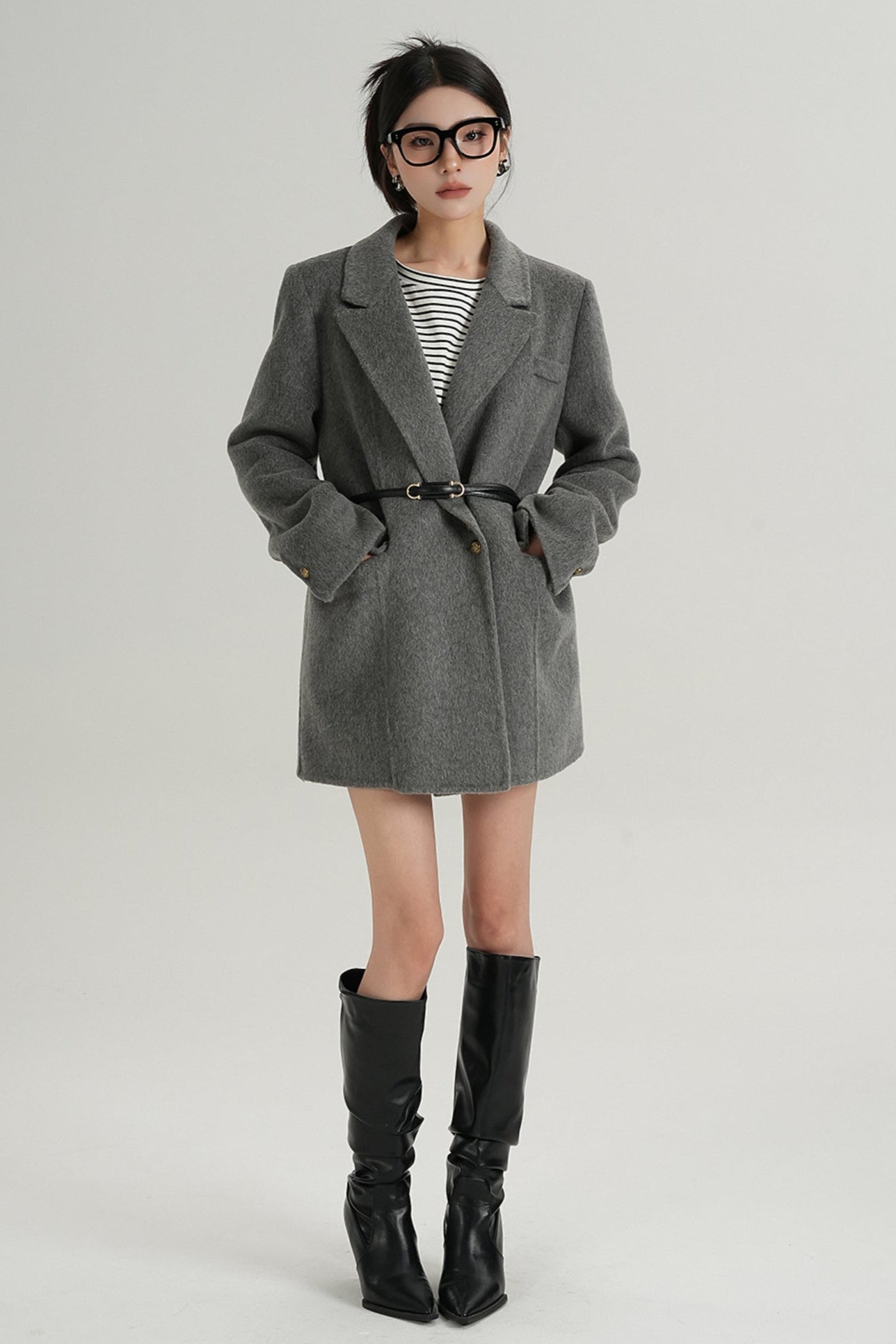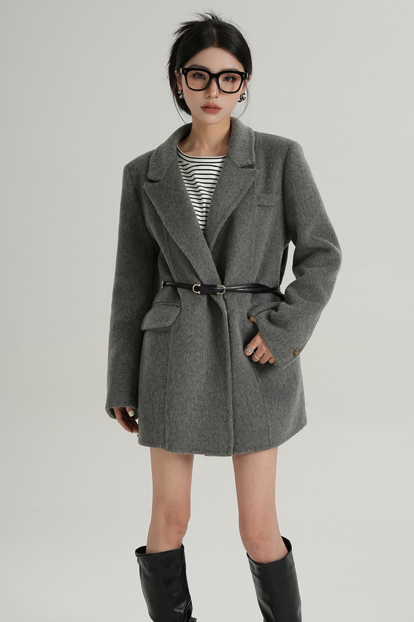 Fashionable Tweed Belted Jacket