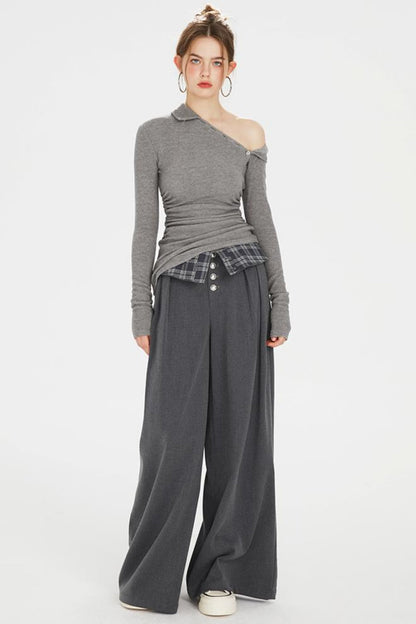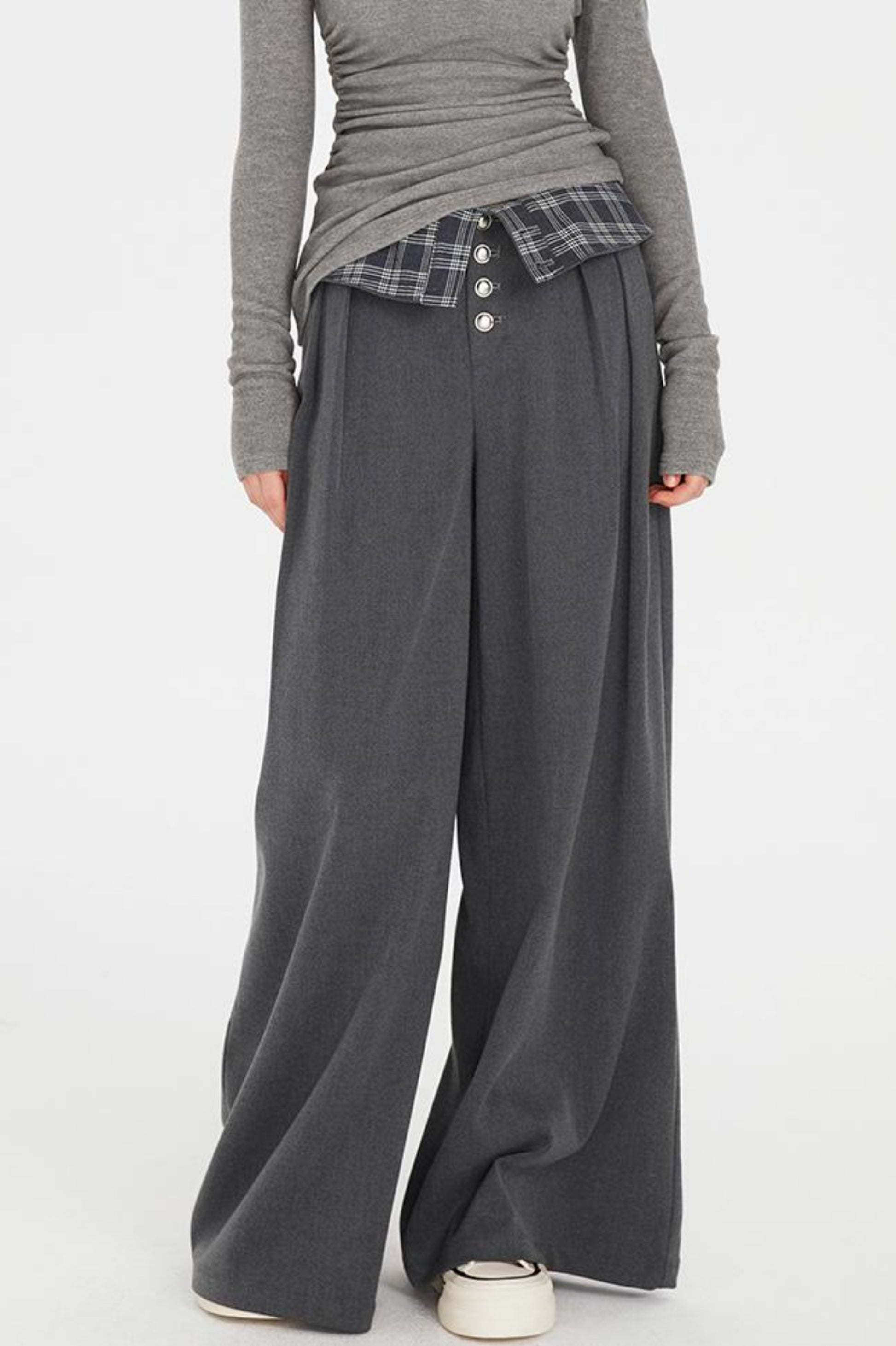 Flap-Waist Wide-Leg Trousers