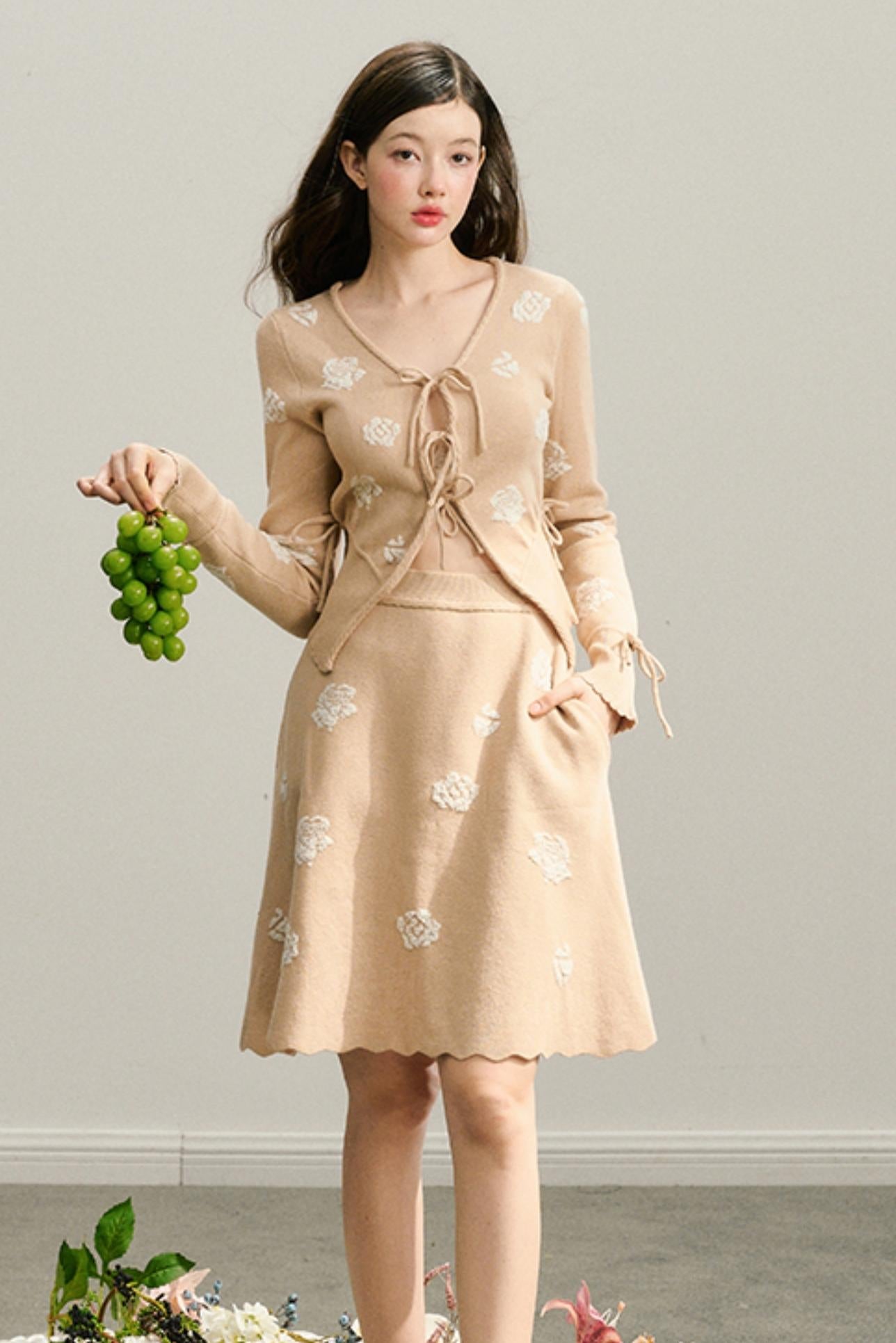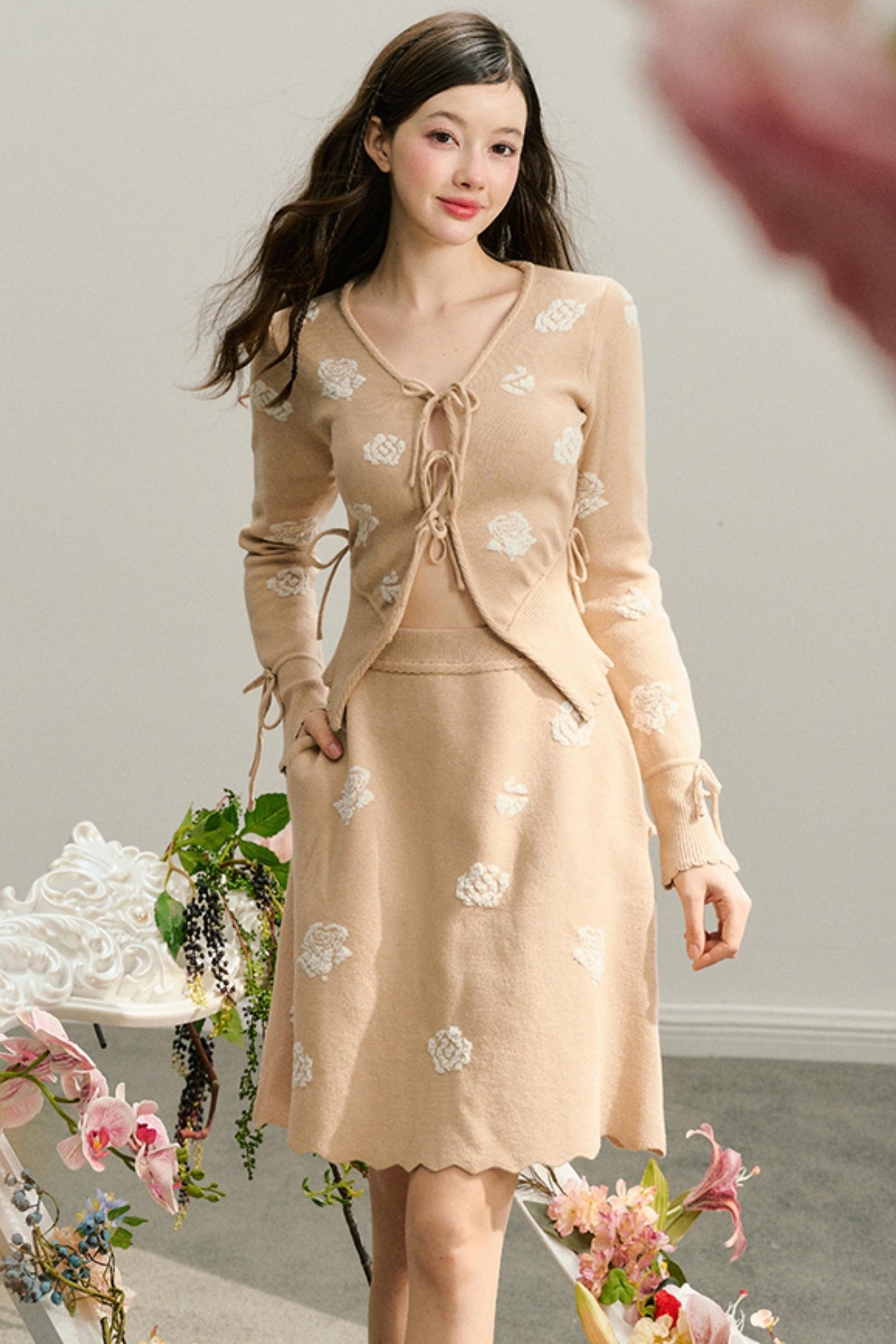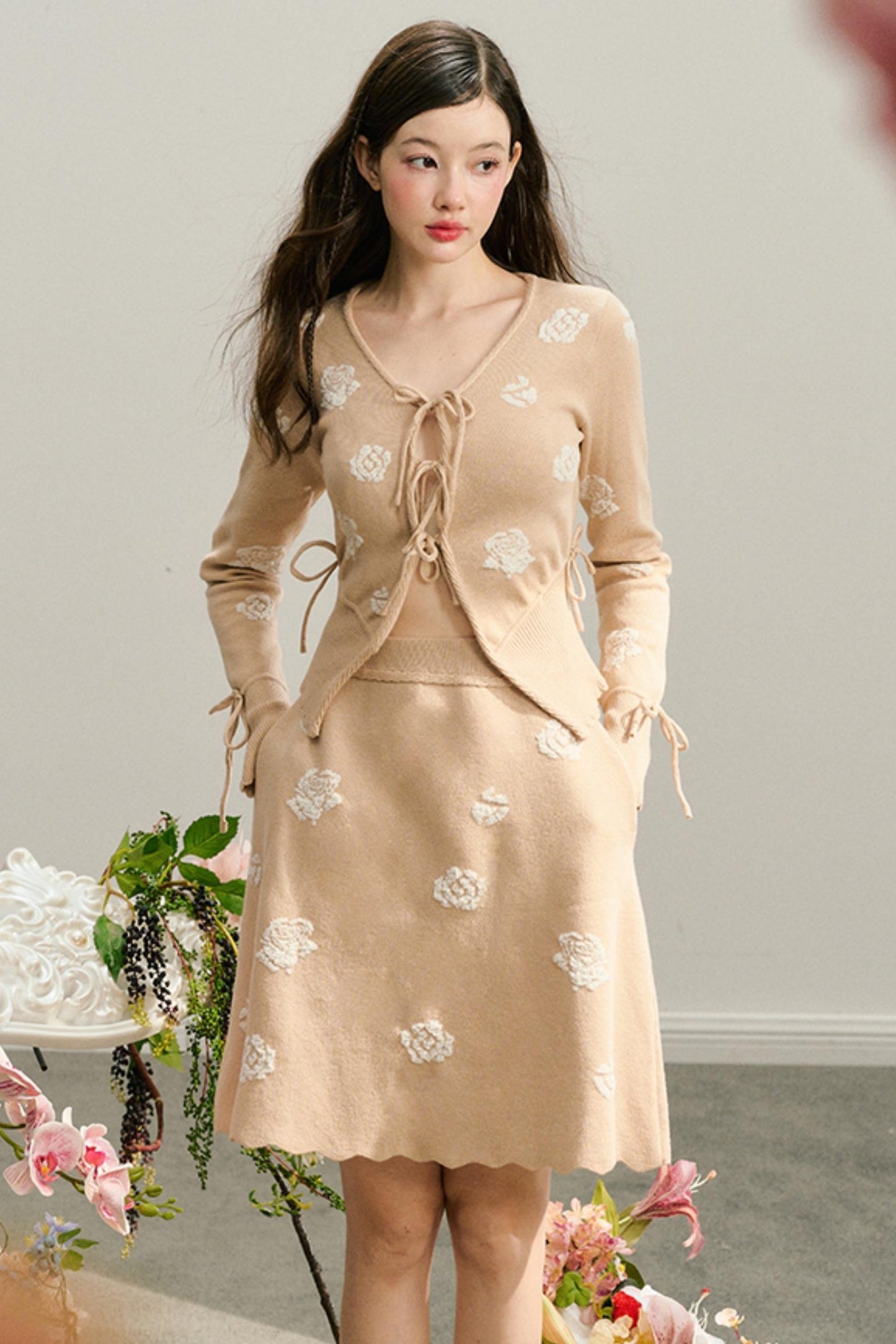 Floating Flowers Jacquard Knit Skirt Set-Up