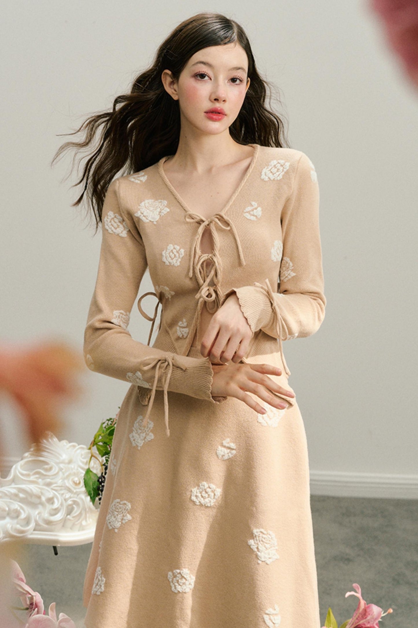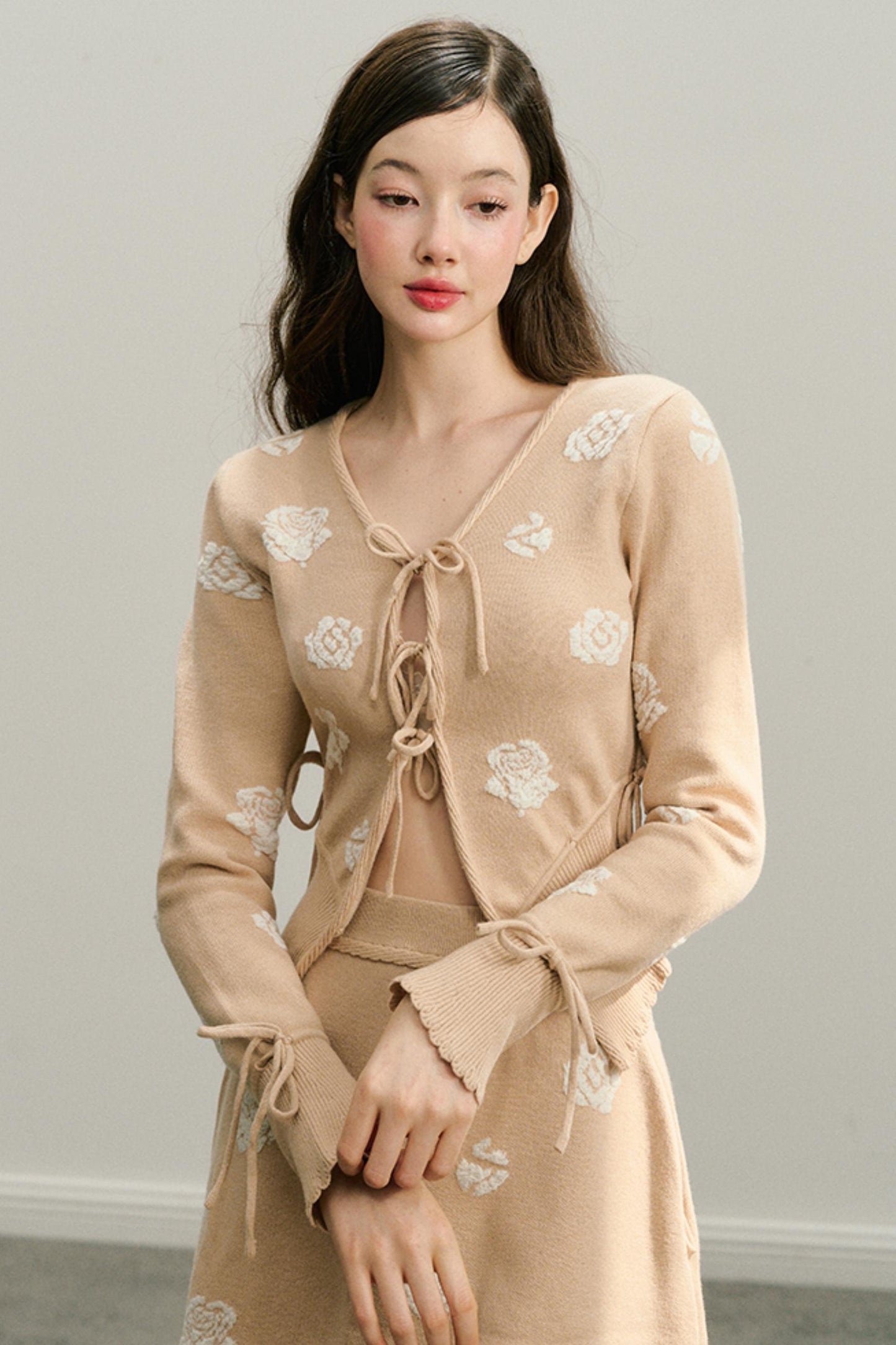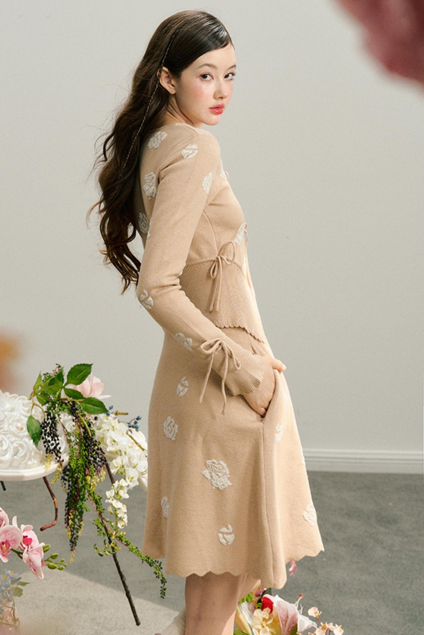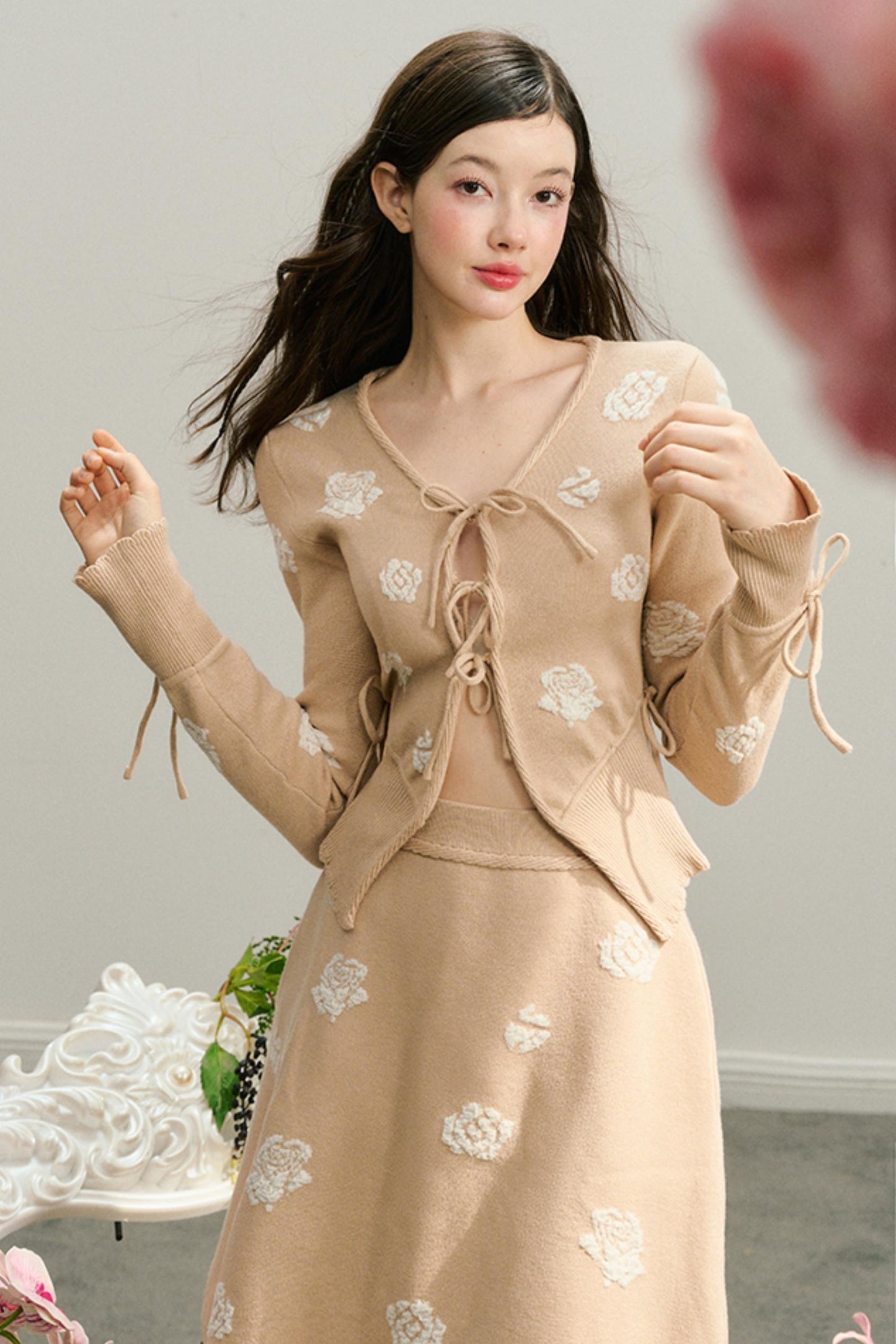 Floating Flowers Jacquard Knit Skirt Set-Up