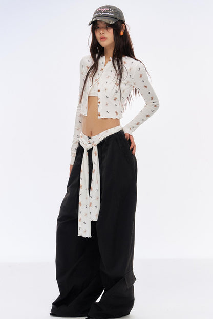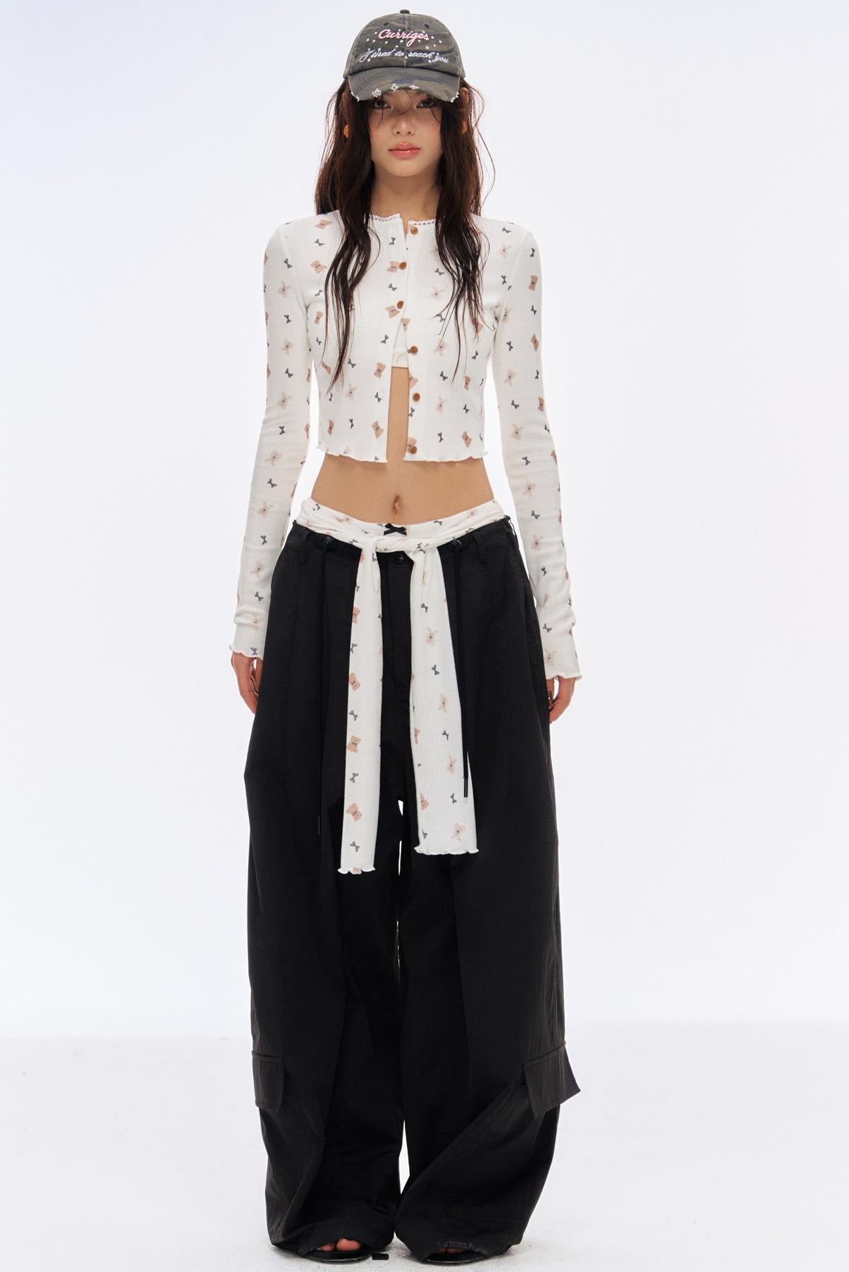 | サイズ | 着丈 (cm/in) | ウエスト (cm/in) | 裾幅 (cm/in) | ヒップ (cm/in) |