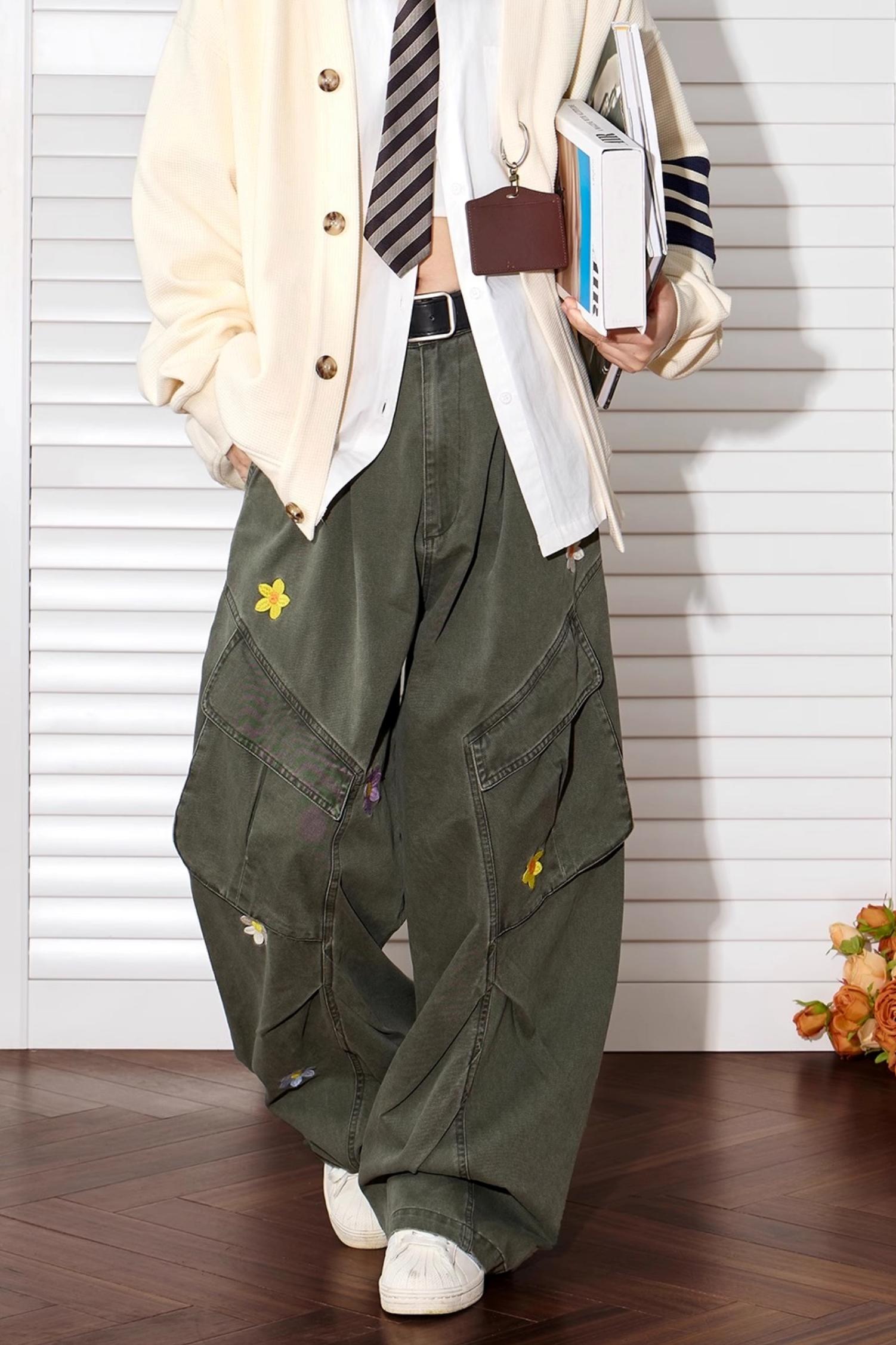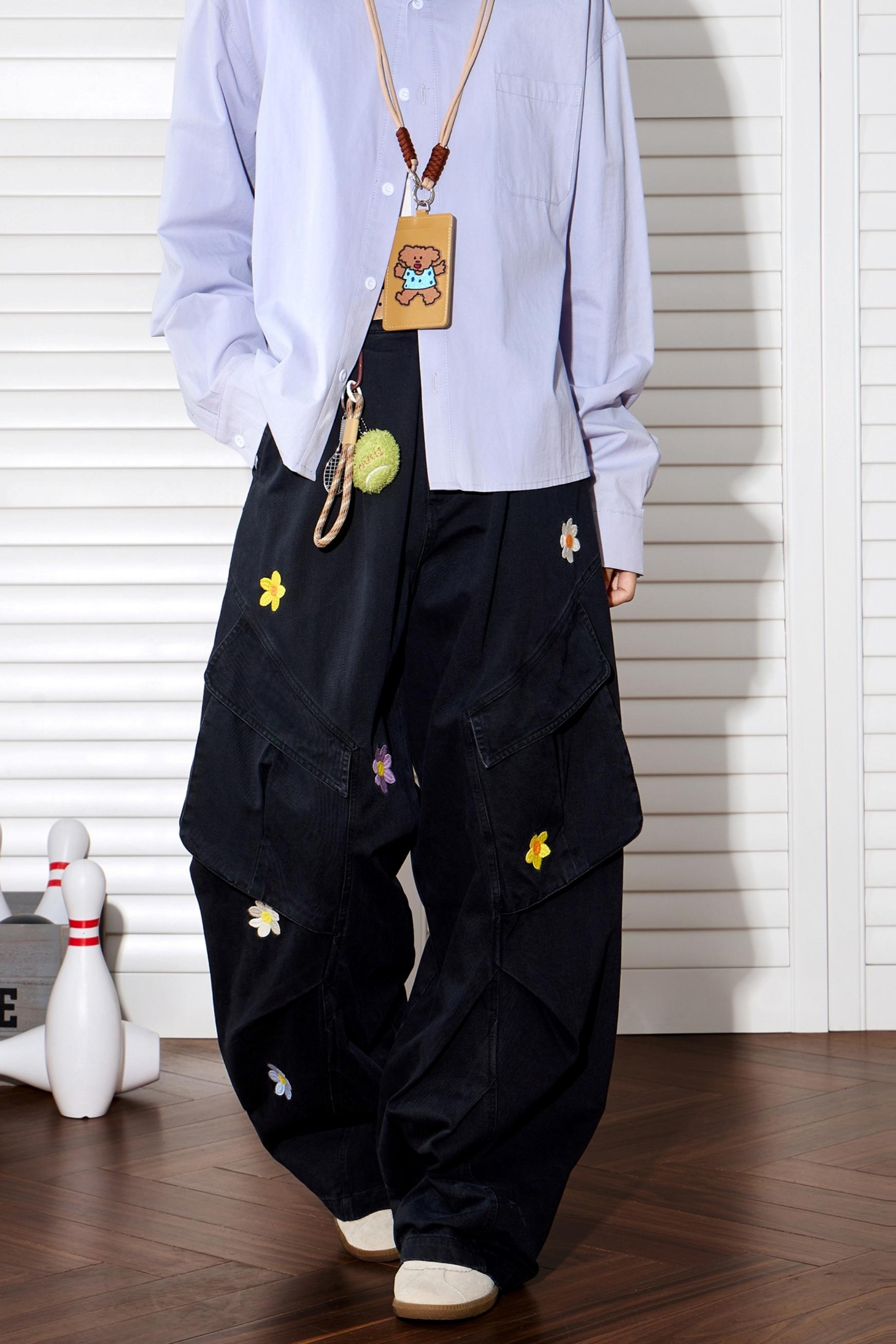 Floral Embroidered Wide-Leg Pants