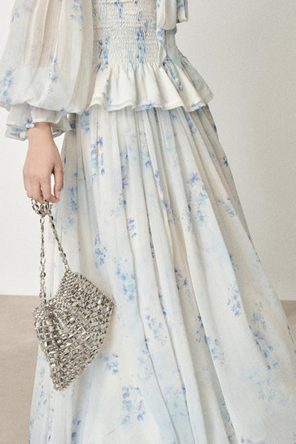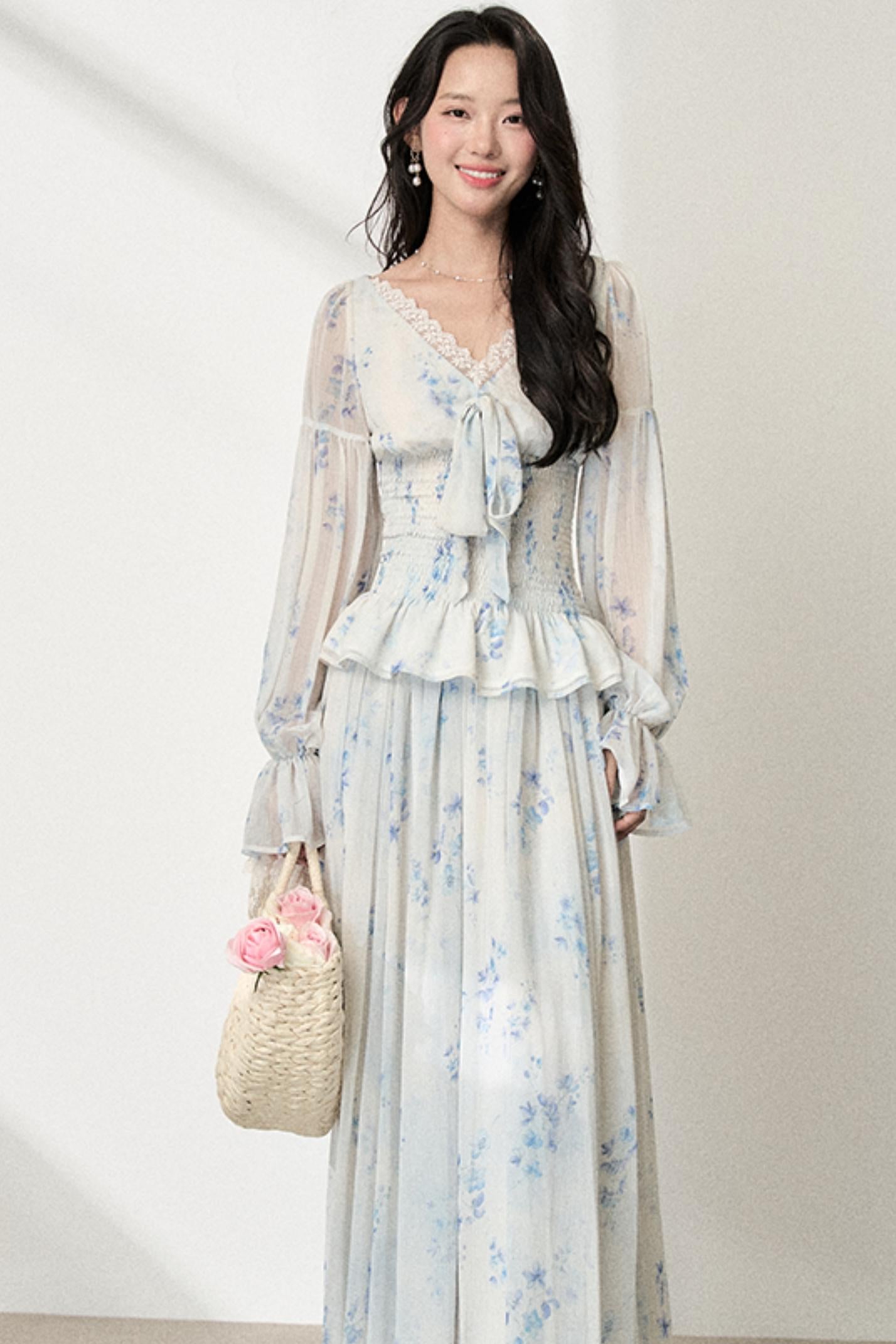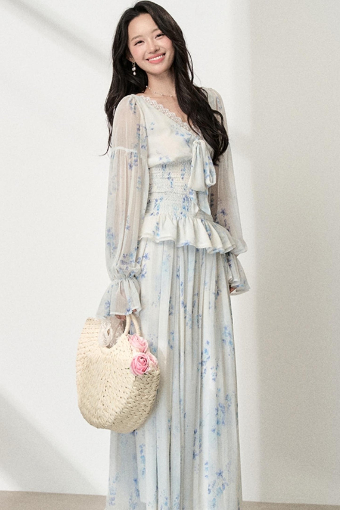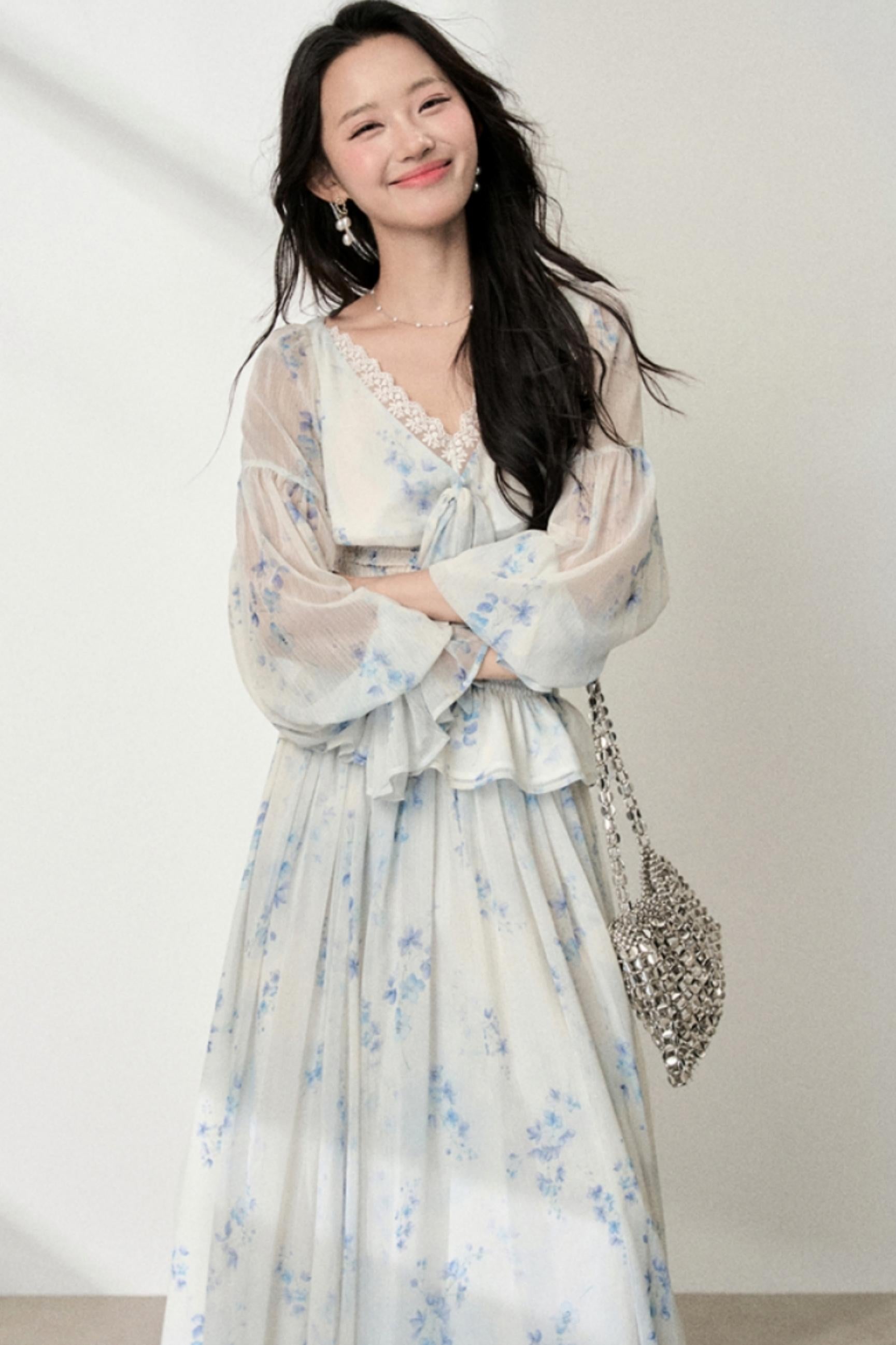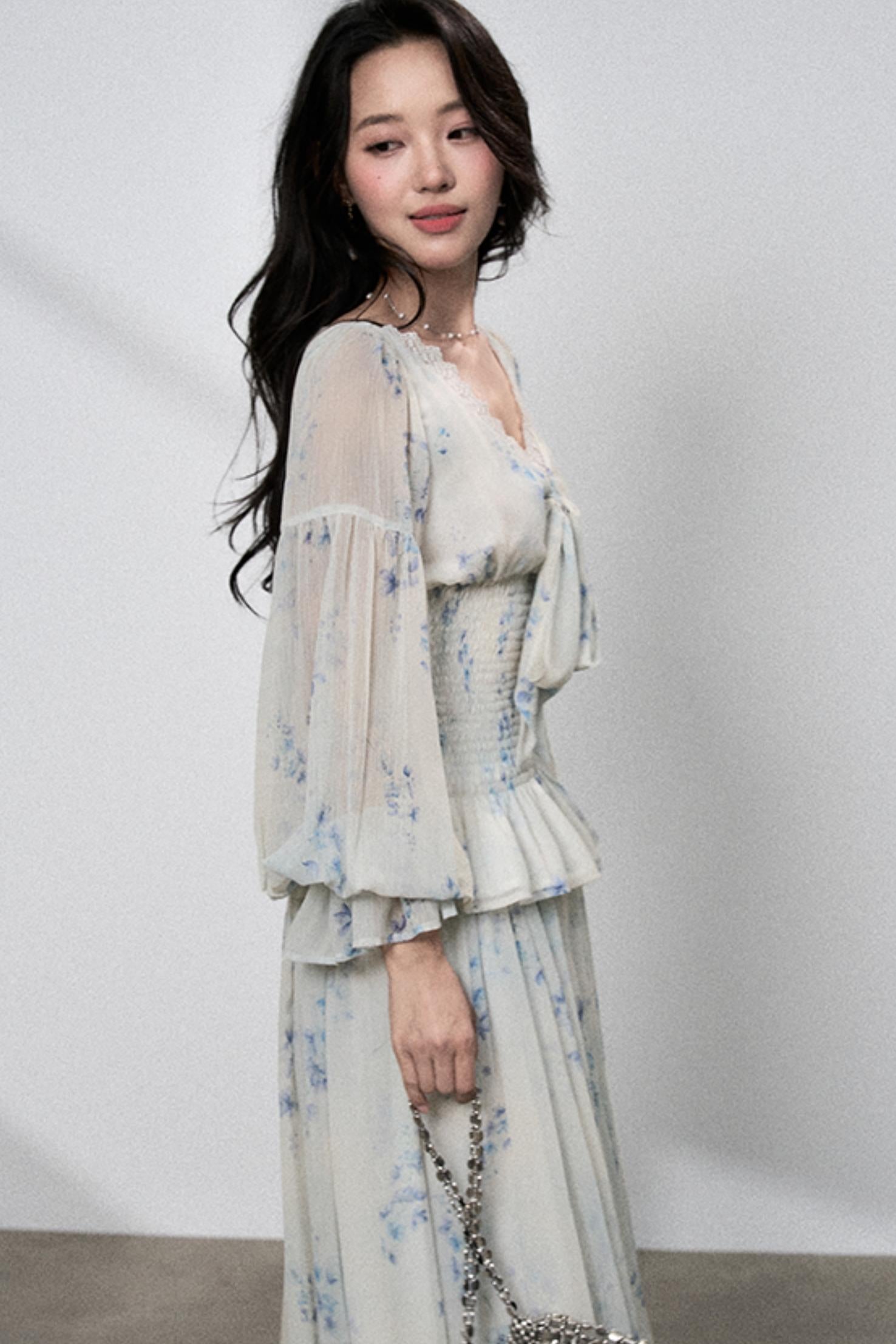 Floral V-Neck Shirt Skirt Set-Up