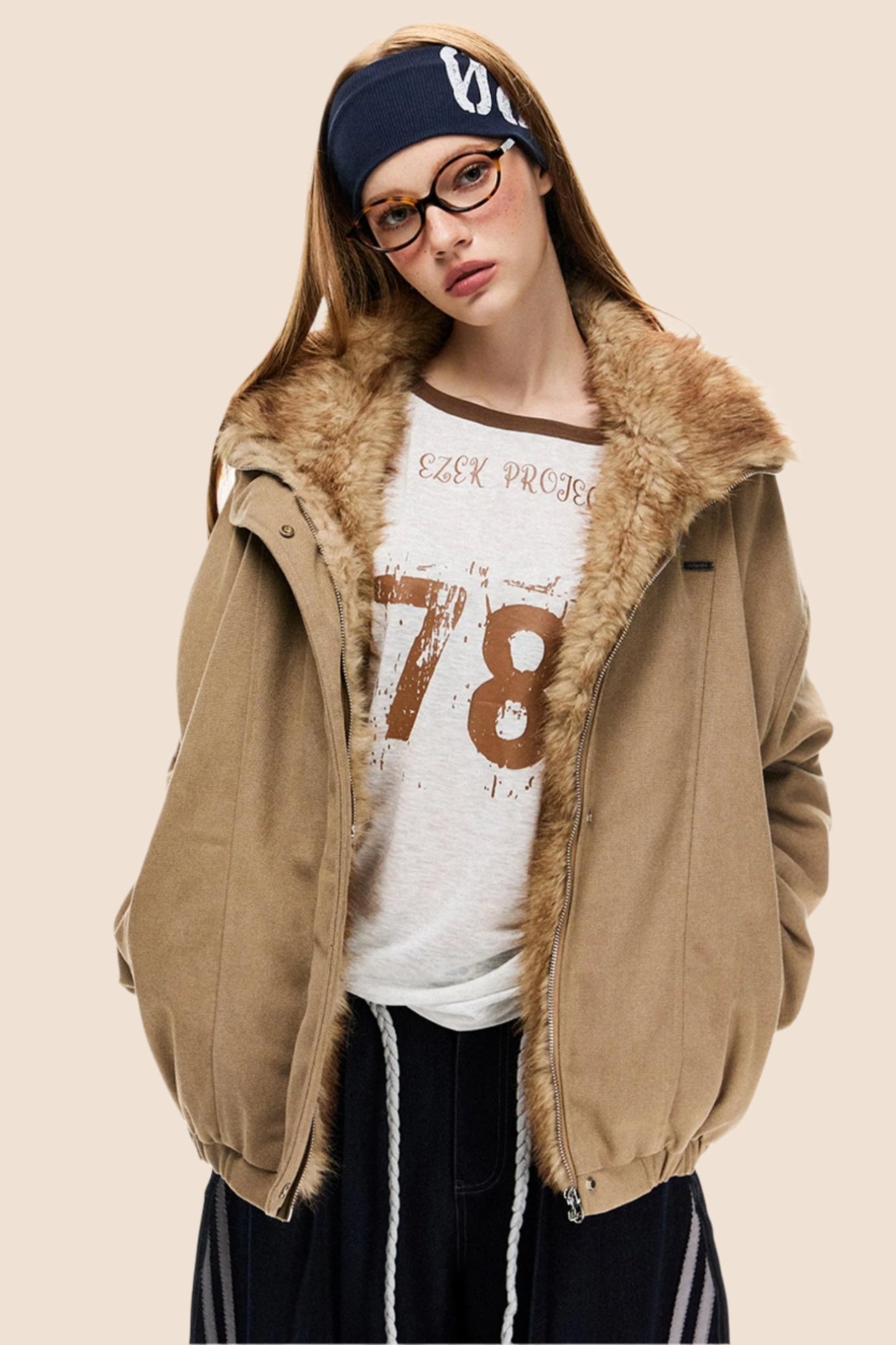 Fur Collar Retro Bomber Jacket