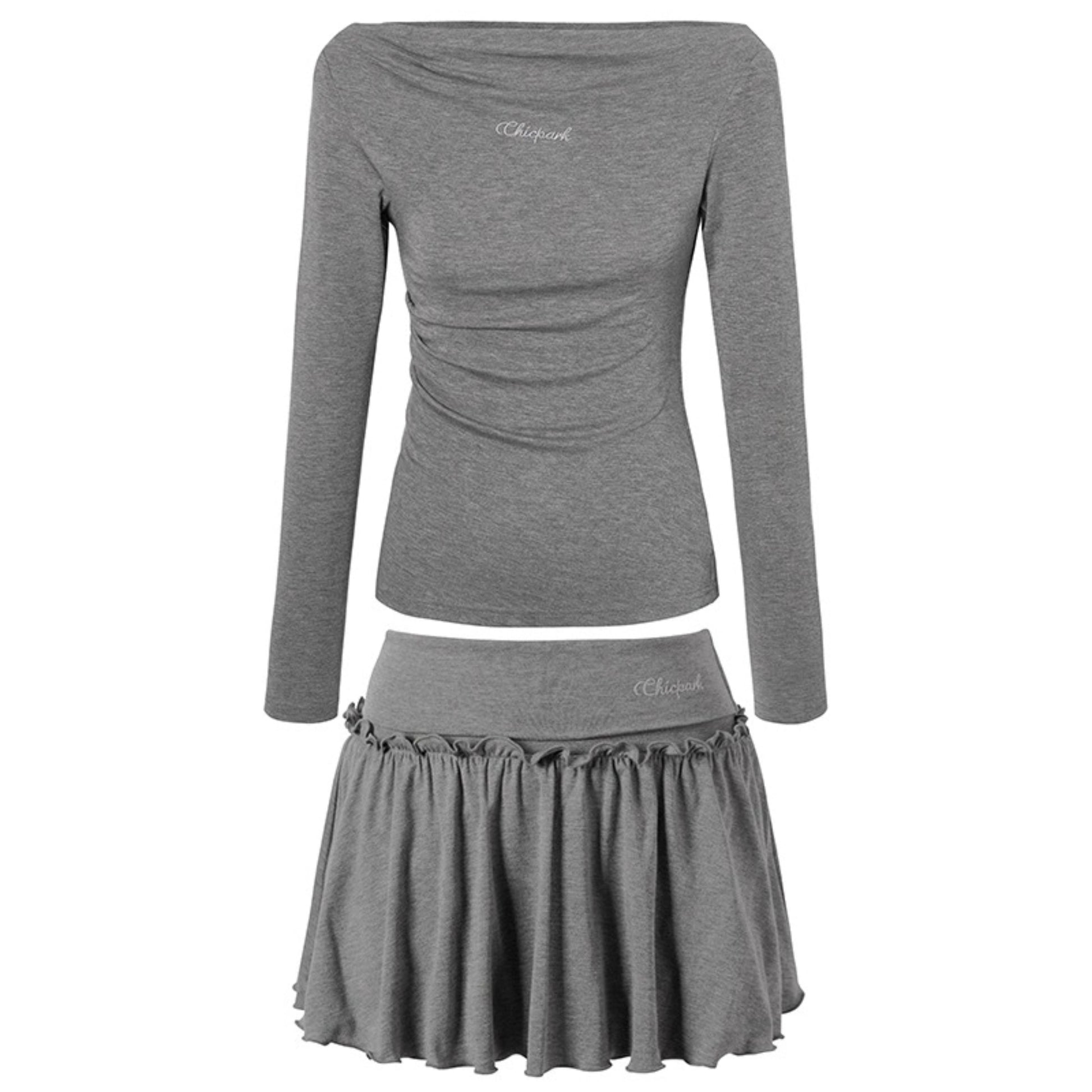Gentle Embroidered One-Shoulder Top Skirt Set