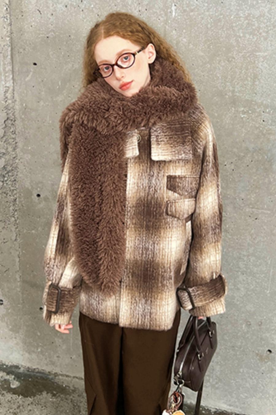 Gradient Plaid Woolen Jacket