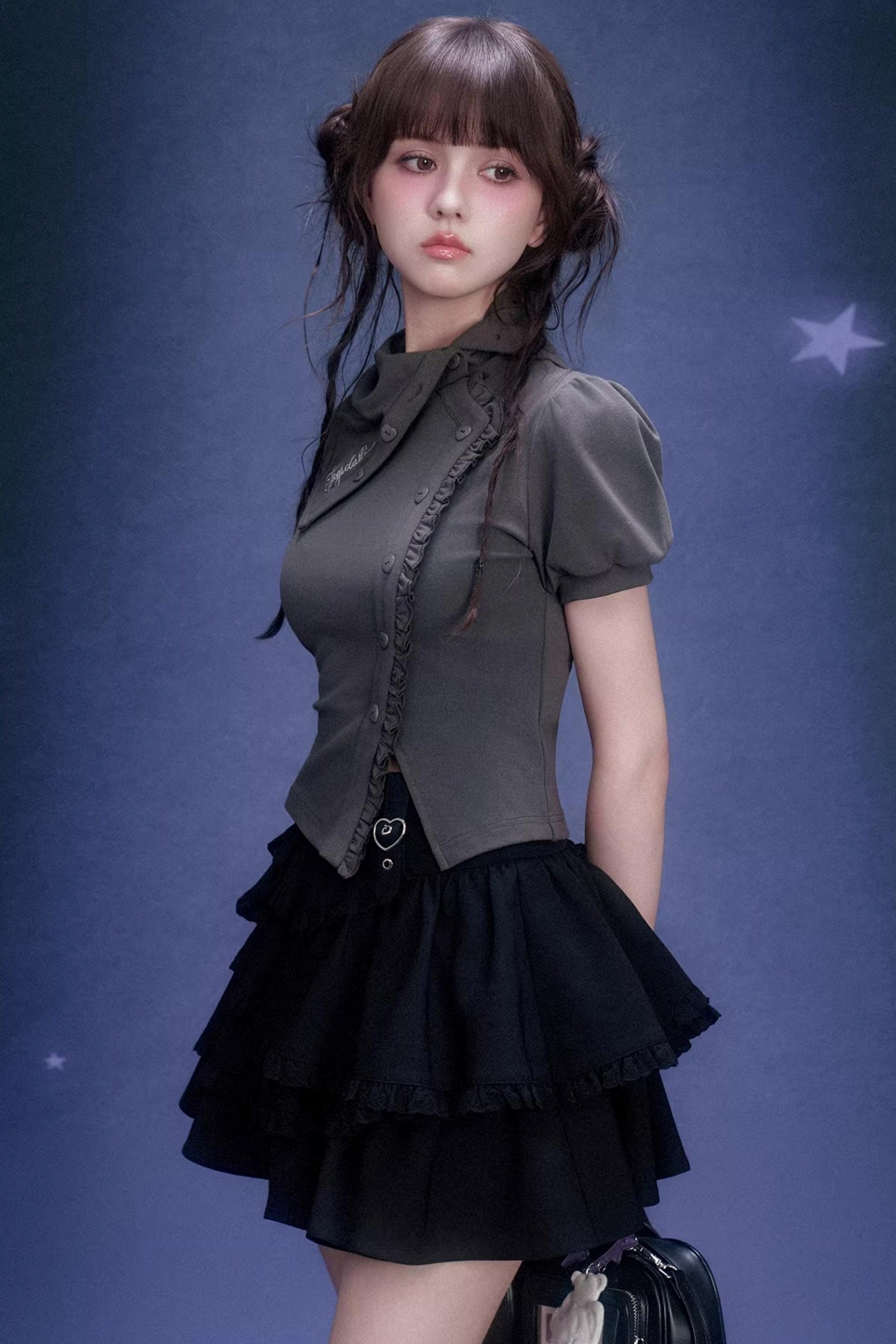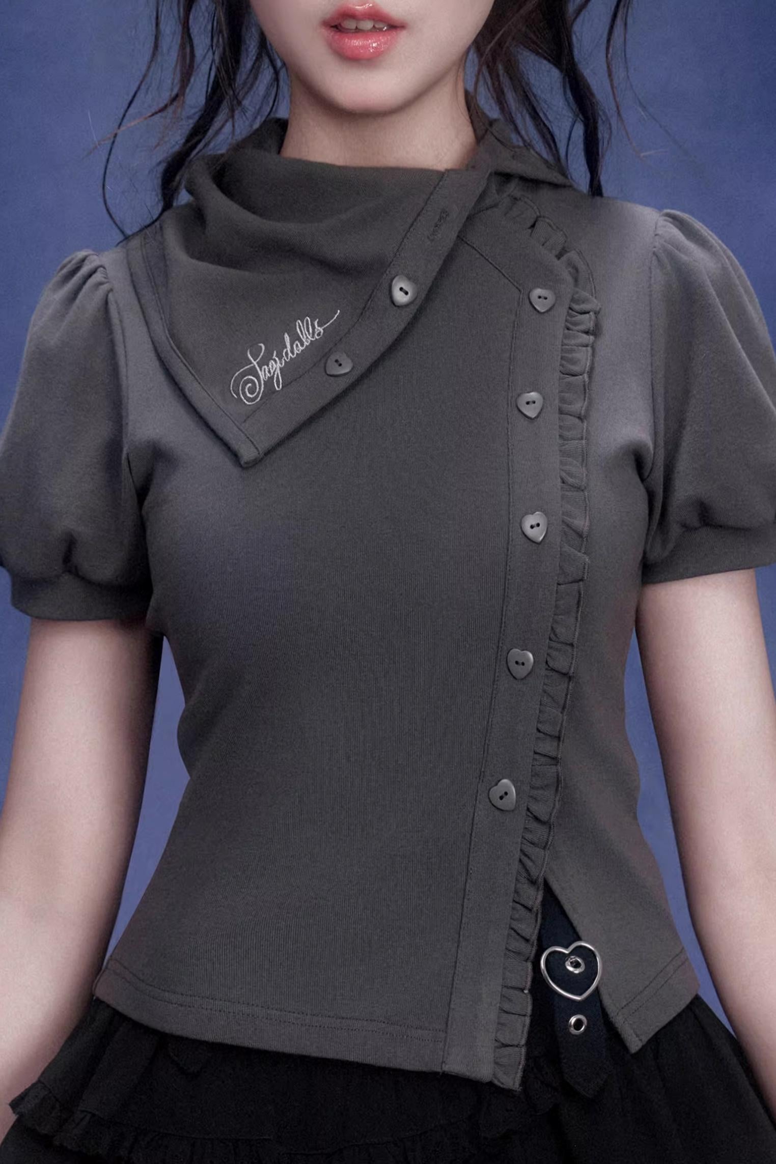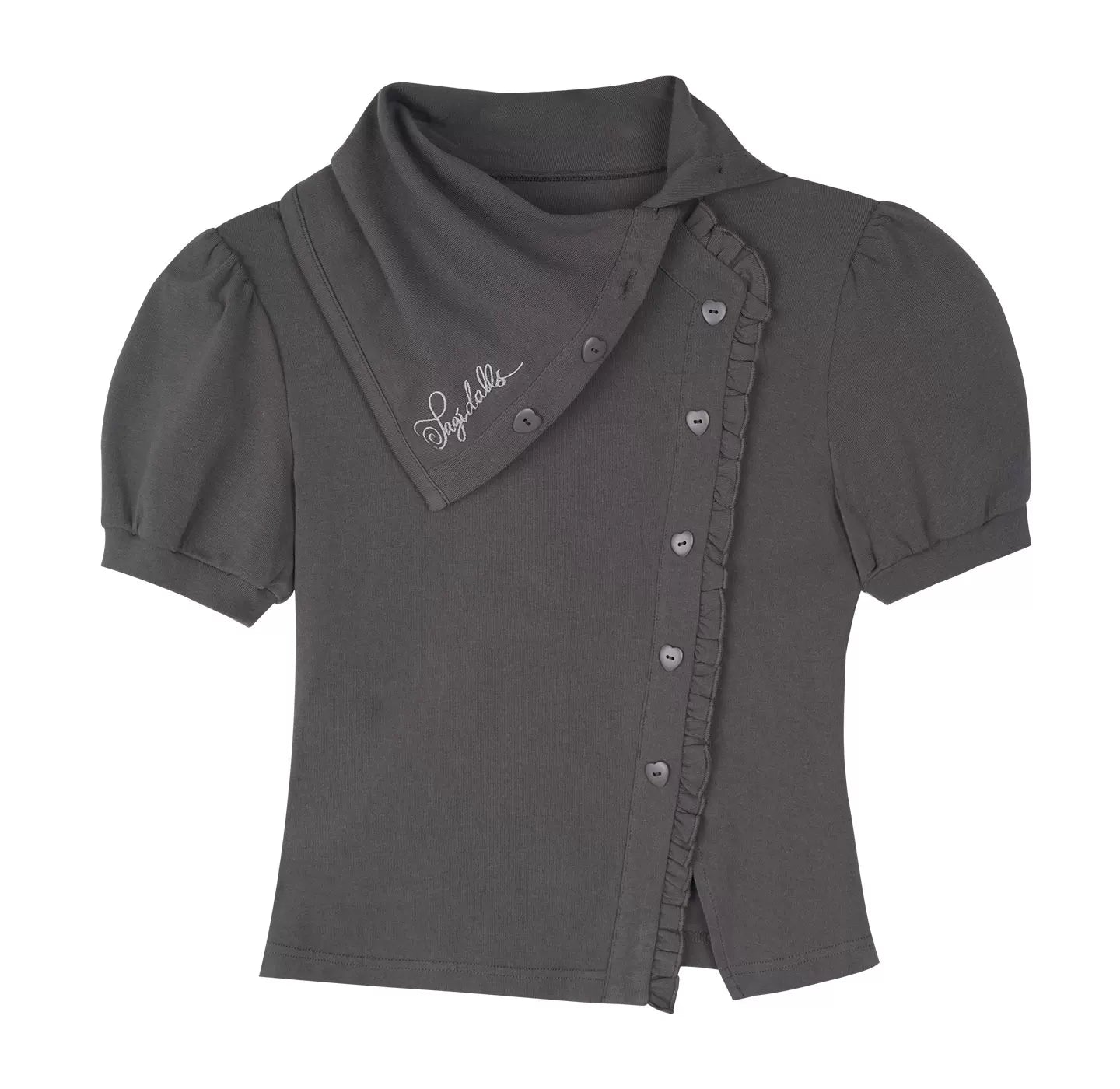Gray Diagonal Placket T-Shirt