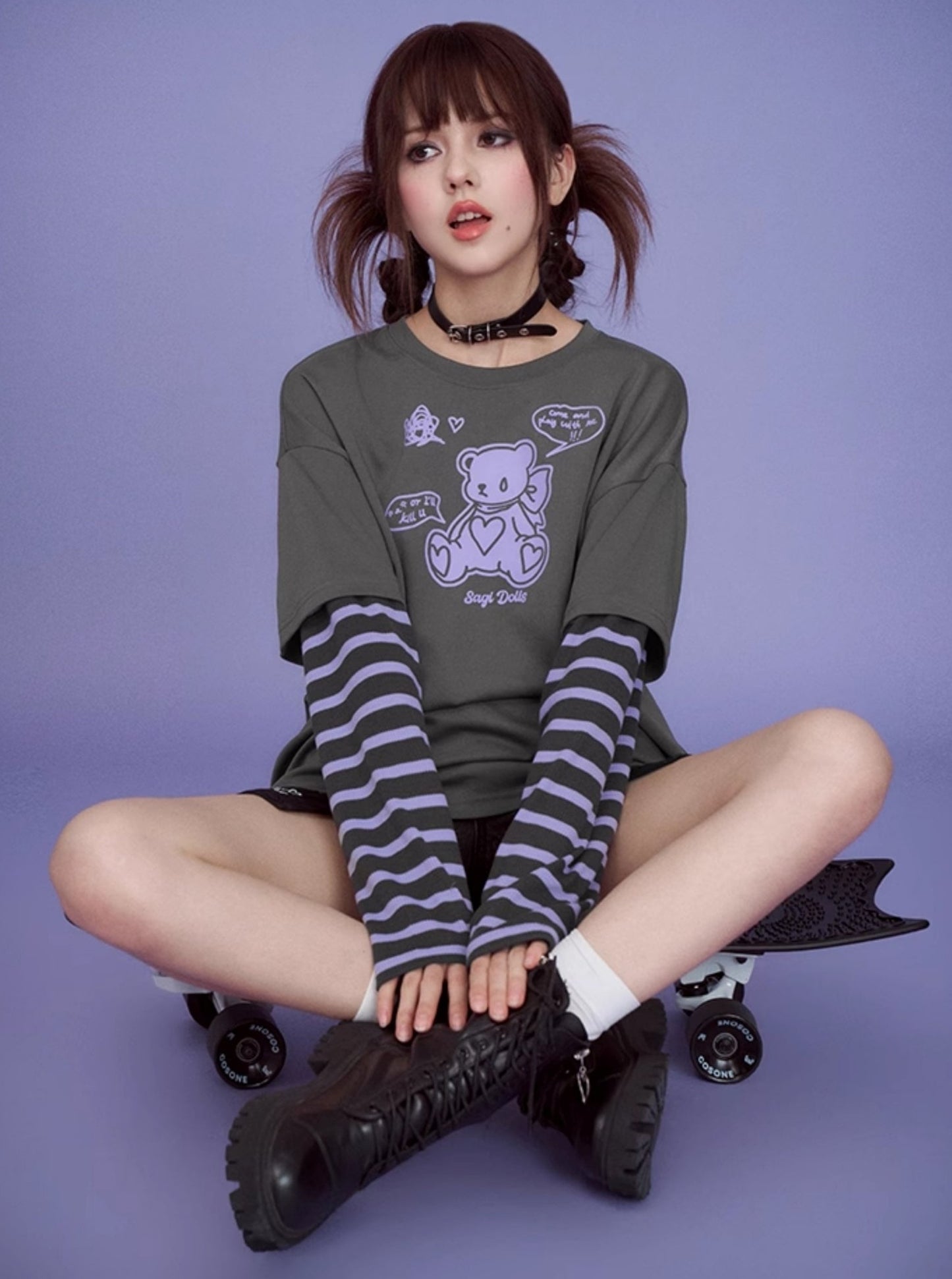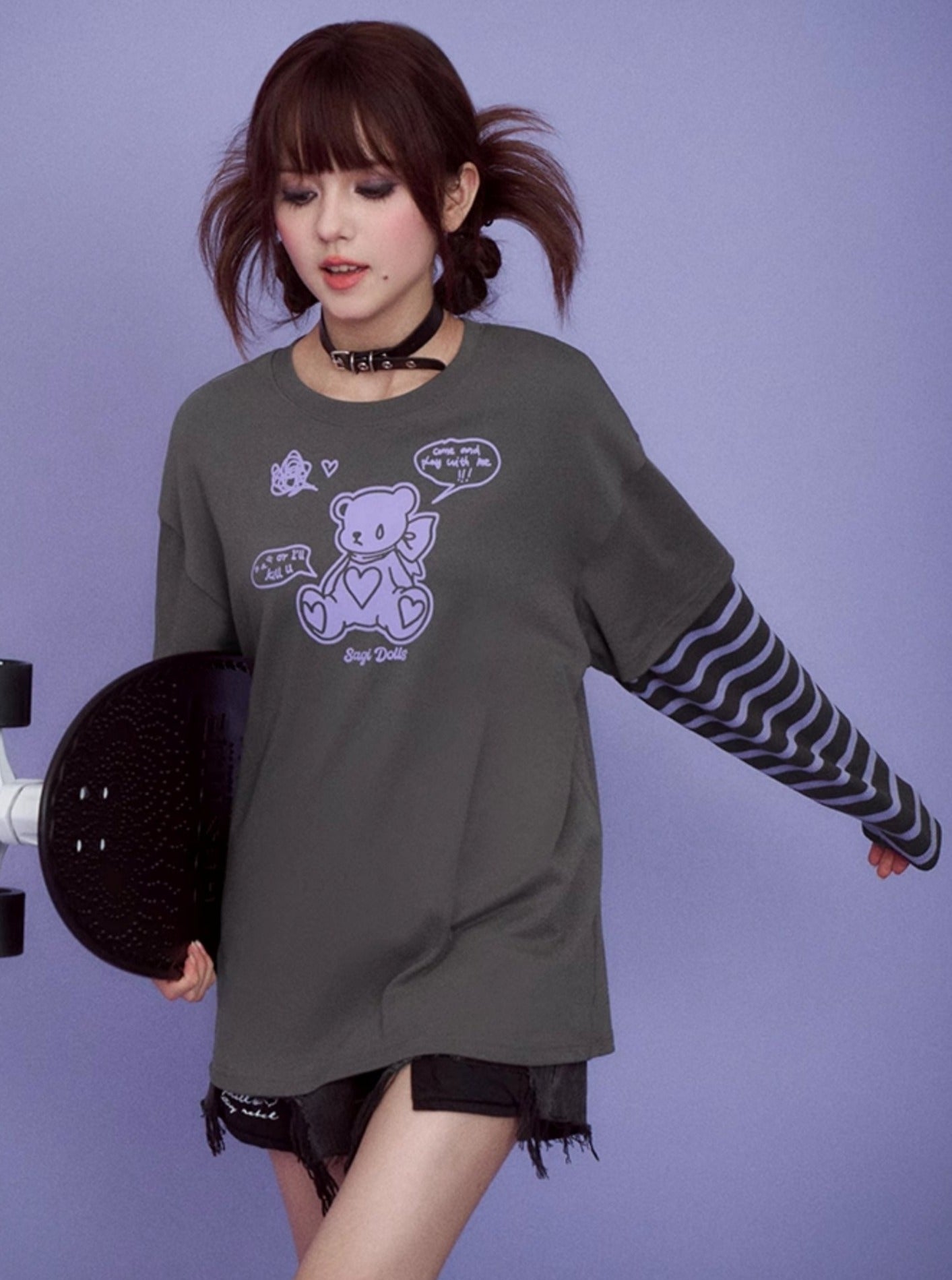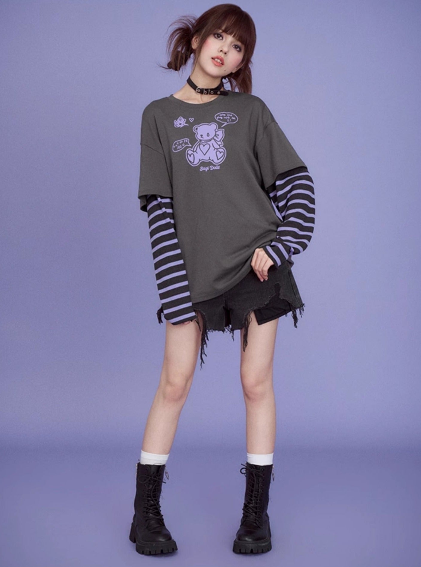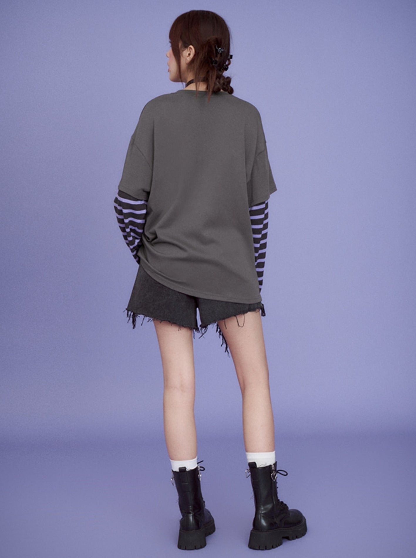 Gray Purple Super Long Sleeve T-shirts