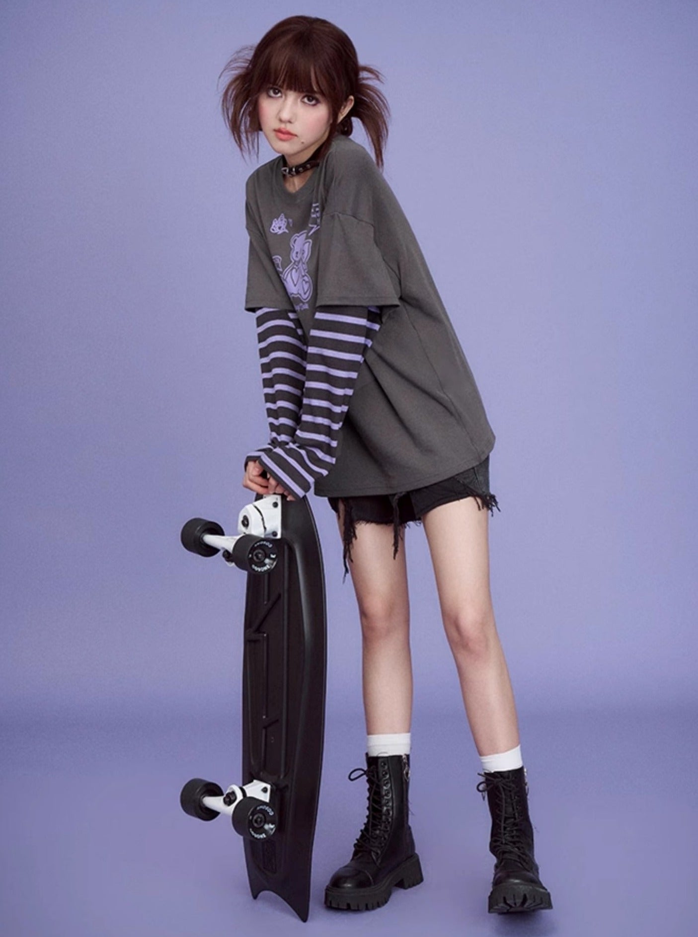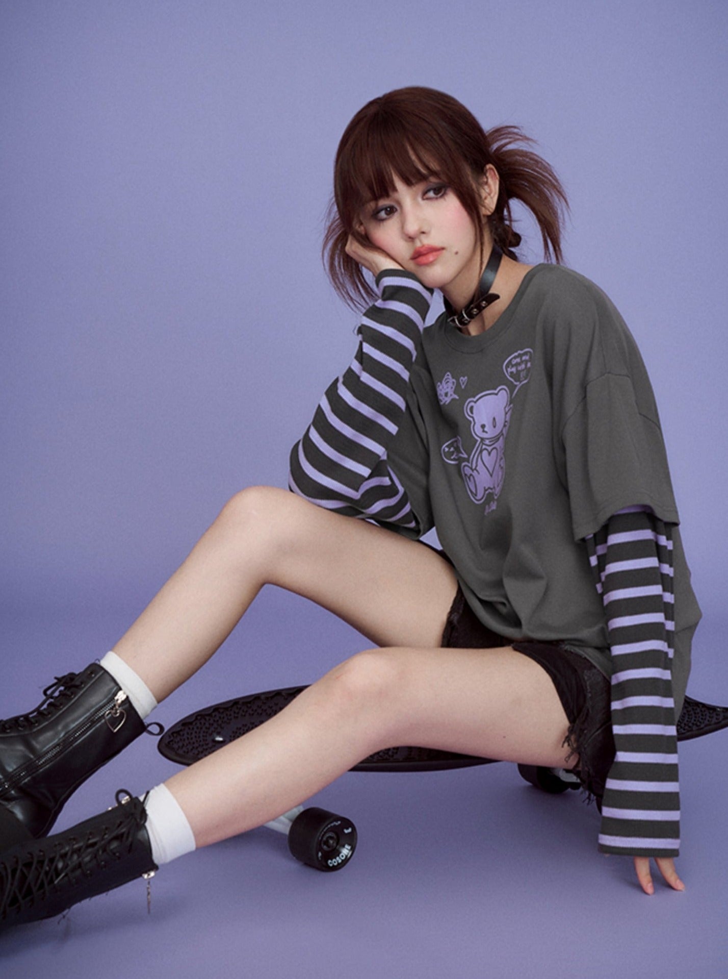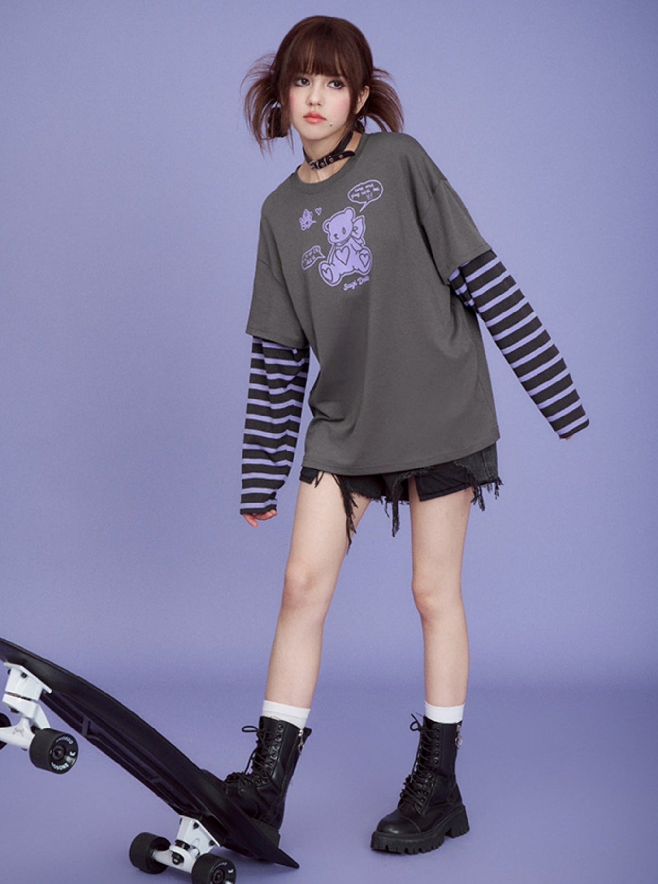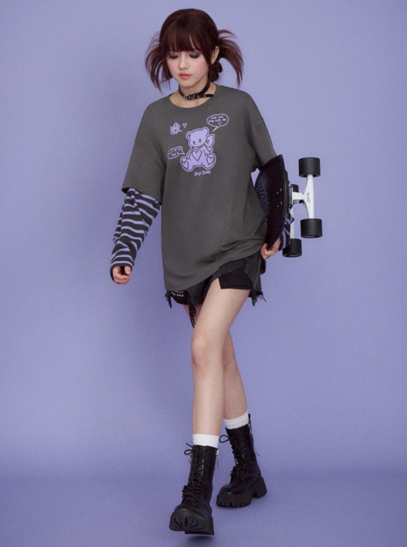 Gray Purple Super Long Sleeve T-shirts