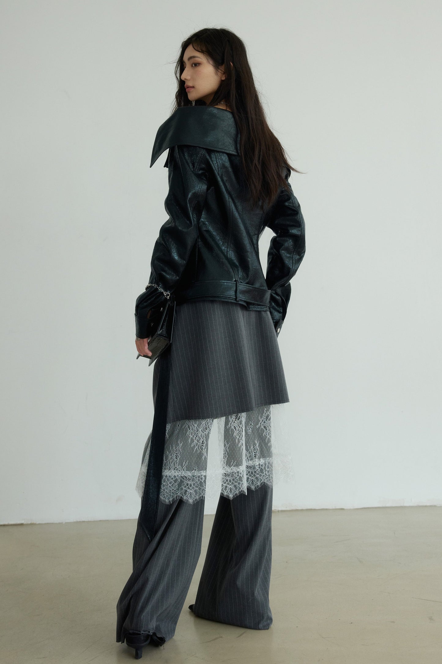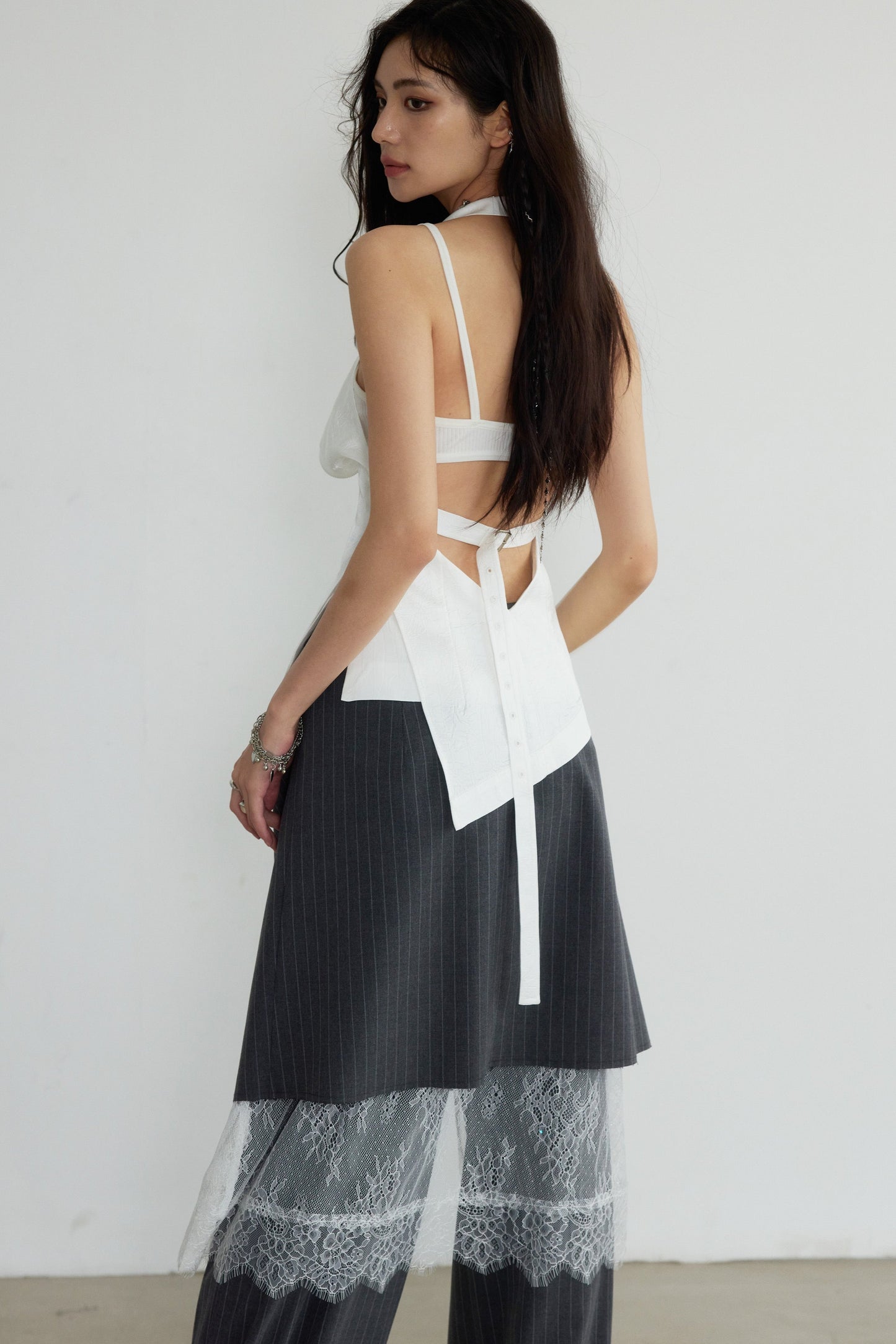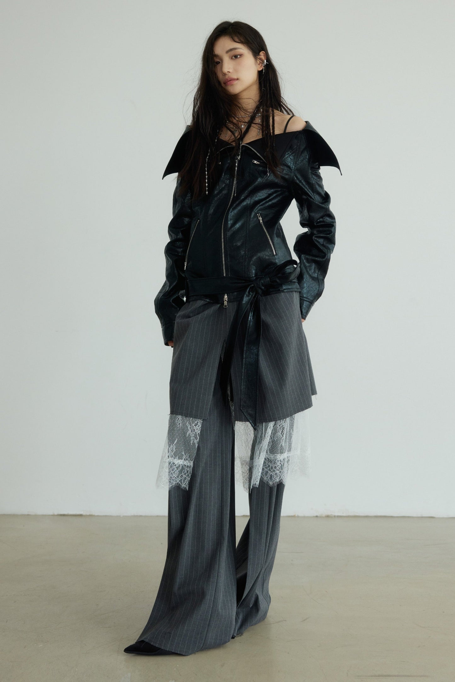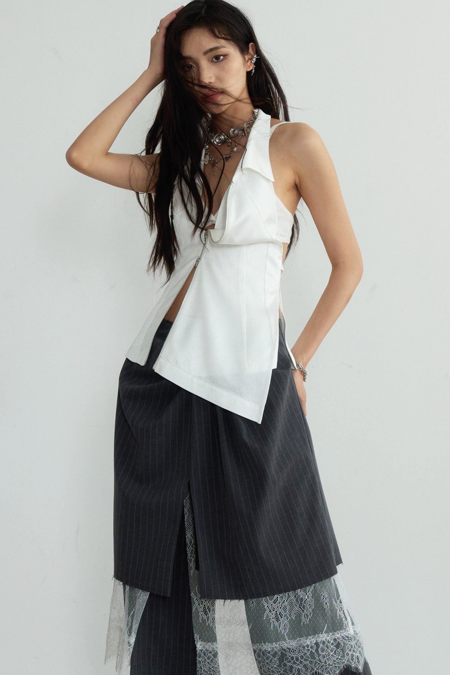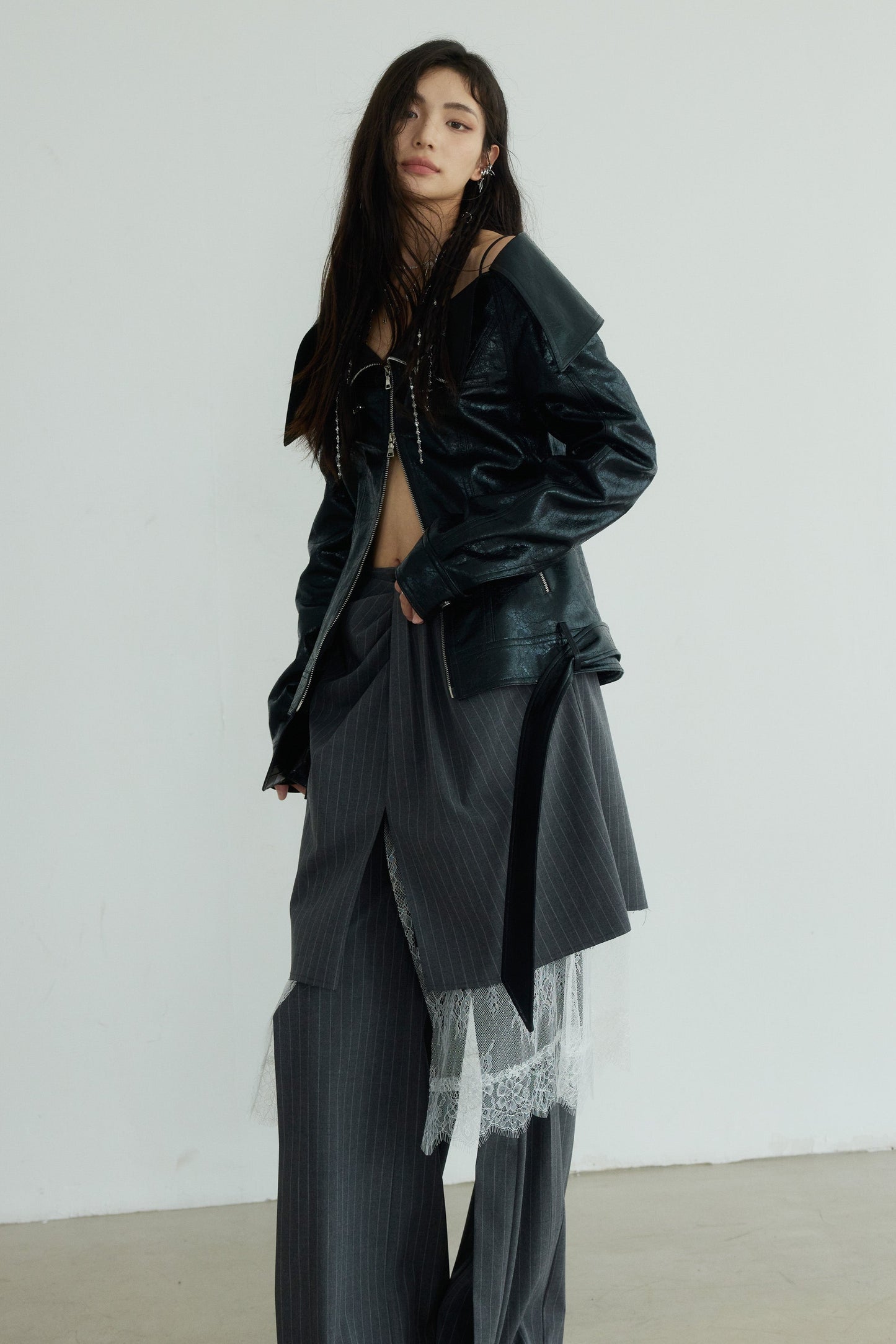 Gray Striped Sculptural Three-Piece Skirt Trousers