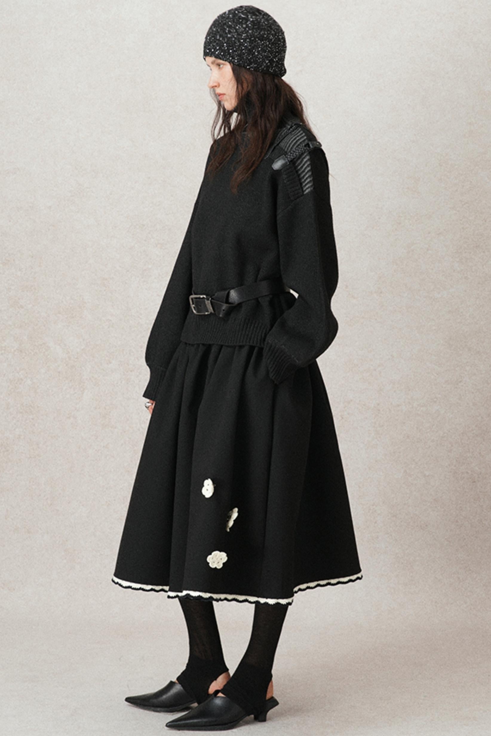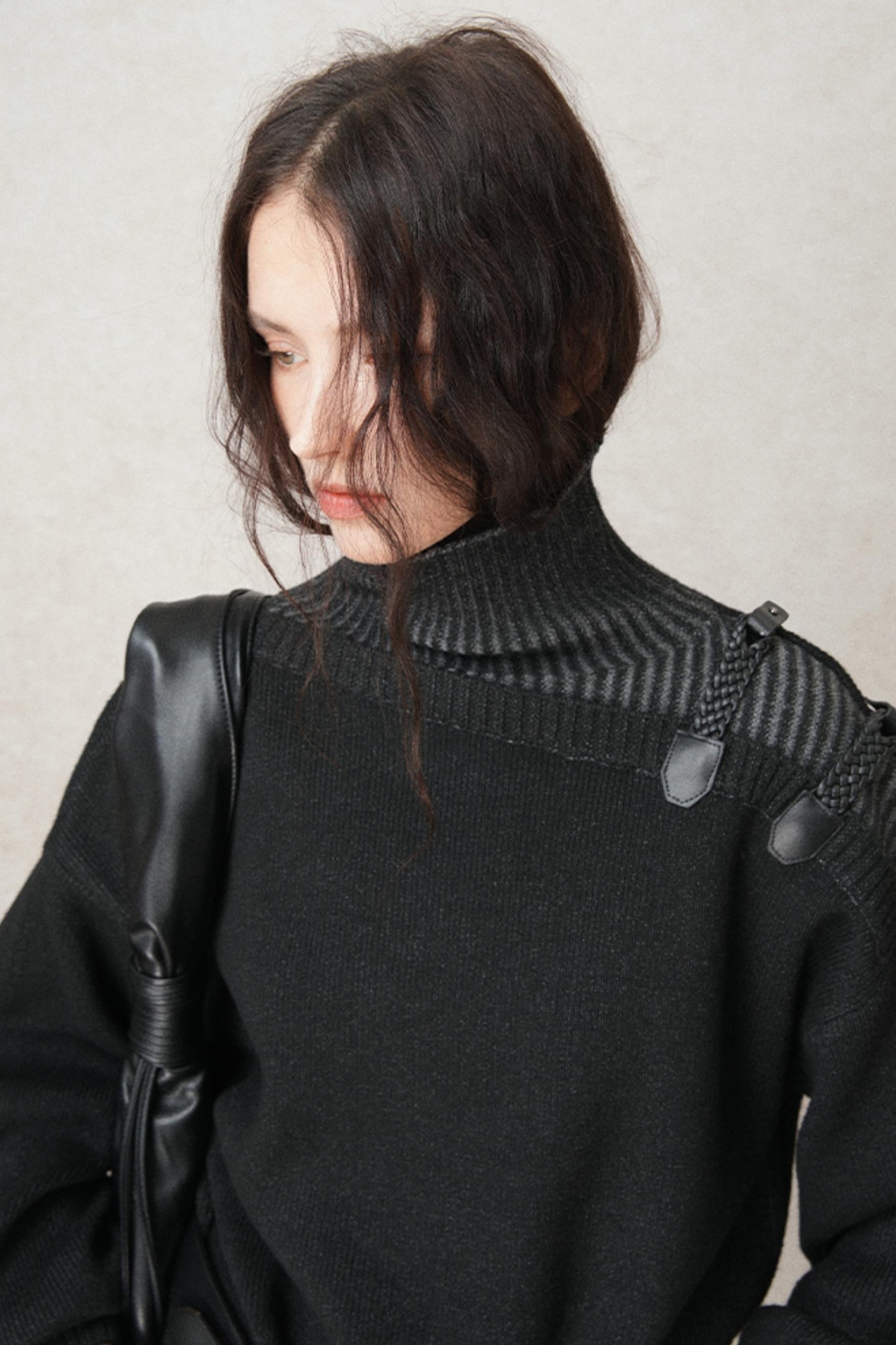 Hand-Woven Leather Loop Sweater