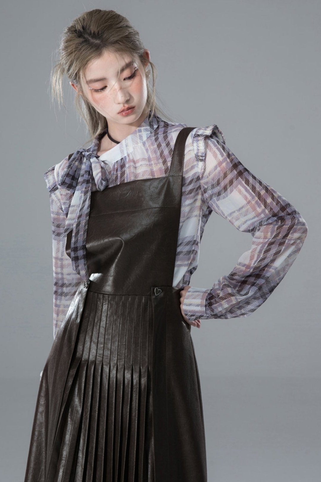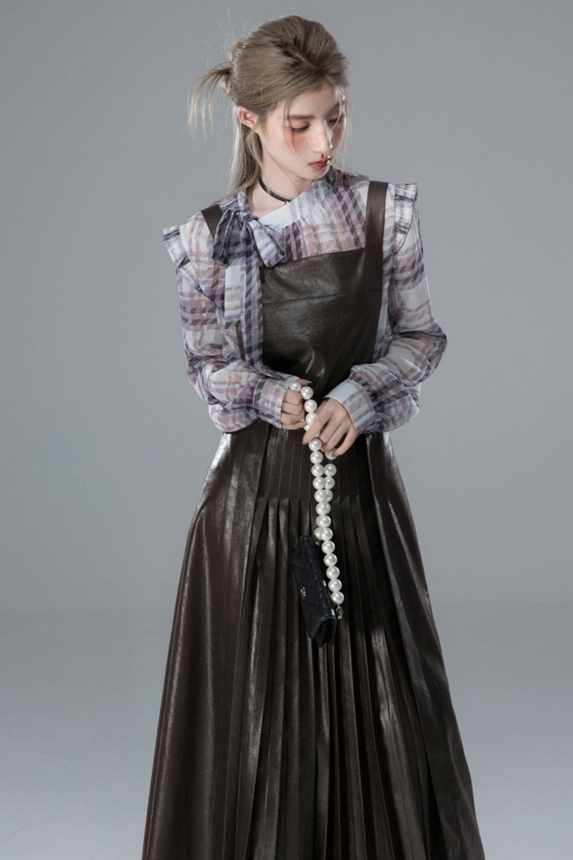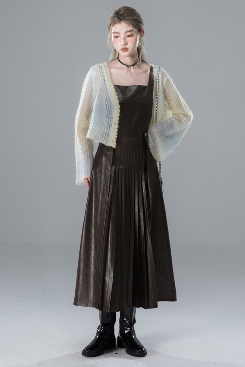 Hazelnut Deep Coffee Pleated Slip Dress