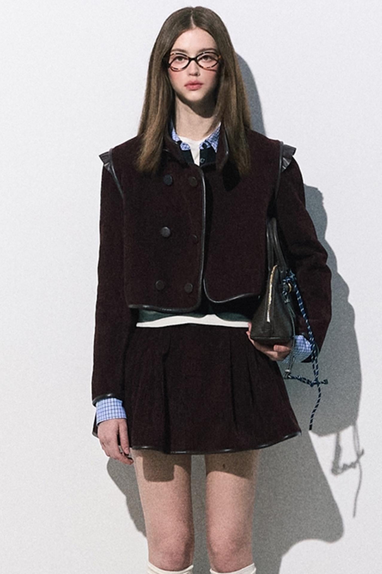 Heavy Velvet Short Jacket And Skirt Set-Up