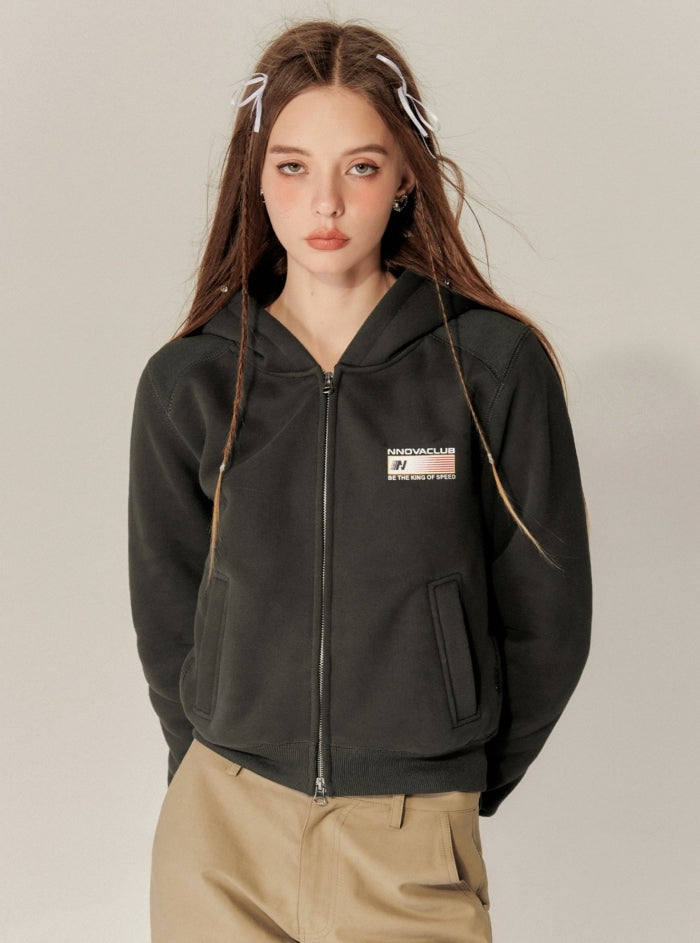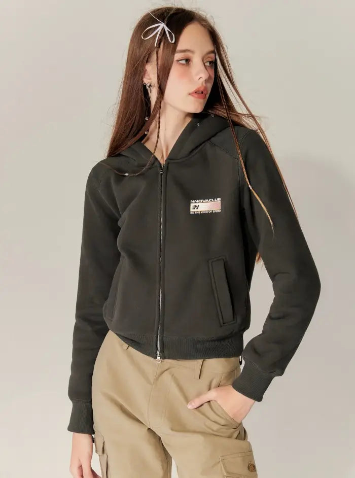 High-waisted Cropped Hooded Fleece Coat