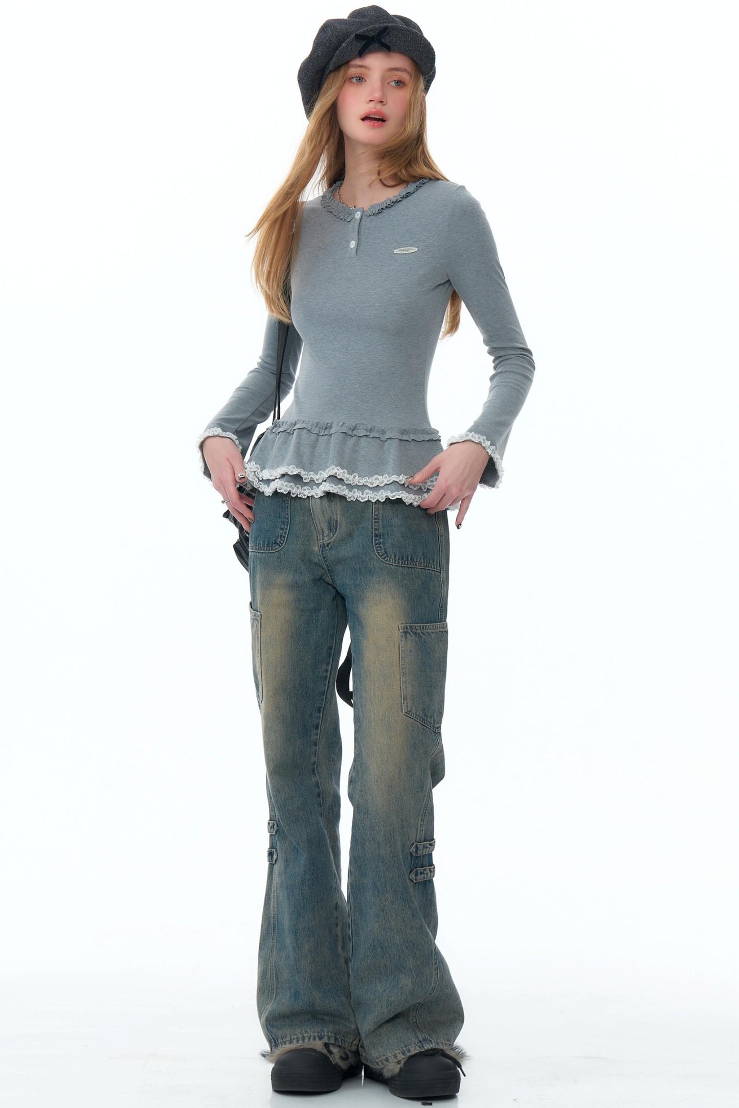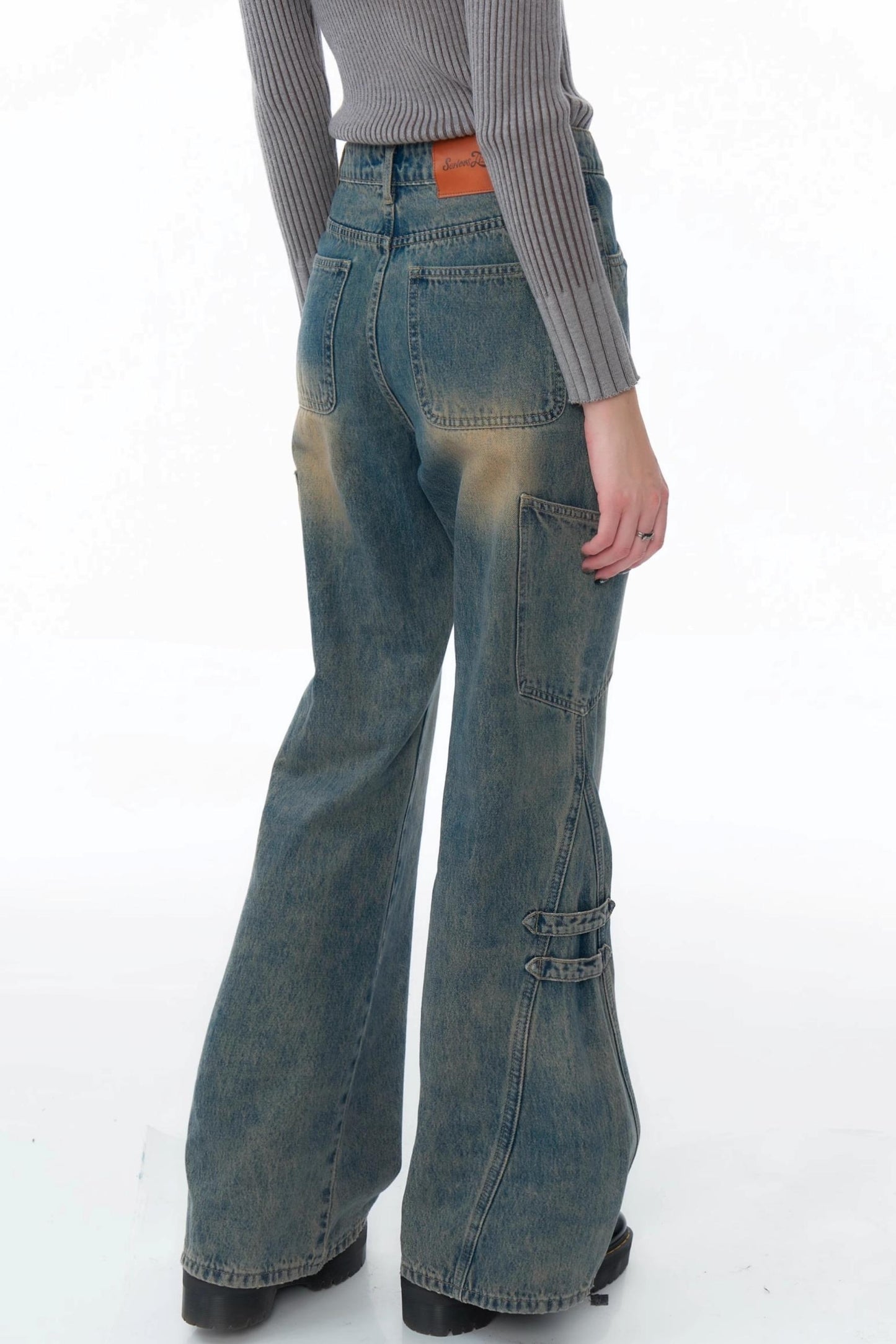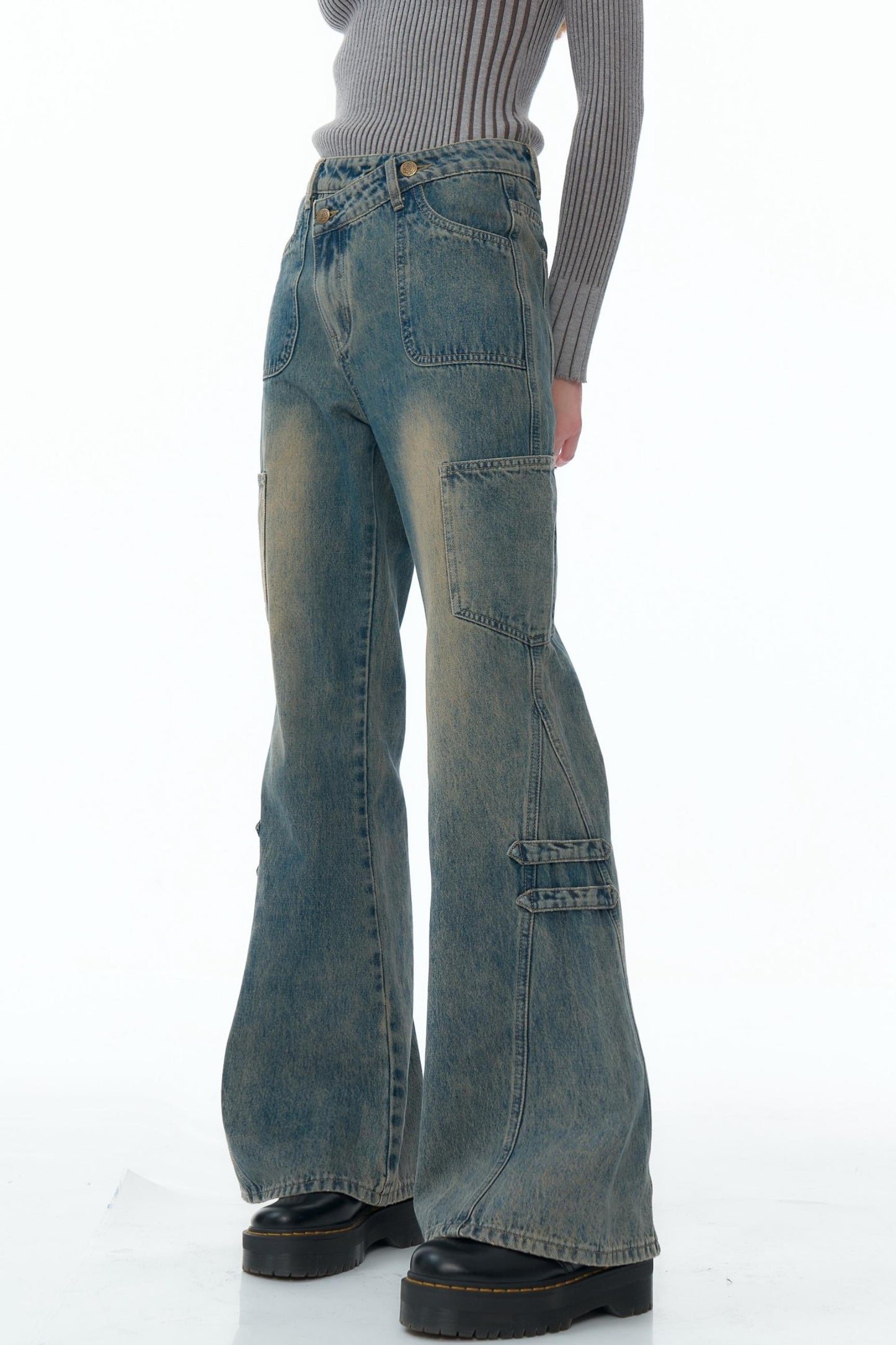 High-Waisted Washed Bootcut Pants