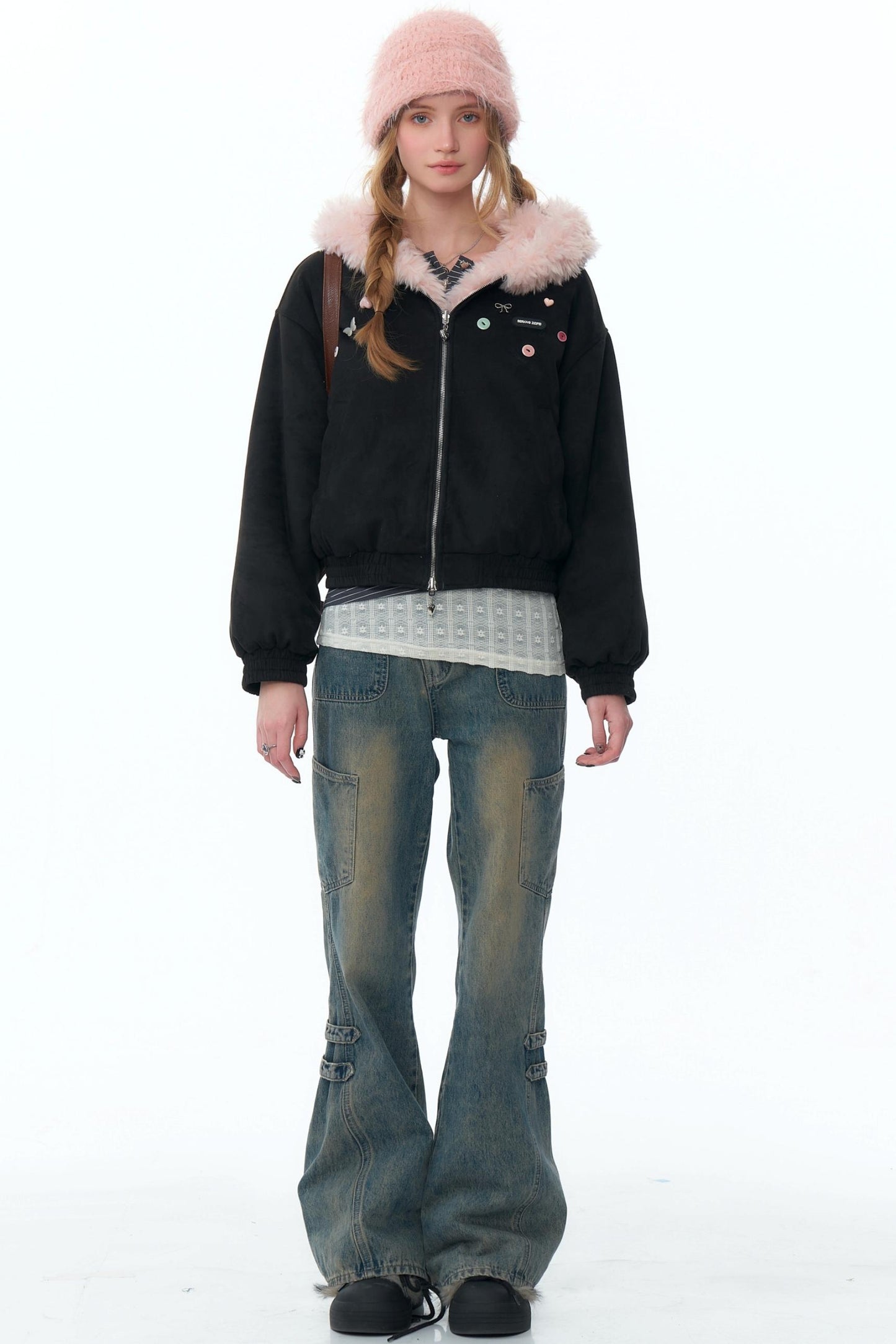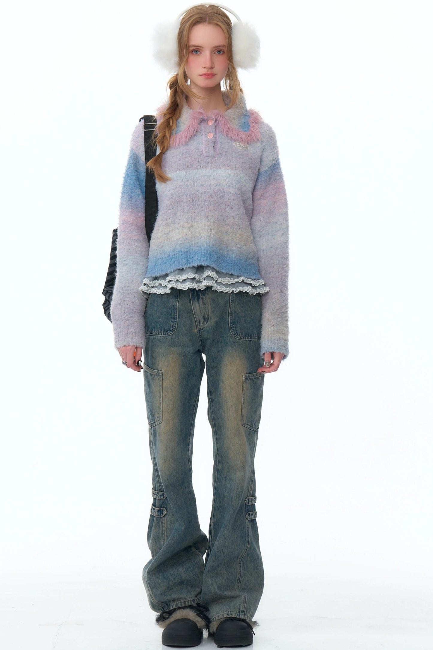 | サイズ | ウエスト(cm/in) | ヒップ(cm/in) | 裾周り(cm/in) | 脚口(cm/in) | 裾丈(cm/in) | 股上(前/後)(cm/in) |