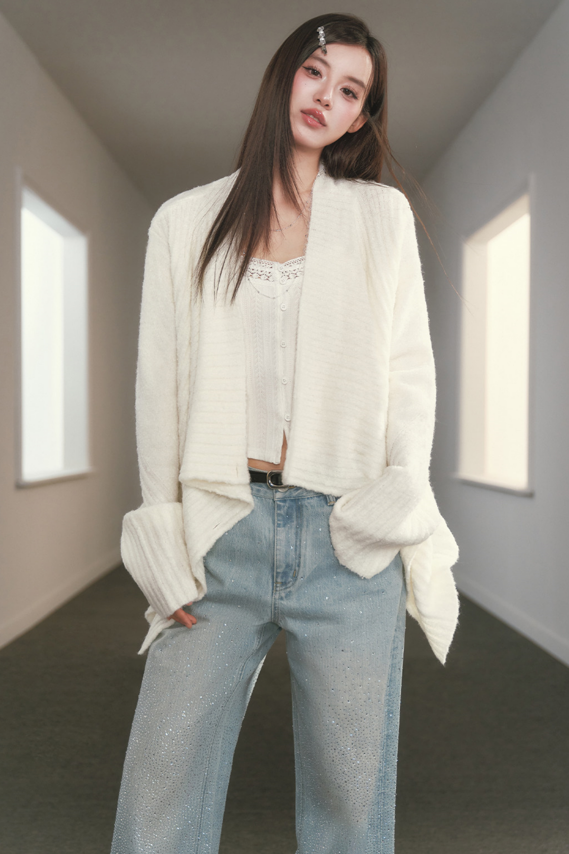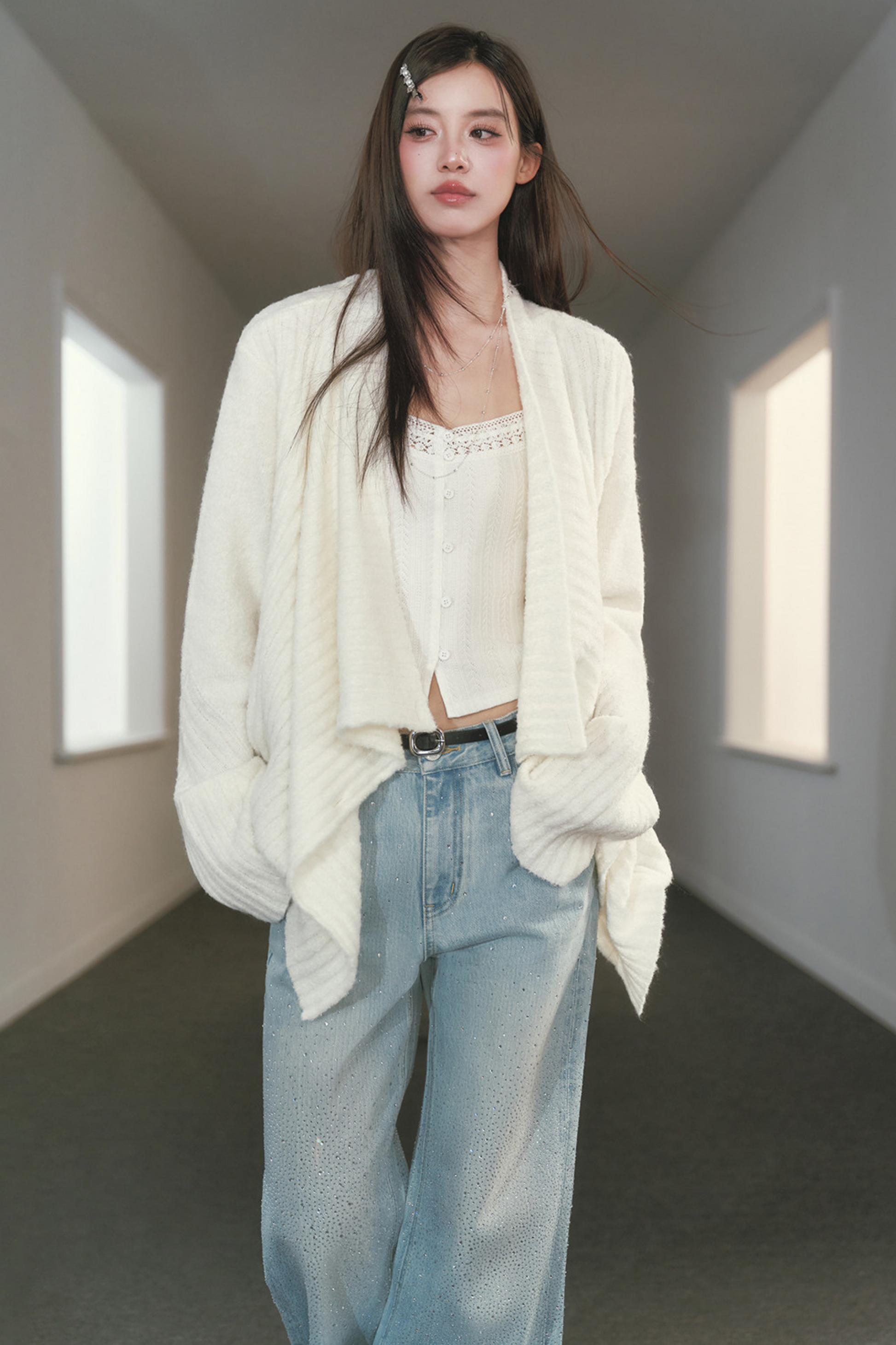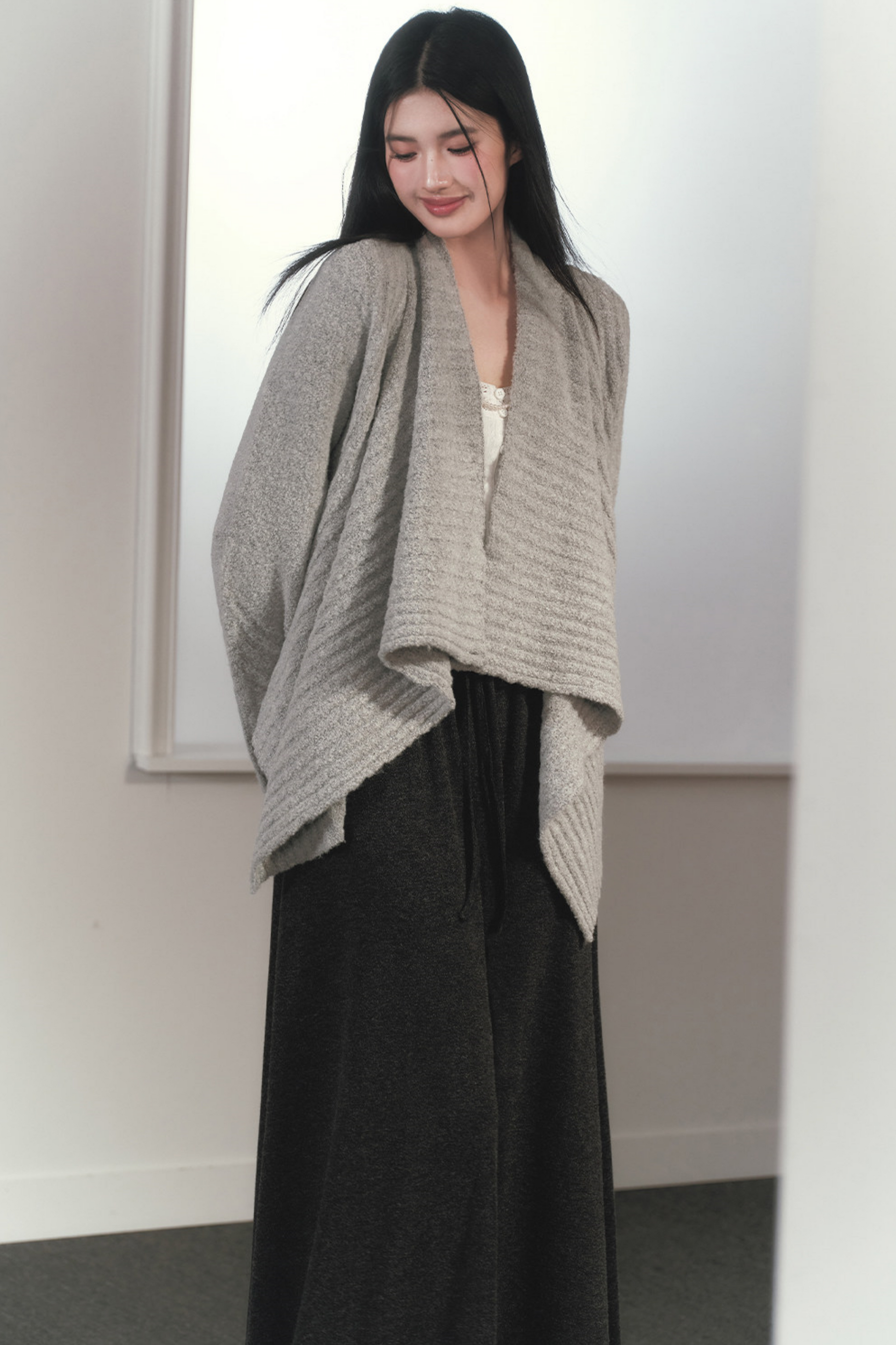 Irregular Lapel Knitted Cardigan