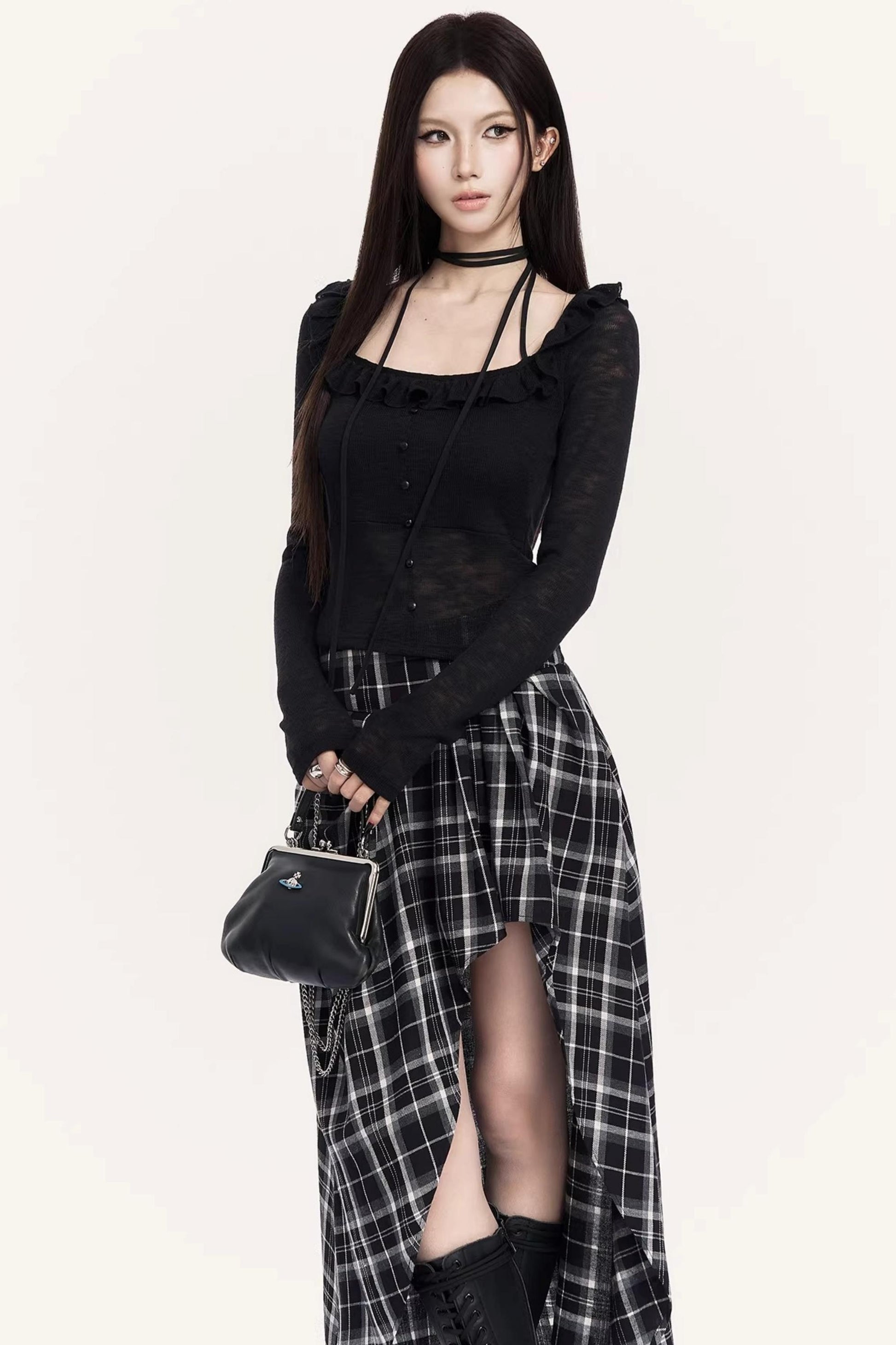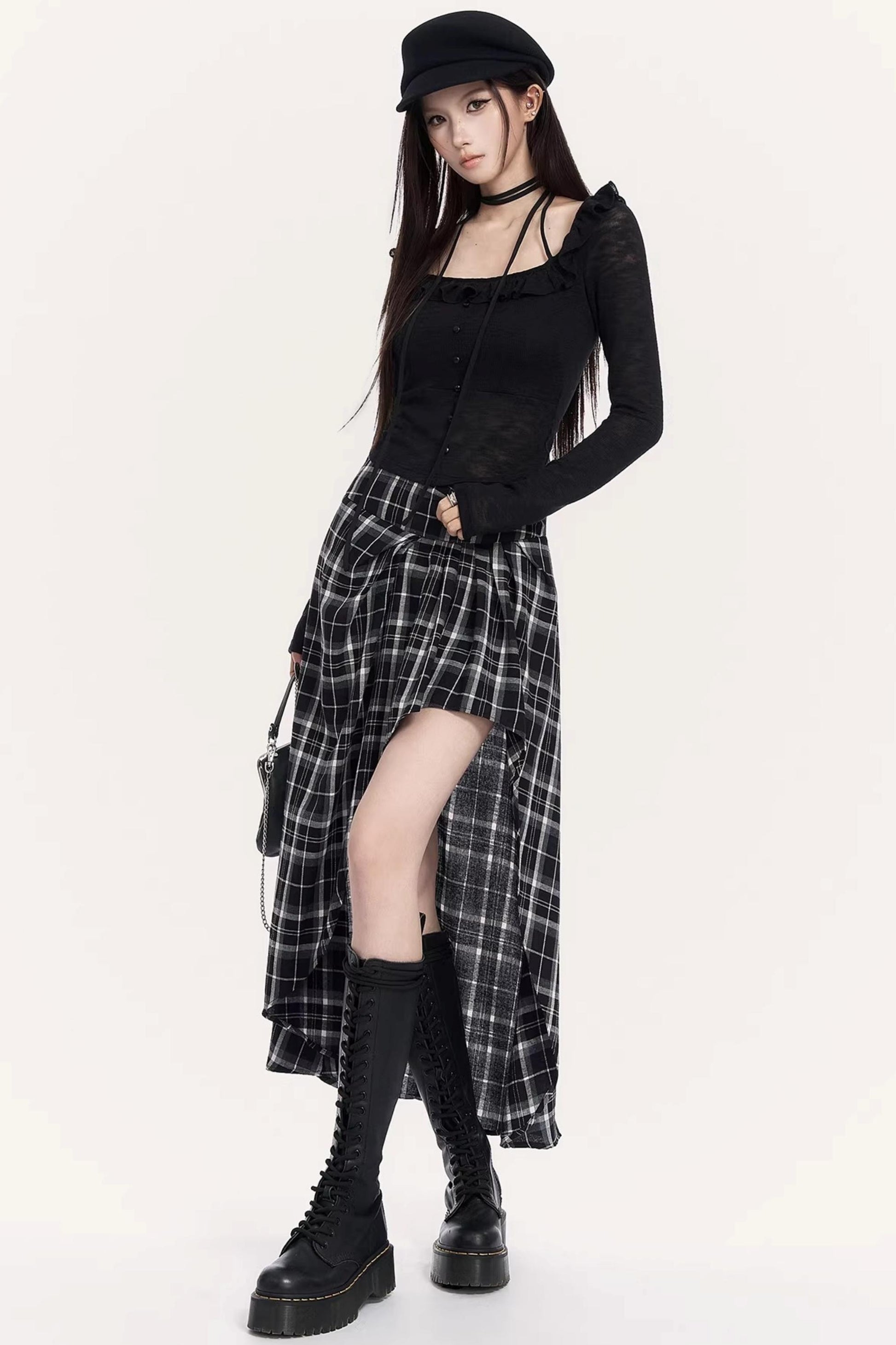 Irregular Plaid Long Skirt