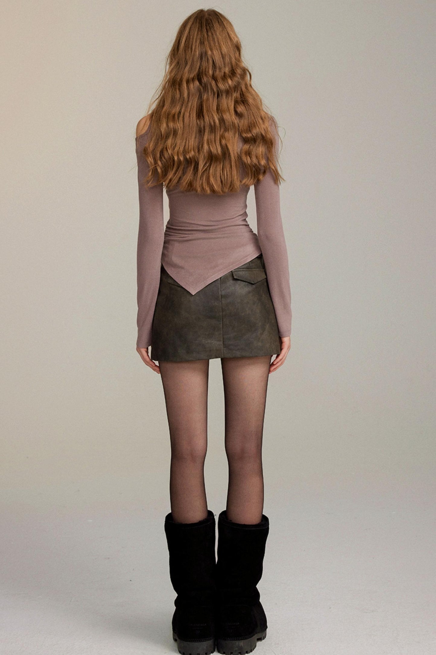 Irregular Suede Off-Shoulder Top