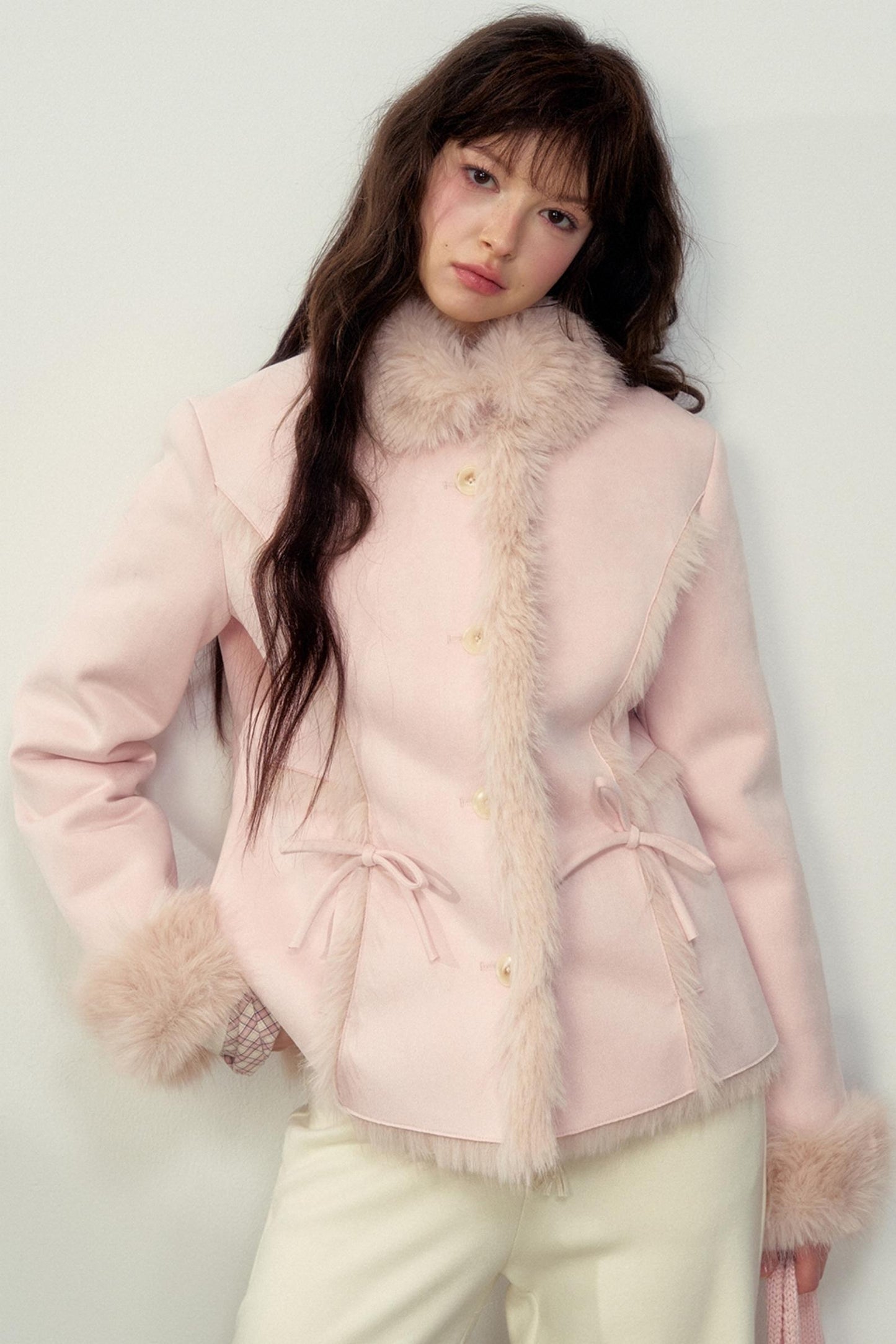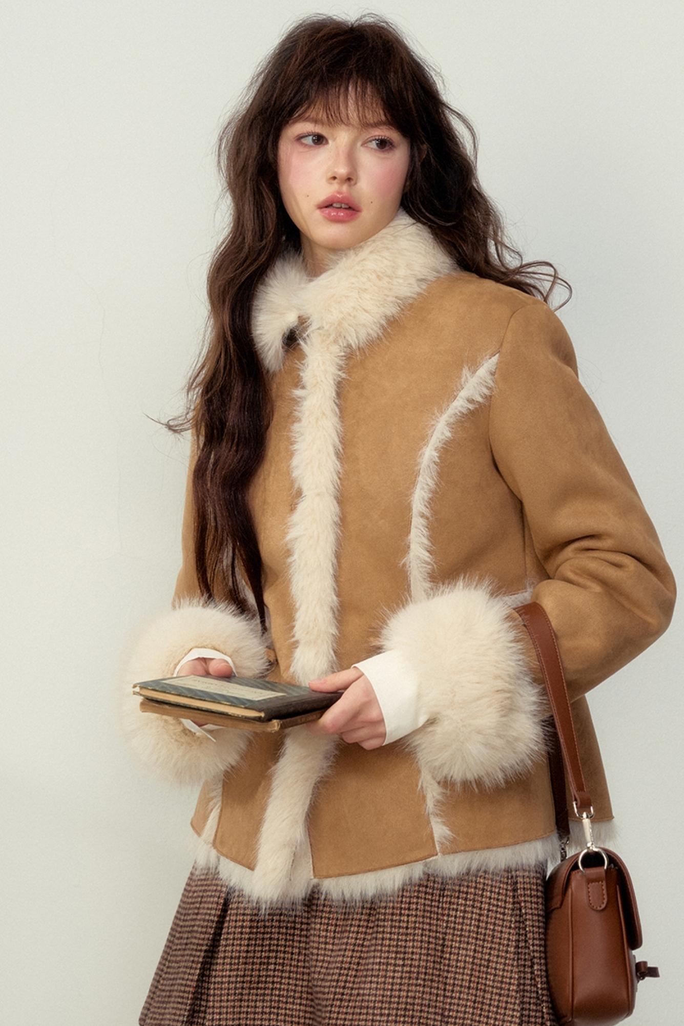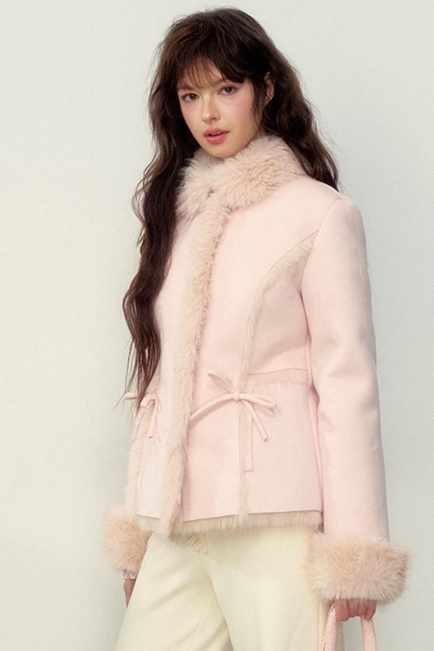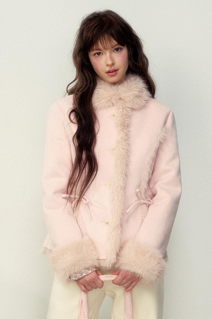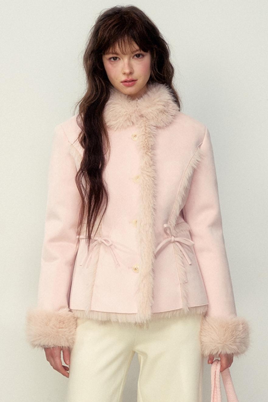 Khaki Pink Fur Integrated Jacket