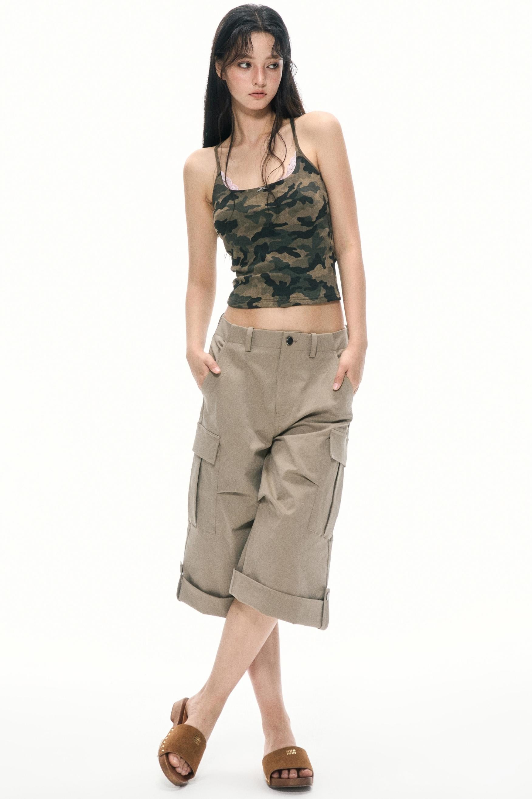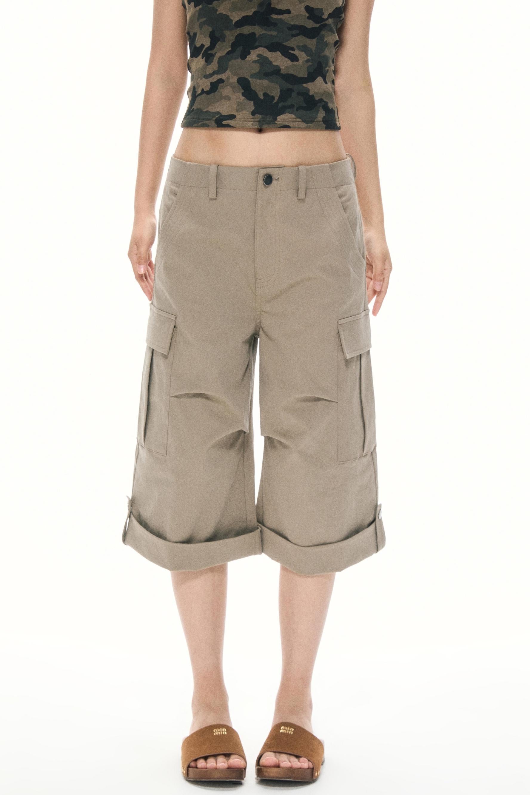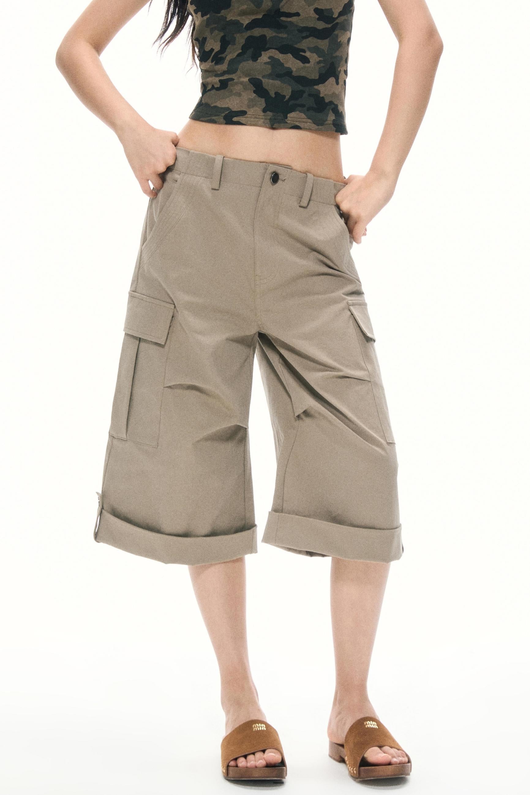 Khaki Wide-Leg Work Pants