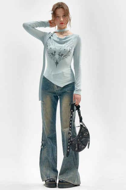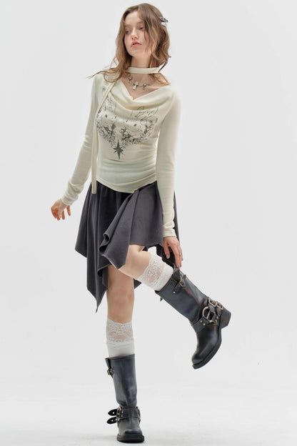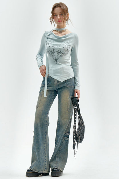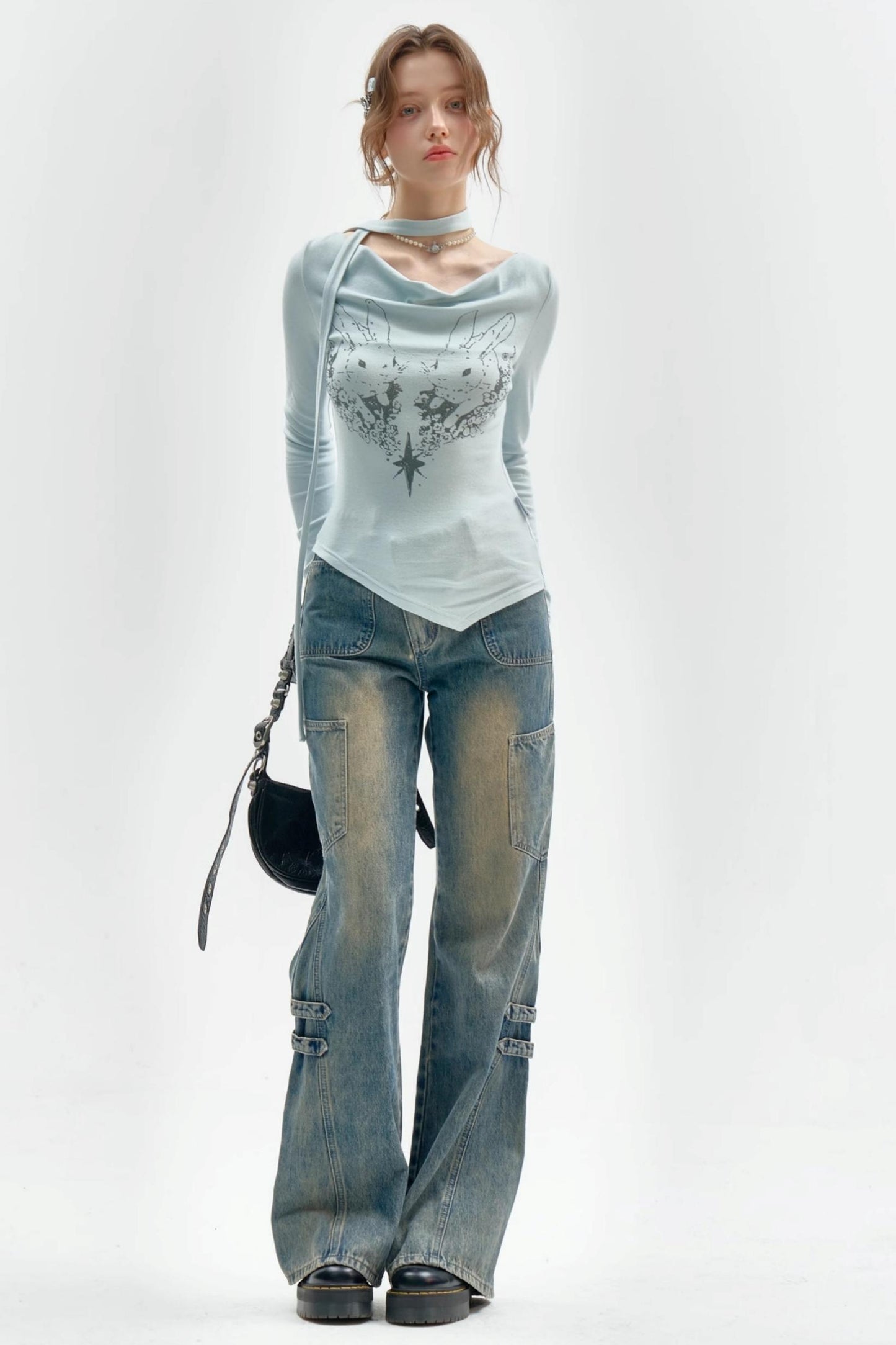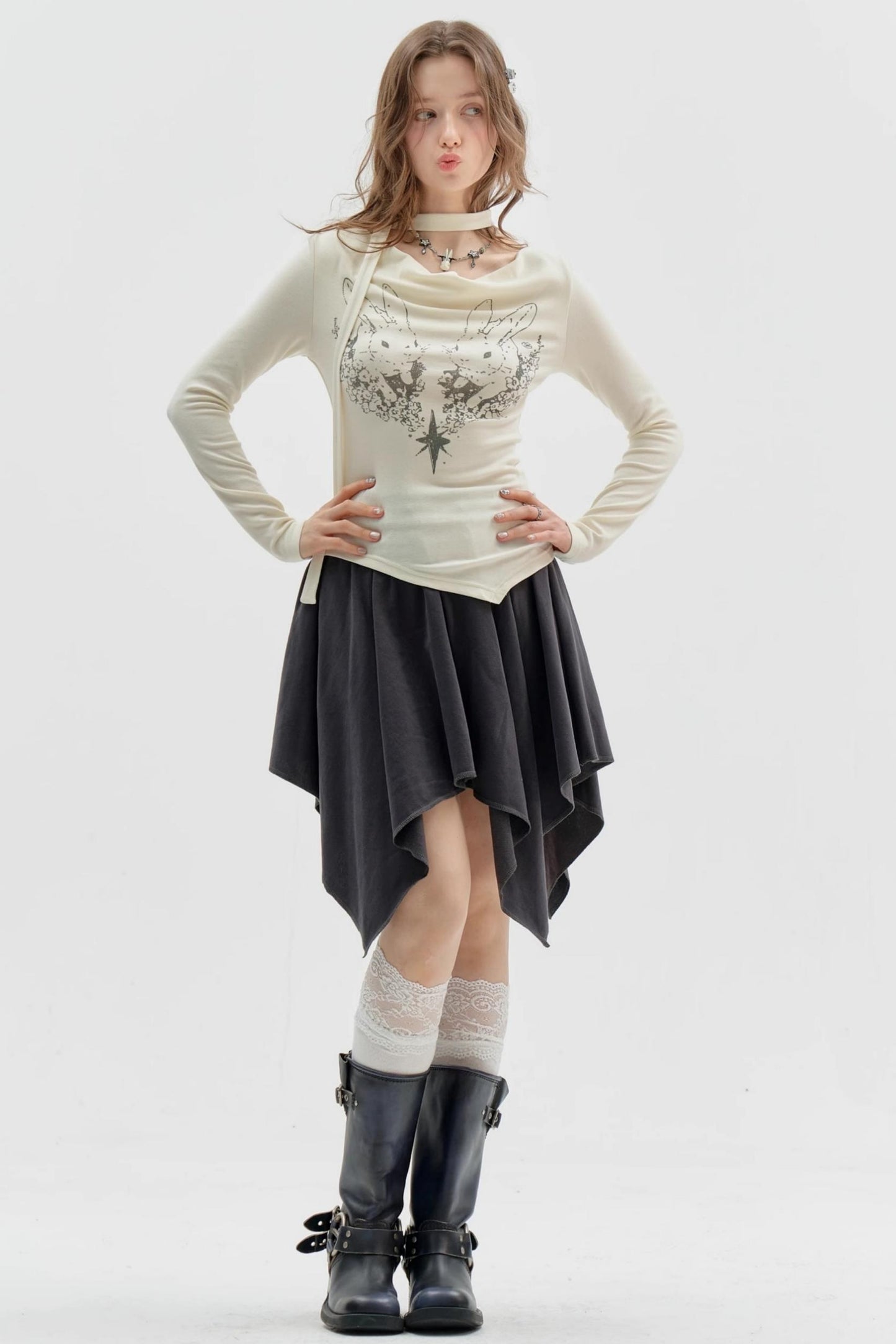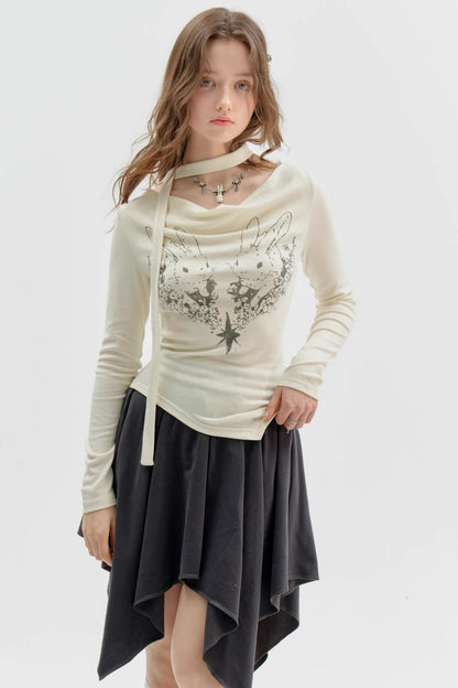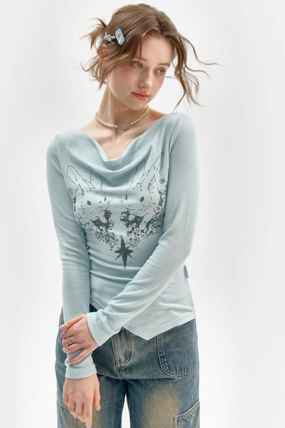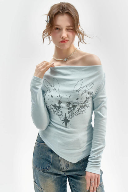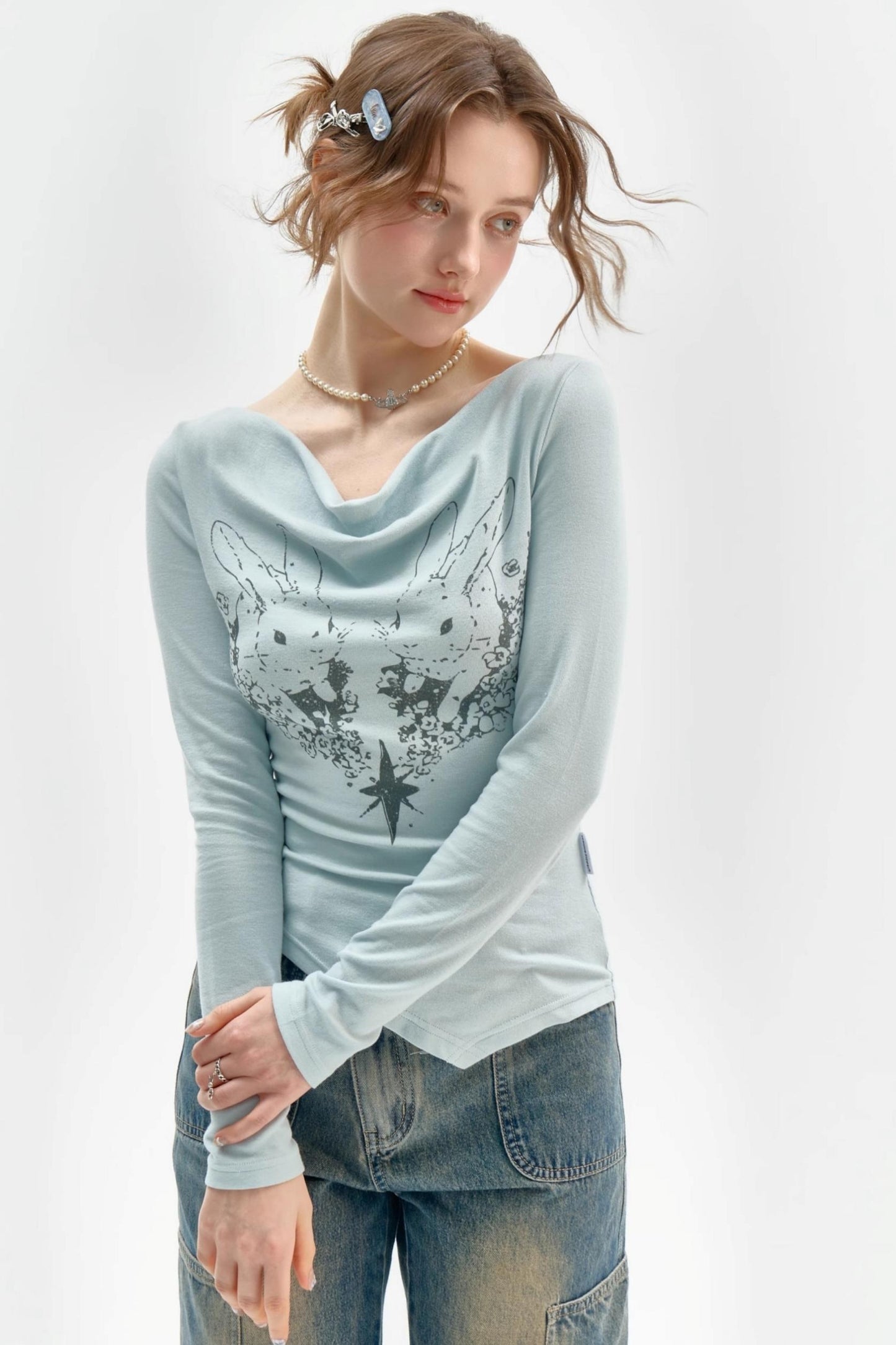 Knitted Long Sleeve Rabbit Print T-Shirt