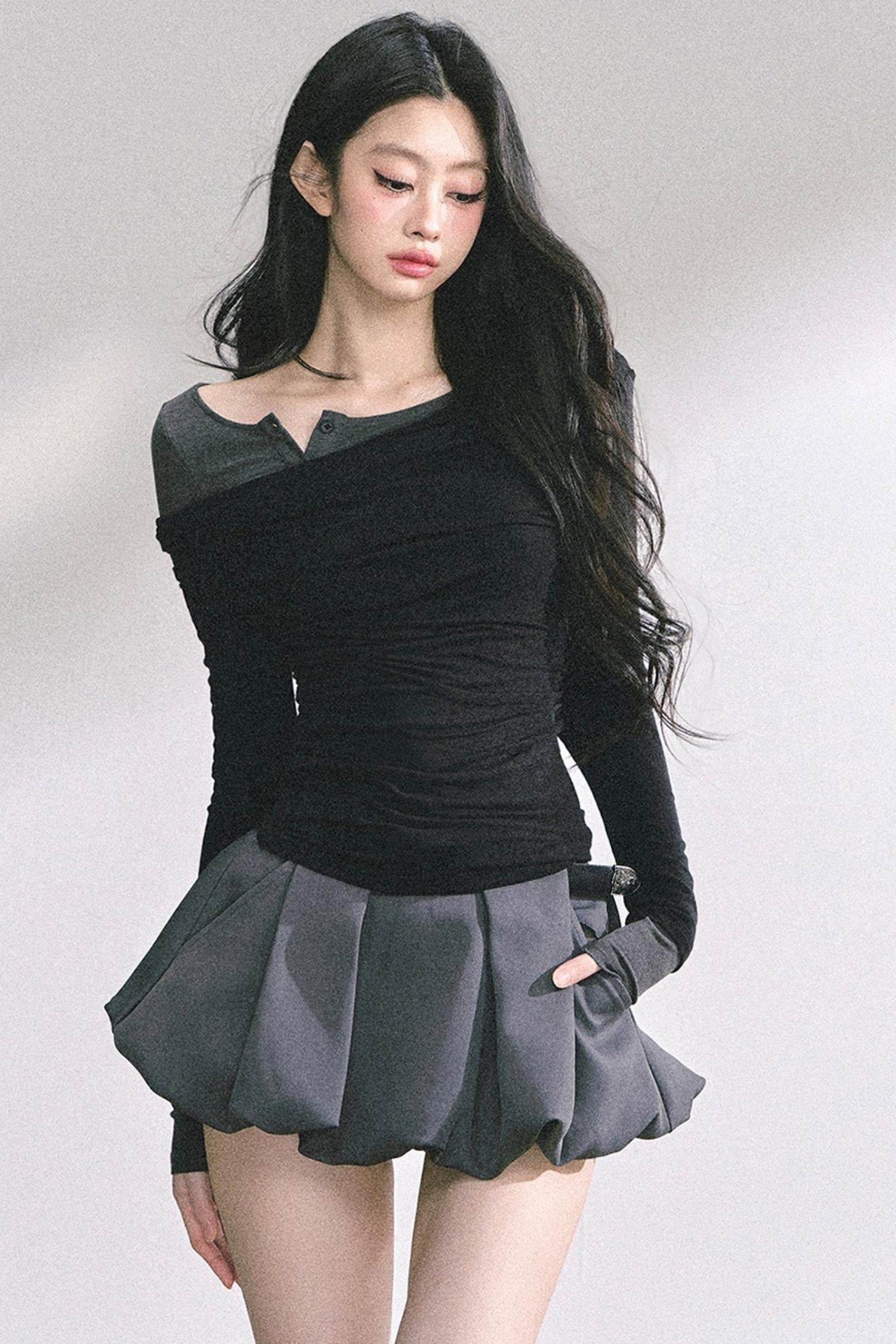 Korean Off-The-Shoulder Black Top