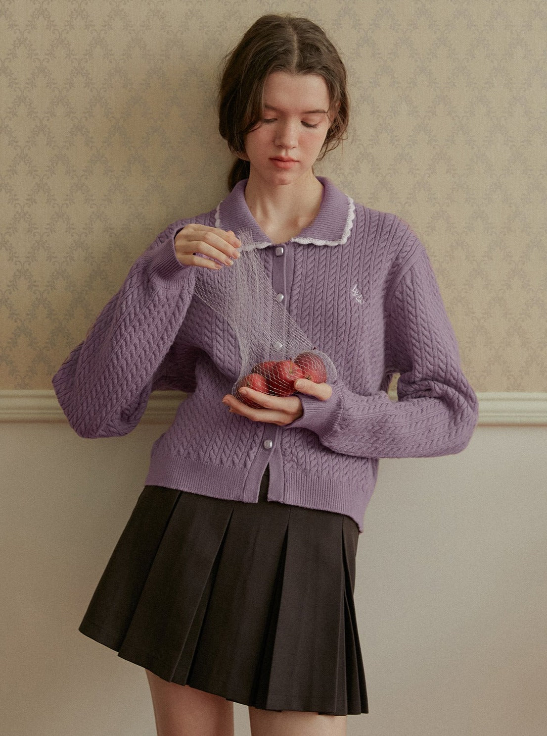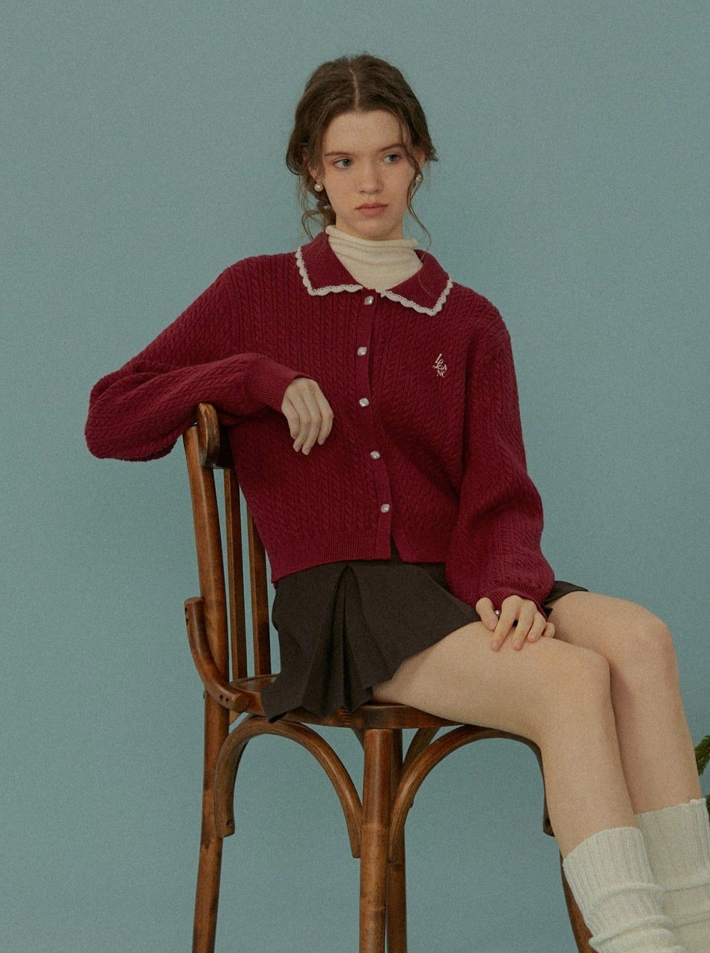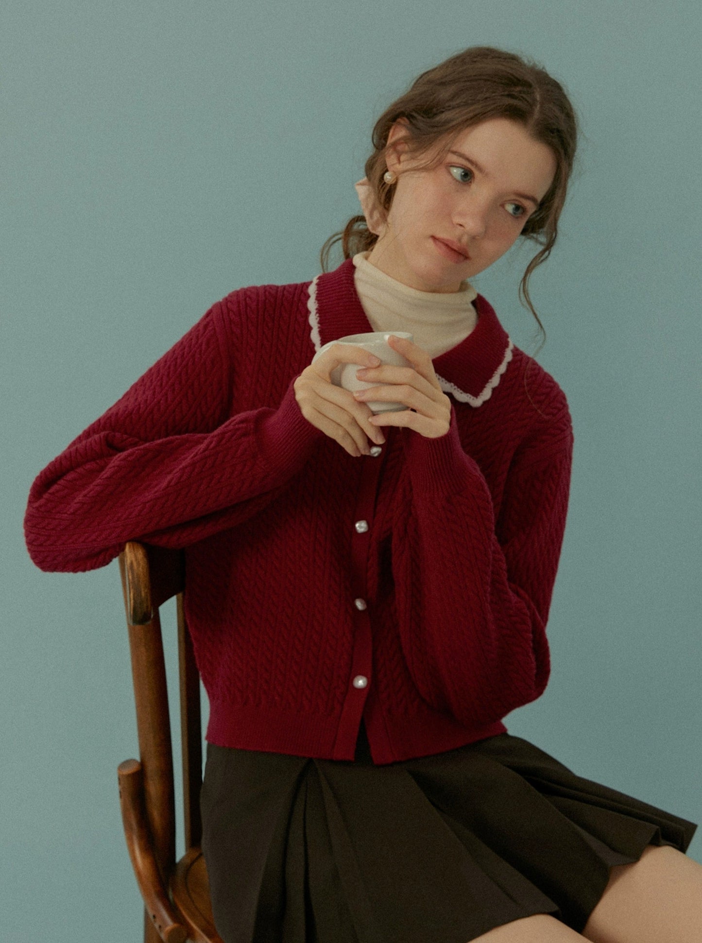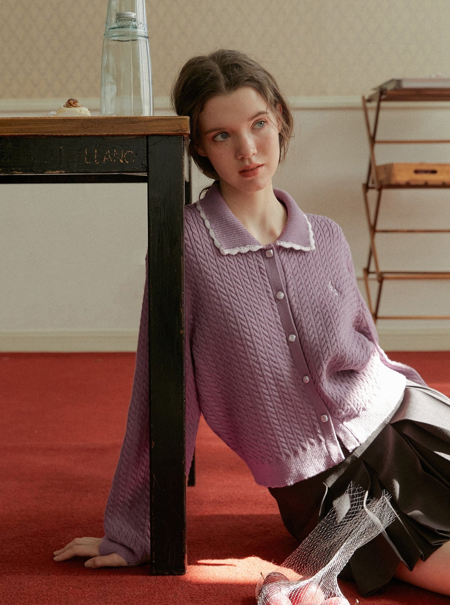 LACE COLLAR KNITTED LAPEL LONG SLEEVE CARDIGAN