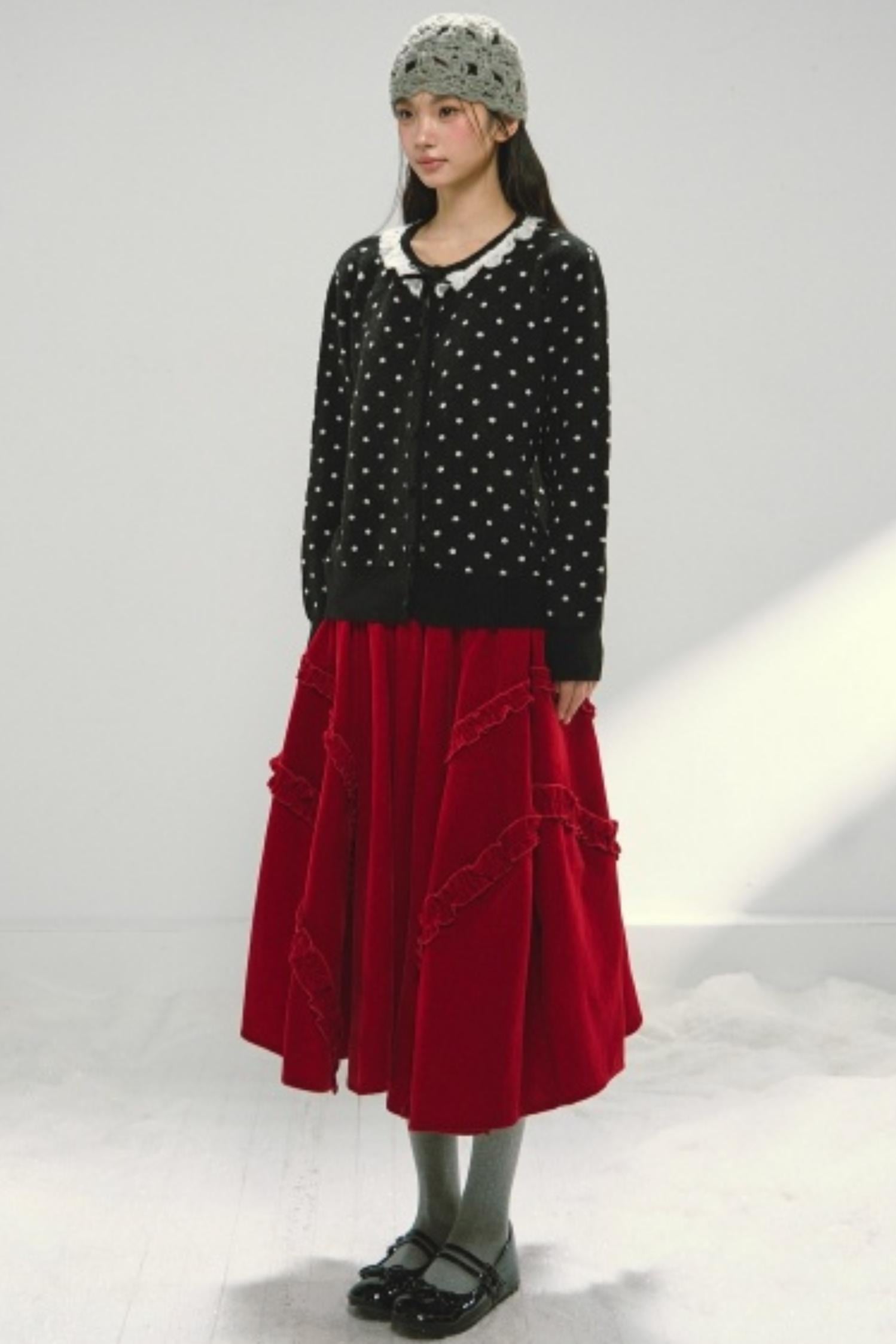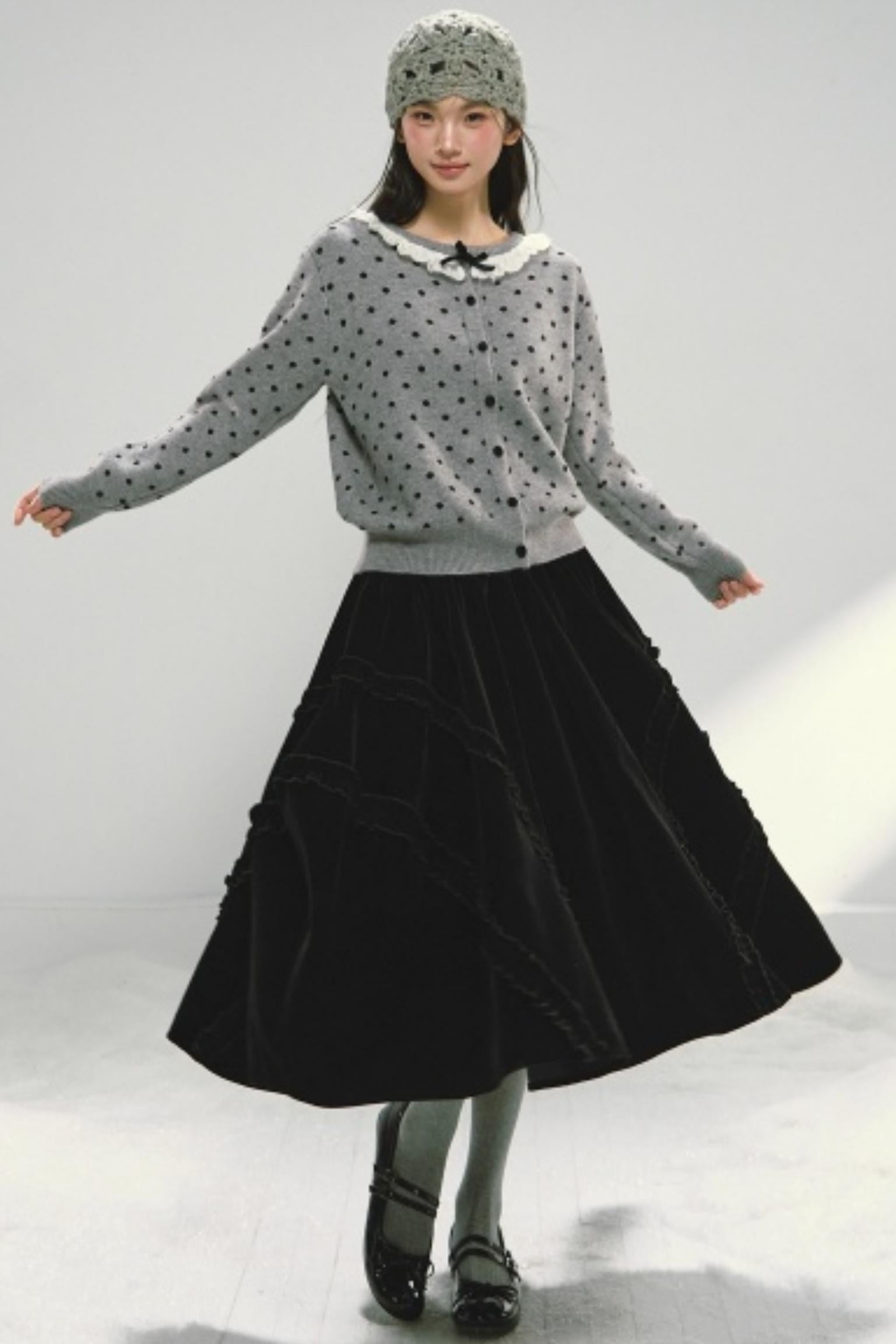 Lace Collar Polka Dot Cardigan