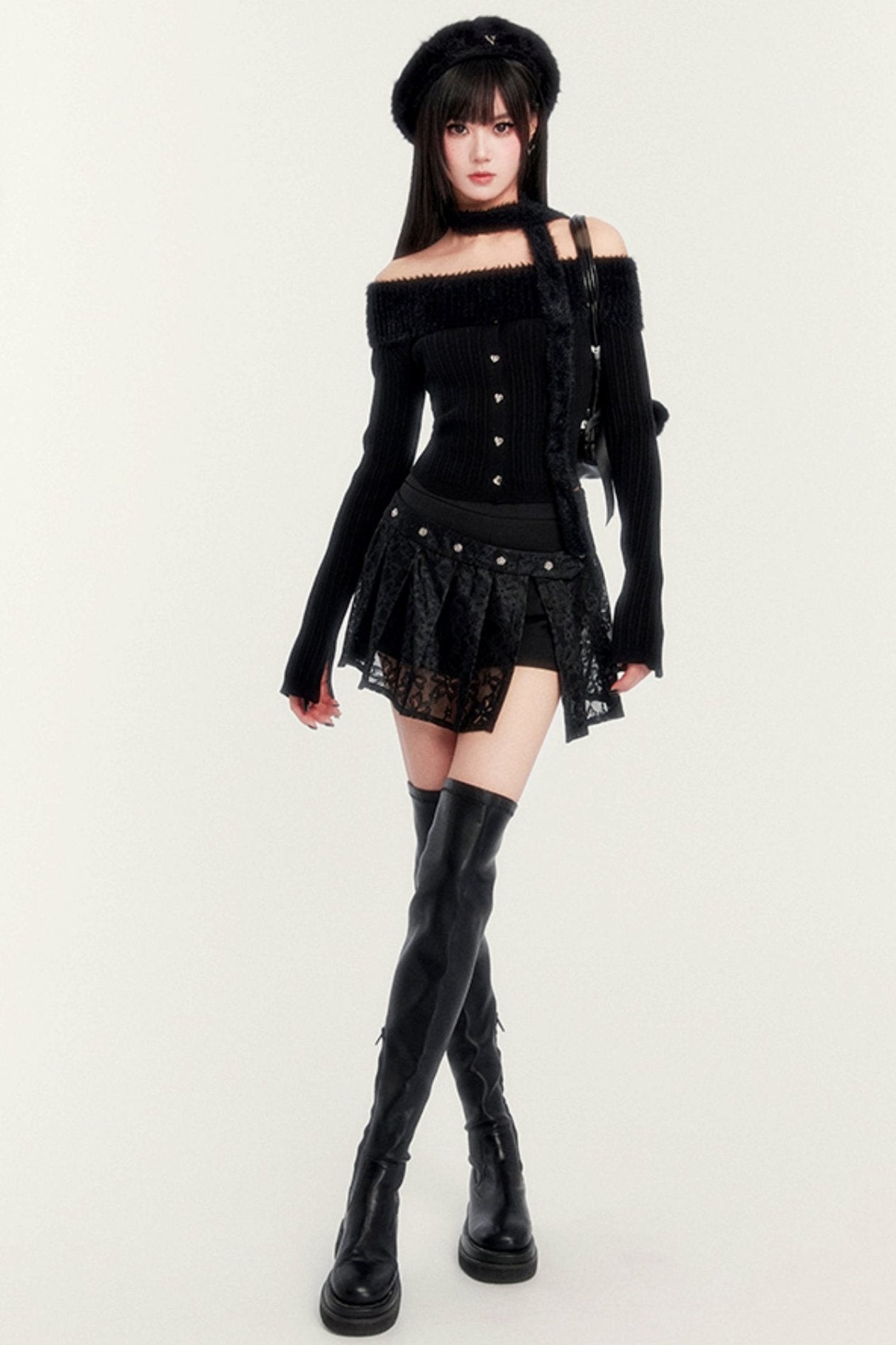 Lace Patch Pleated Hakama Skirt