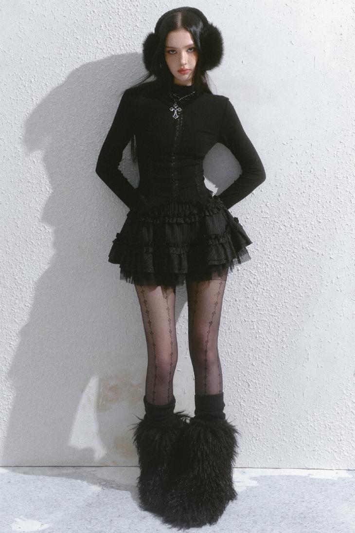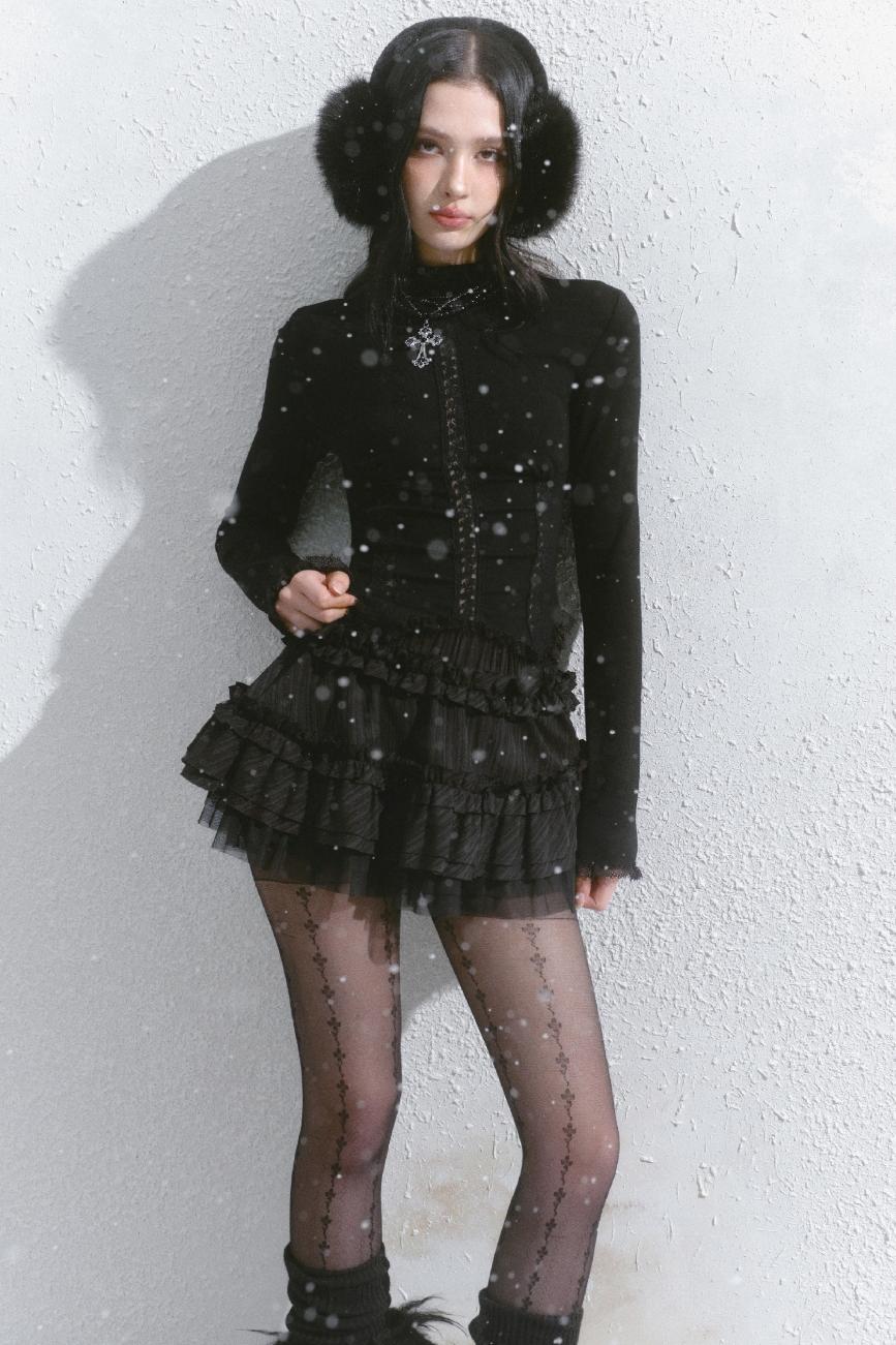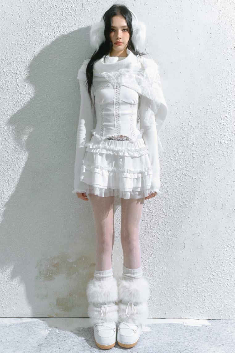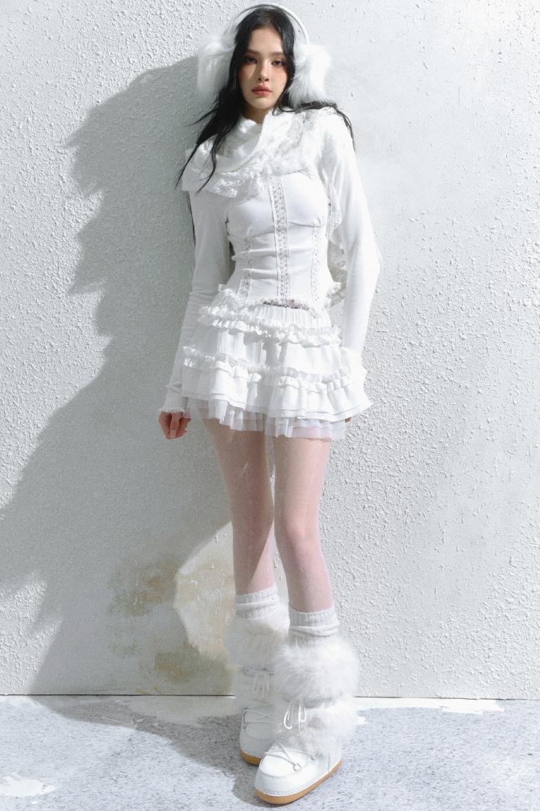 Lace Stitched Cake Skirt & Shorts Set-Up