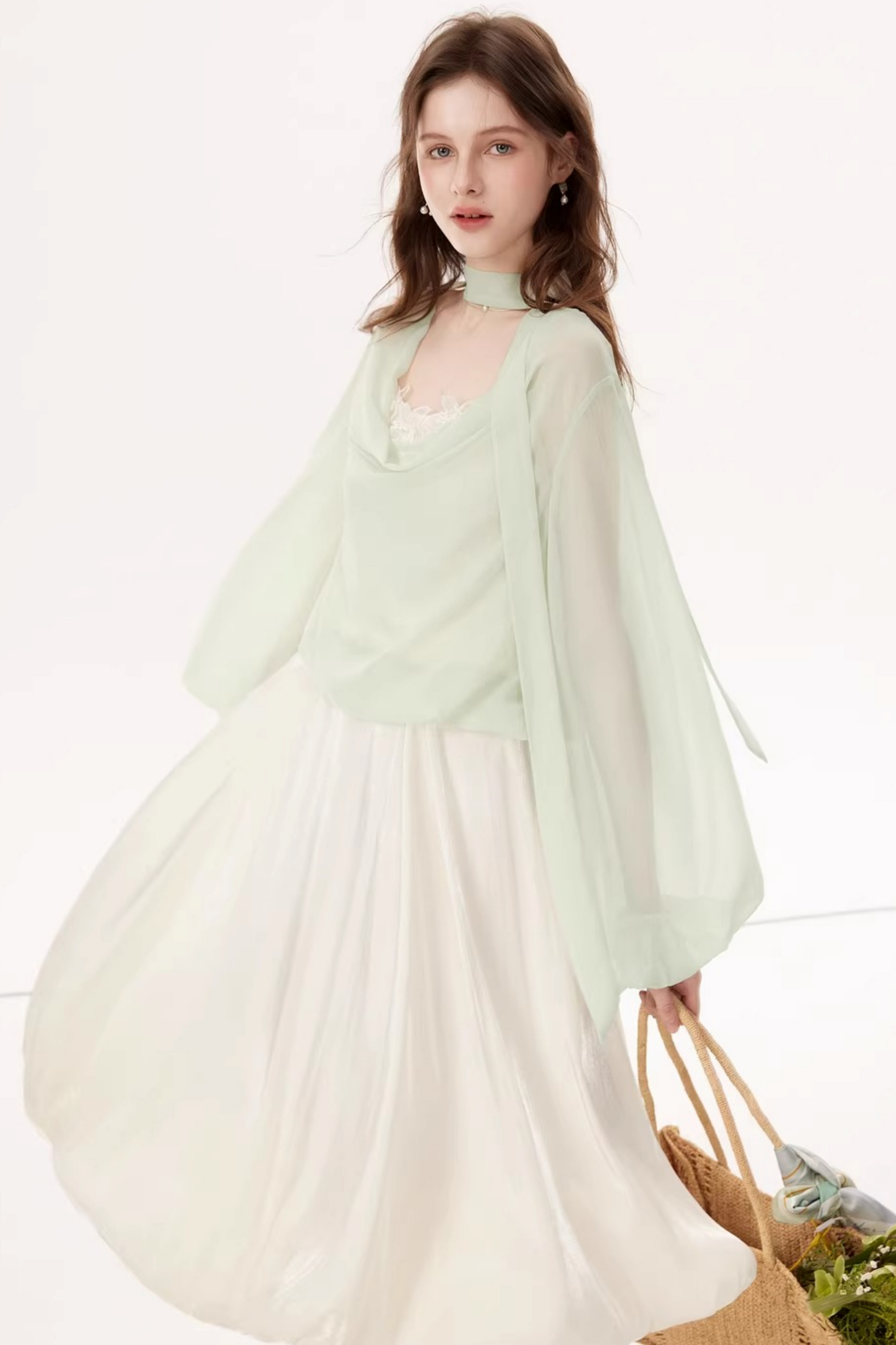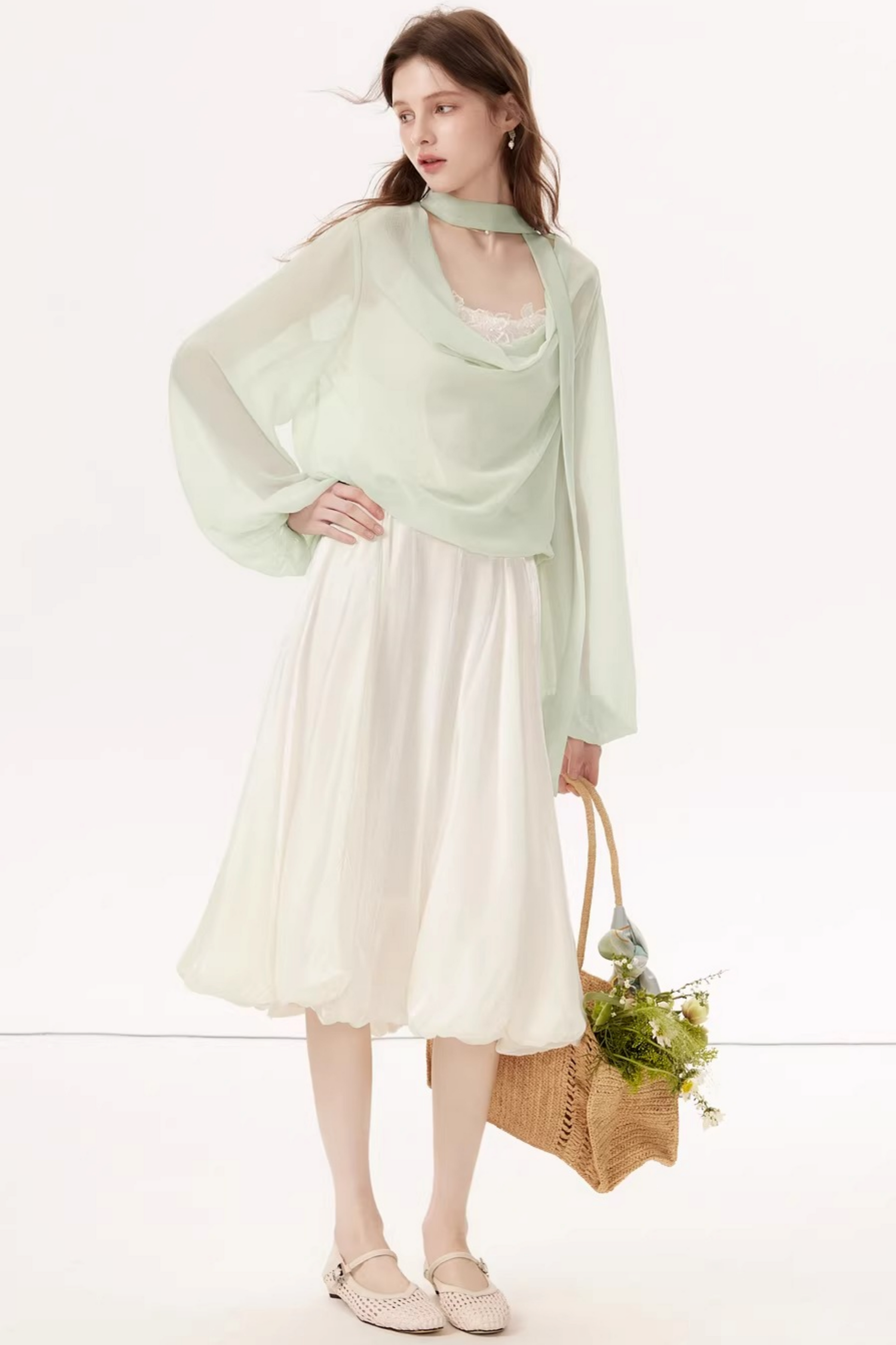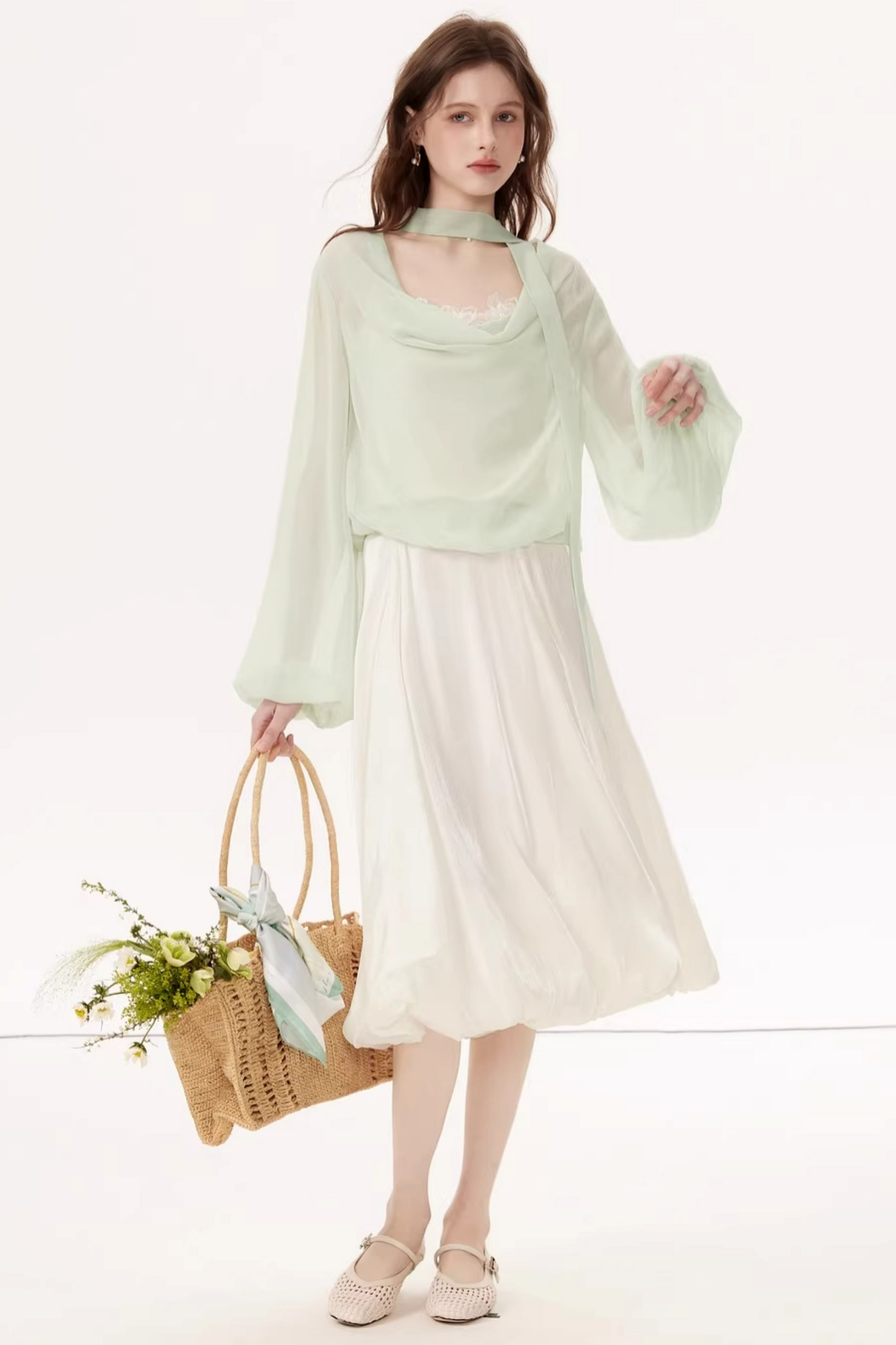 Lantern Sleeve Ribbon Blouse