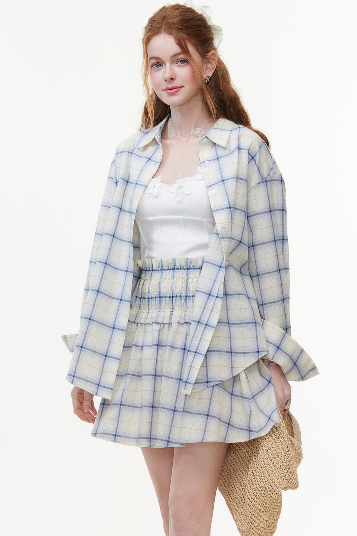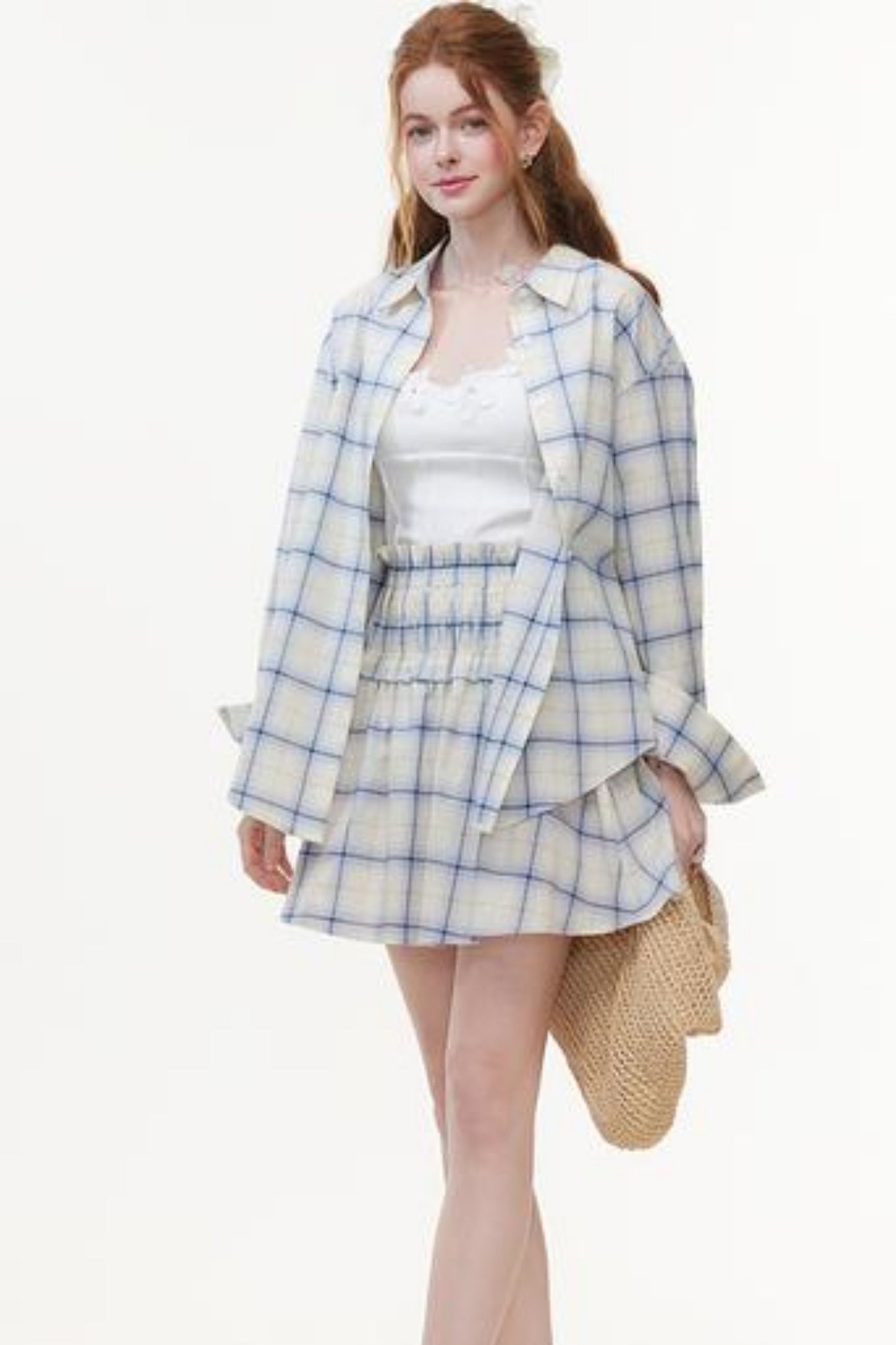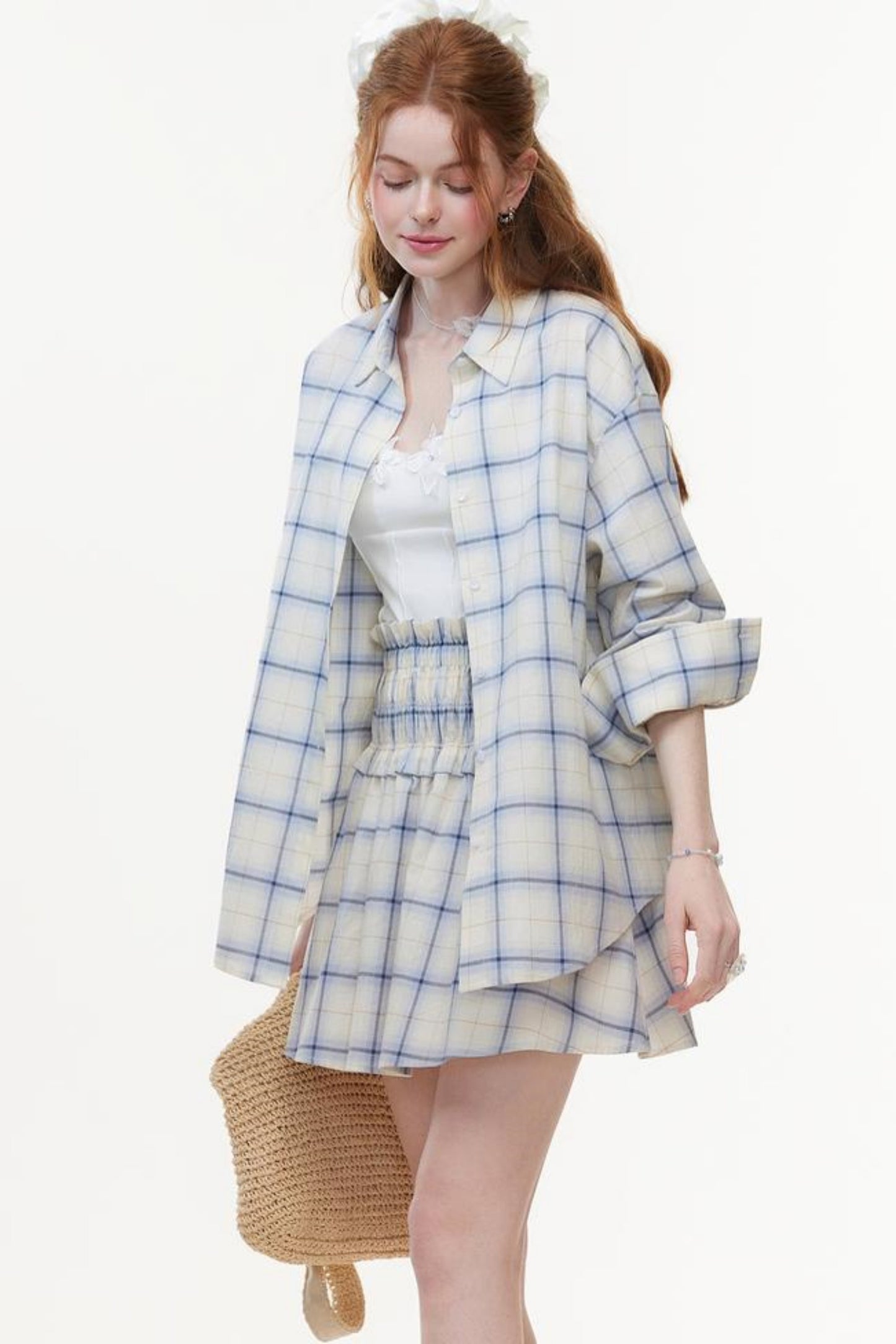 Long-Sleeve Cotton Shirt & Midi Skirt Set-Up